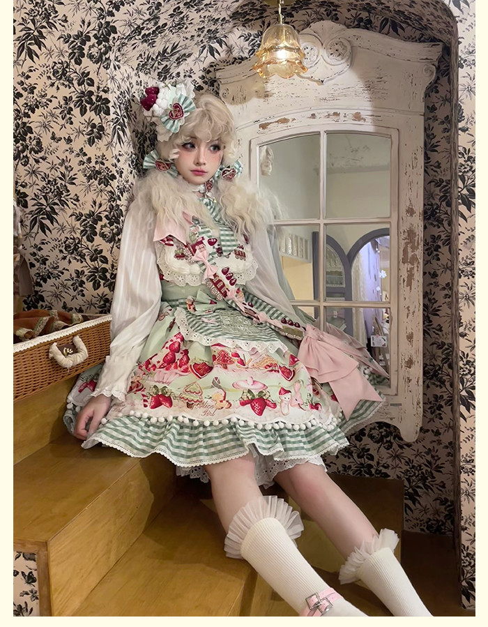 | Product Name | Alice Girl -Mint Strawberry- Sweet Doll Lolita JSK Dress Normal Waist Version |