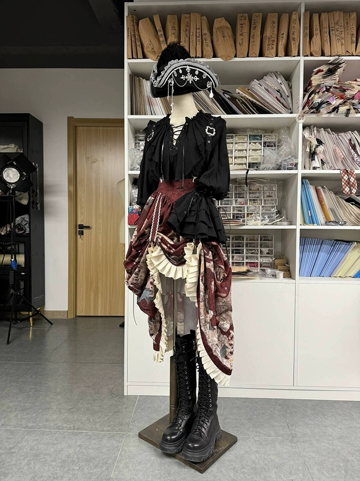 The matched Corset can be found here >> Alice Girl - Pirate Treasure Map - Pirate Boystyle Prince Konoda Ouji Lolita Corset