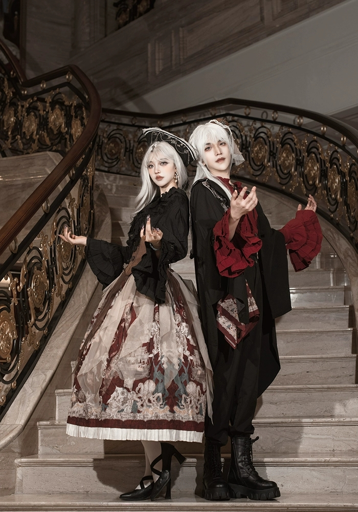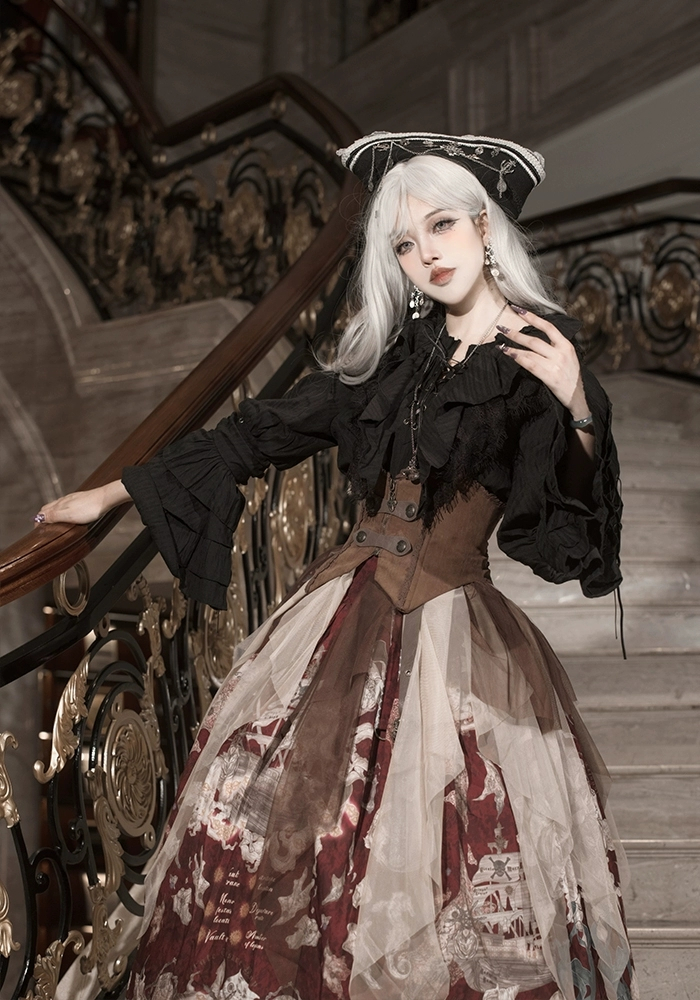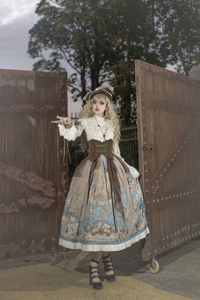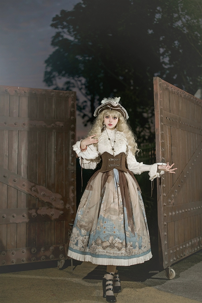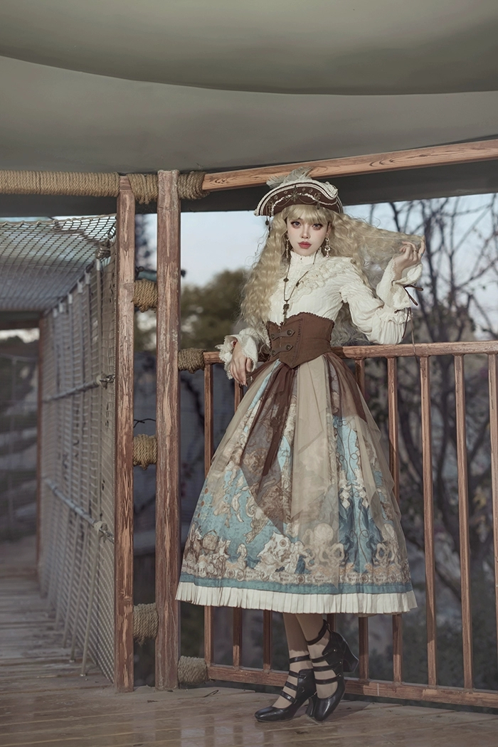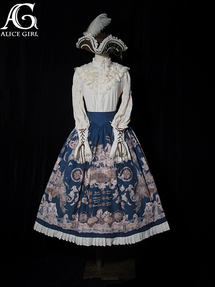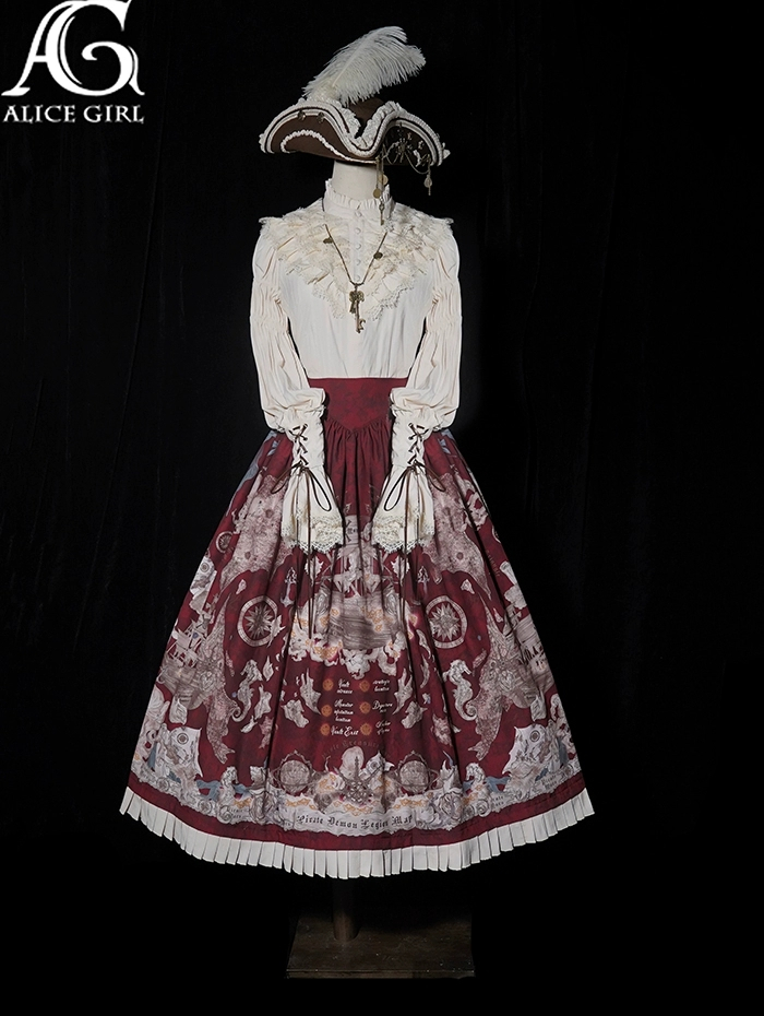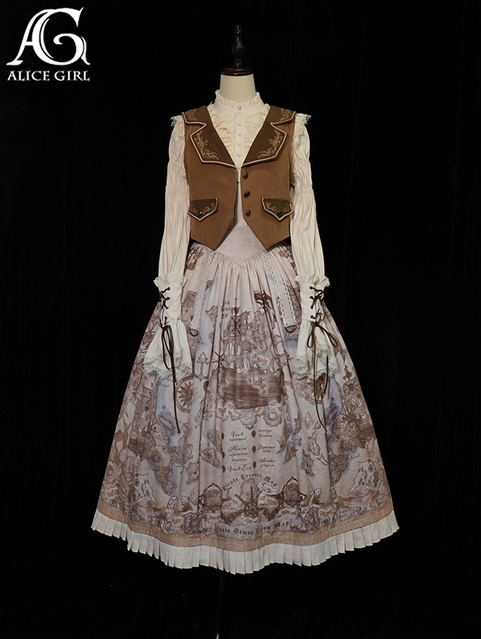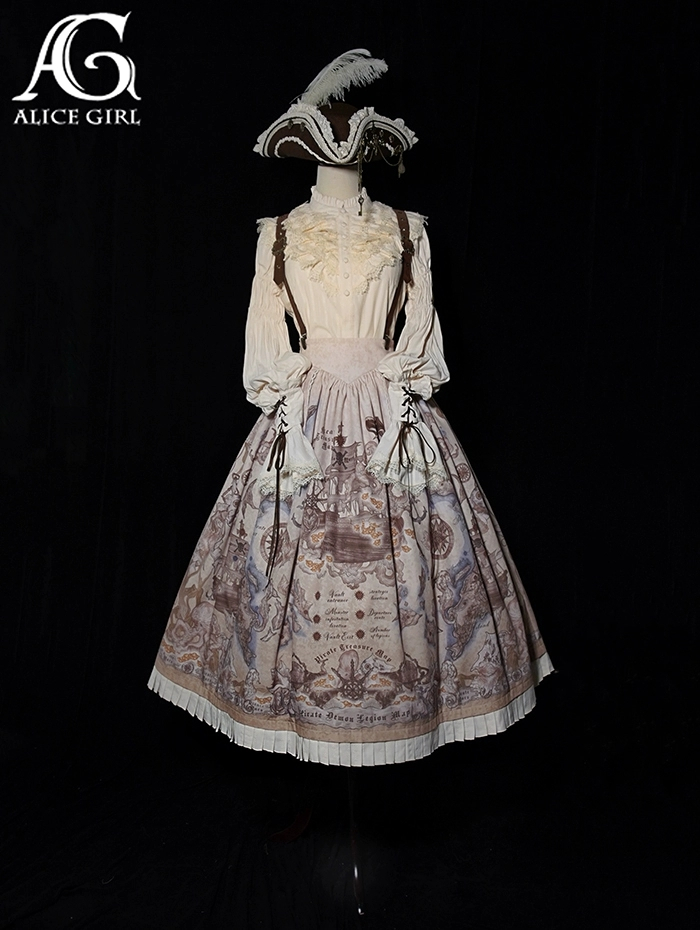 The matched Blouse (Version I) can be found here >> Alice Girl - Pirate Treasure Map - Retro Pirate V-neck Classic Lolita Blouse (Version I)