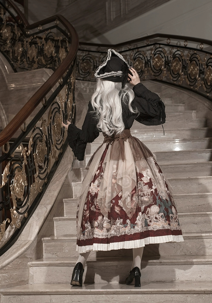 The matched Blouse (Version II) can be found here >> Alice Girl - Pirate Treasure Map - Retro Pirate Classic Lolita Blouse (Version II)