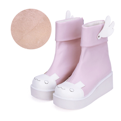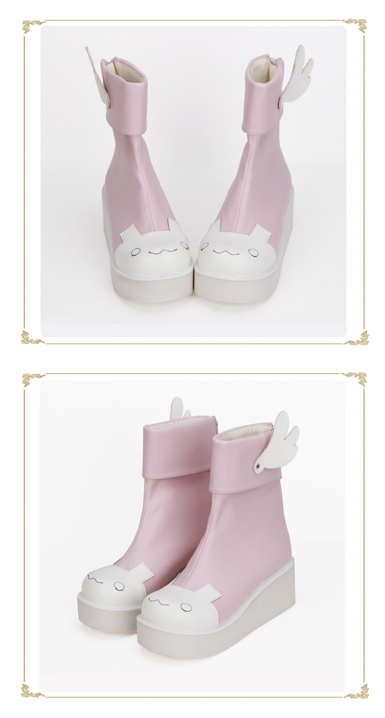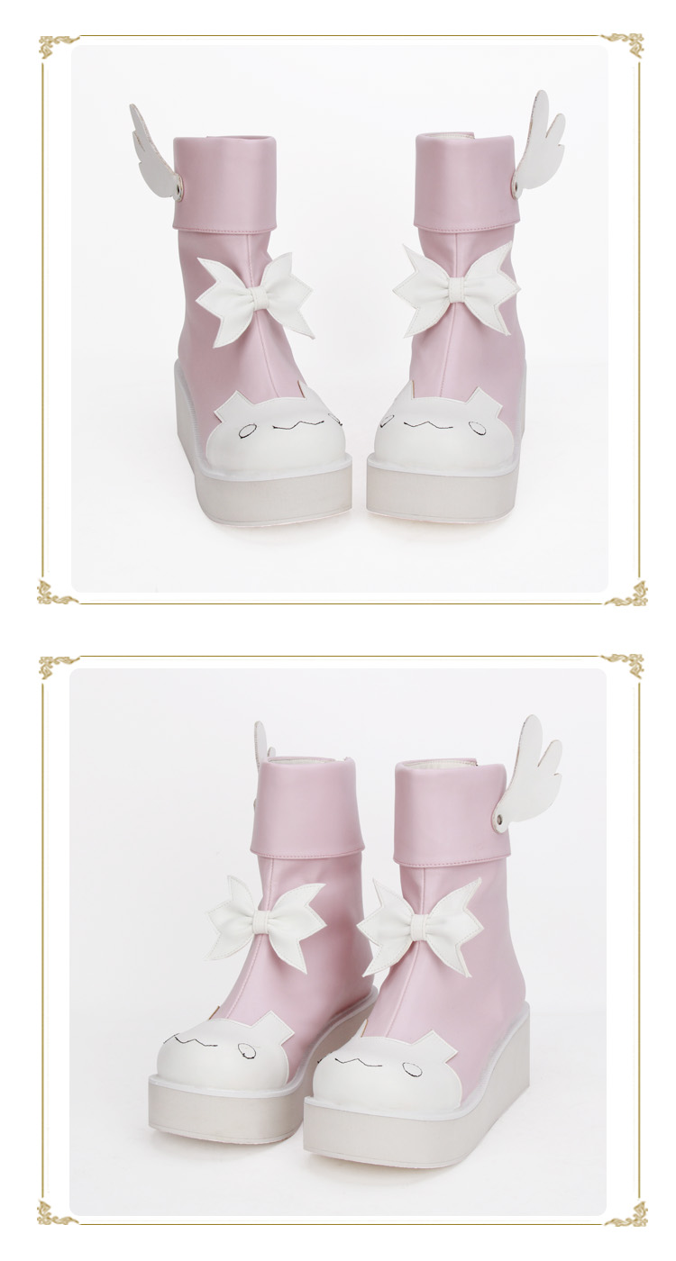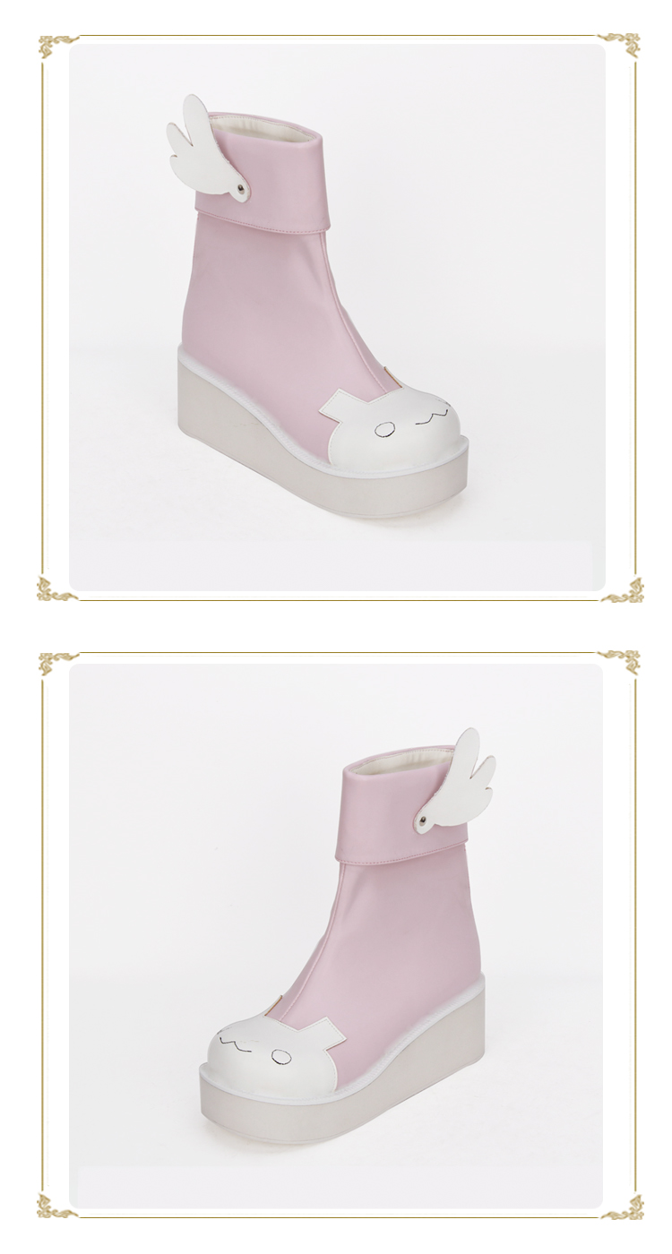 | Product Name | Angelic Imprint - High Heel Round Toe Ankle Short Pink Sweet Lolita Platform Boots with Wing and Bow |