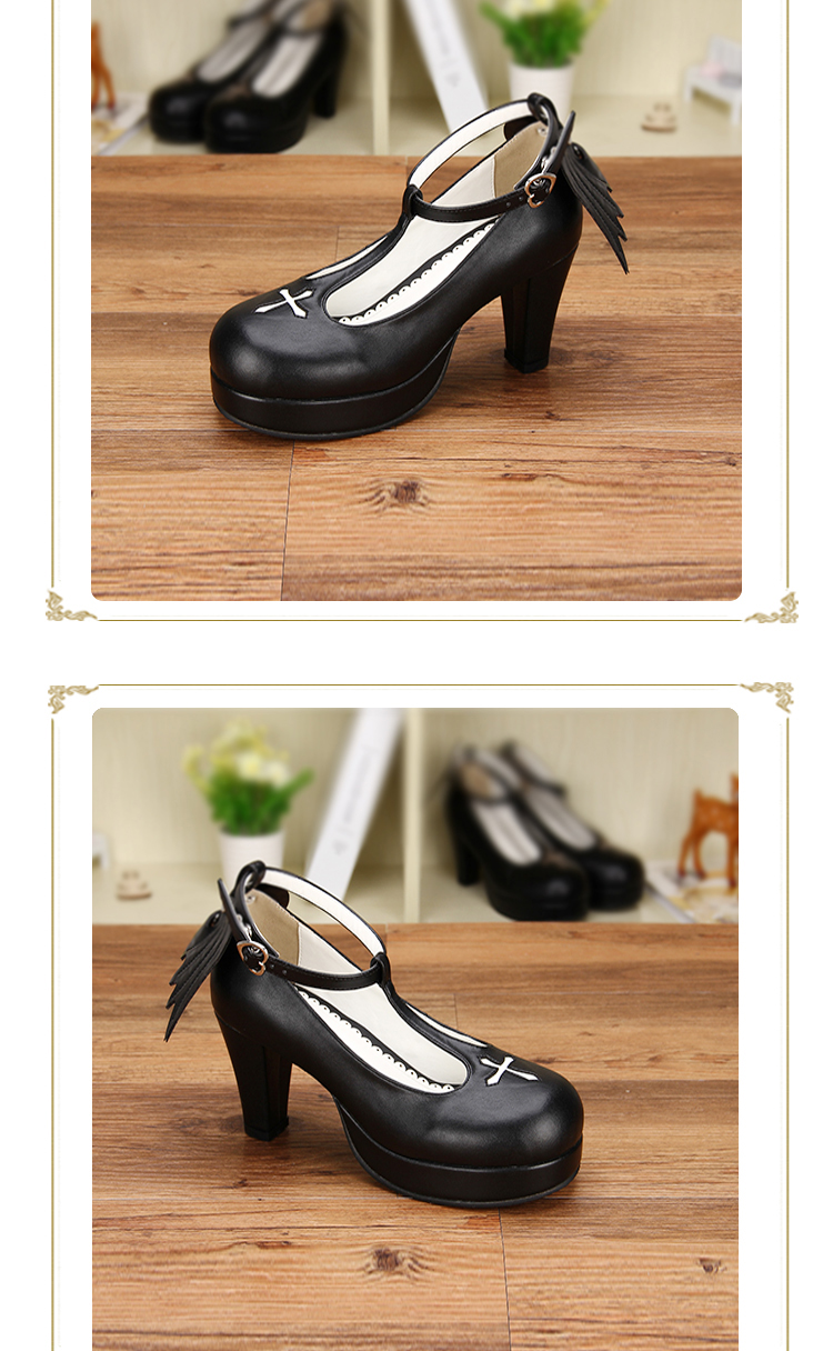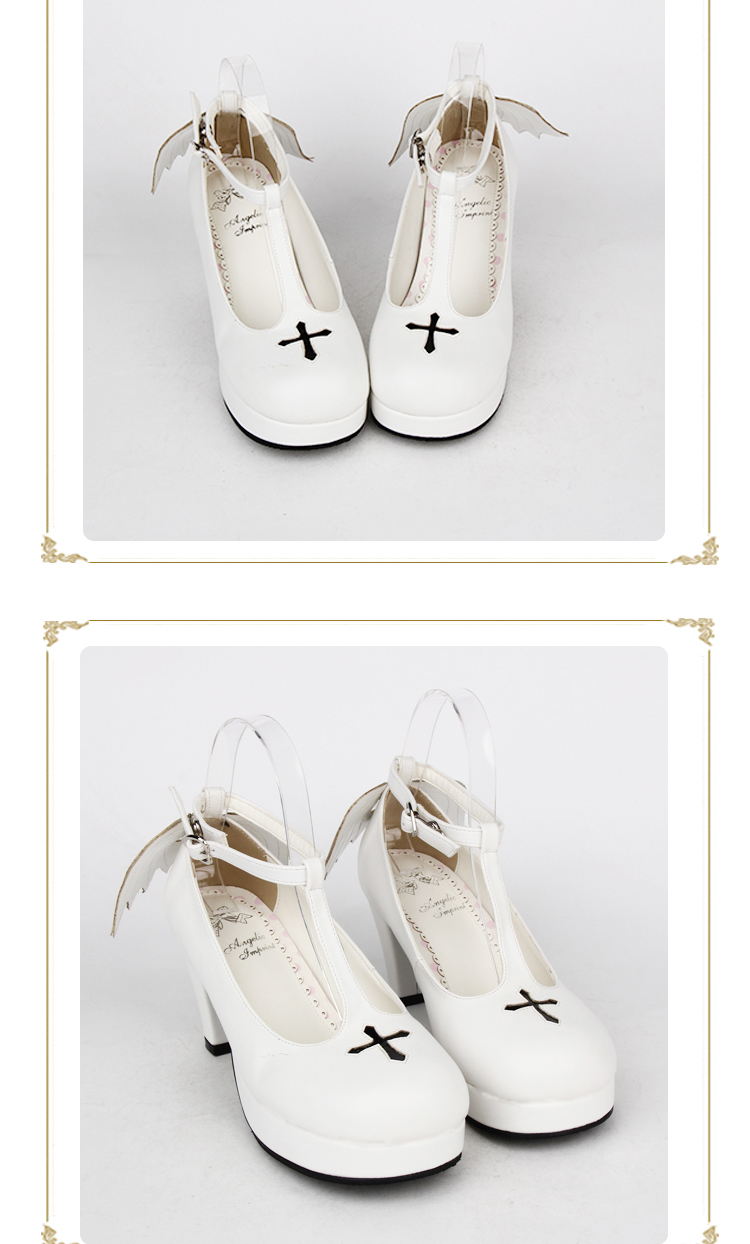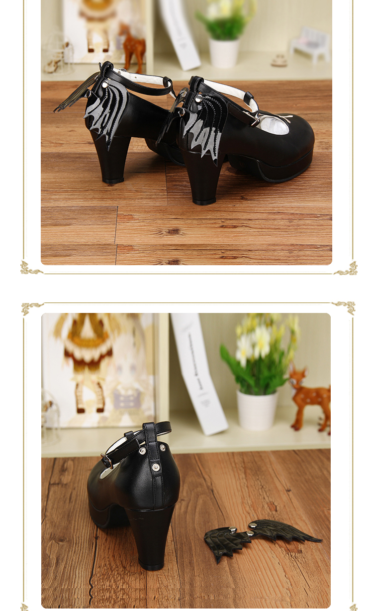 | Product Name | Angelic Imprint - High Wedge Heel Round Toe Buckle Gothic Platform Lolita Shoes with Removable Wing |