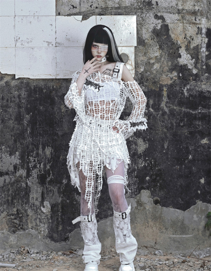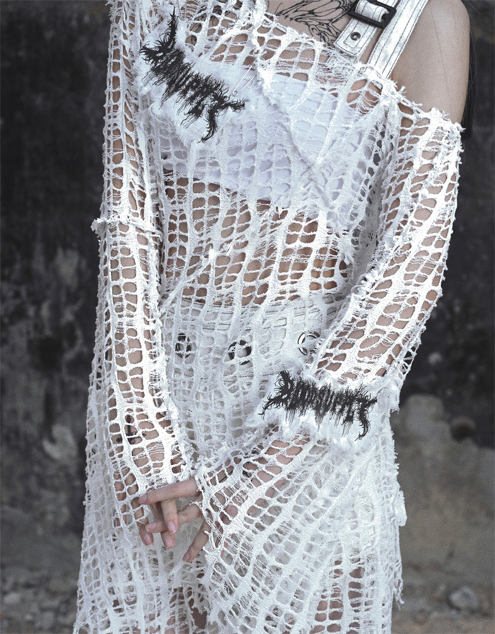 | Product Name | Asylum- Alt Street Punk Y2K Grunge Knitted Ripped T-shirt Topwear |