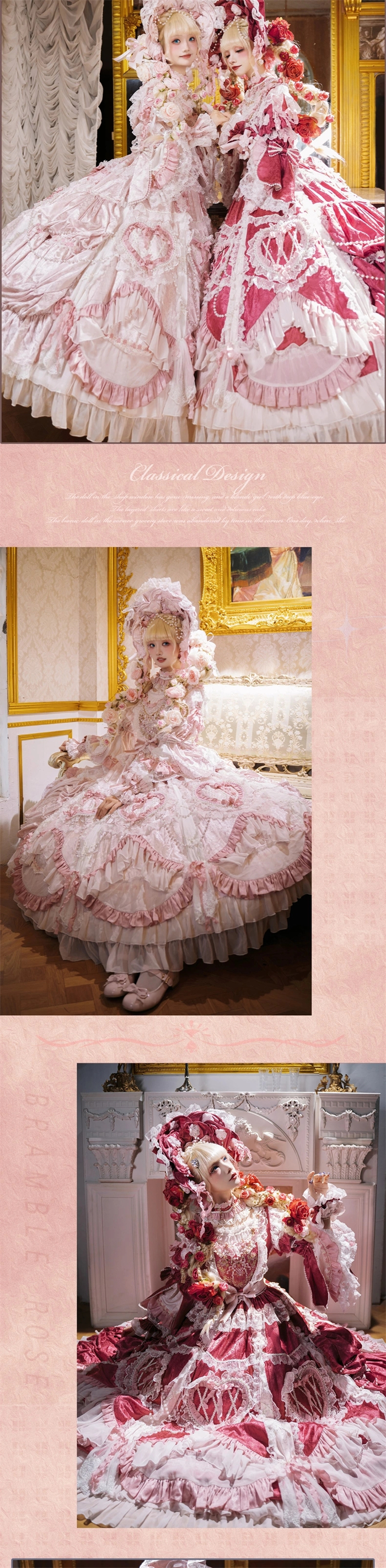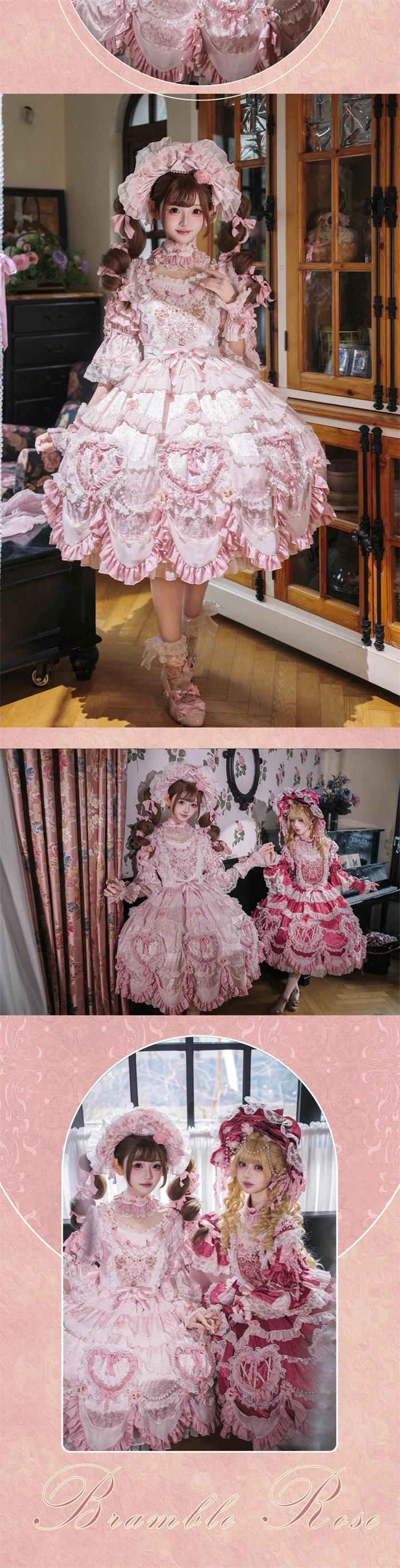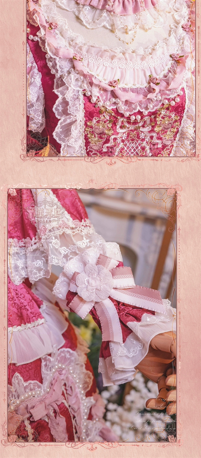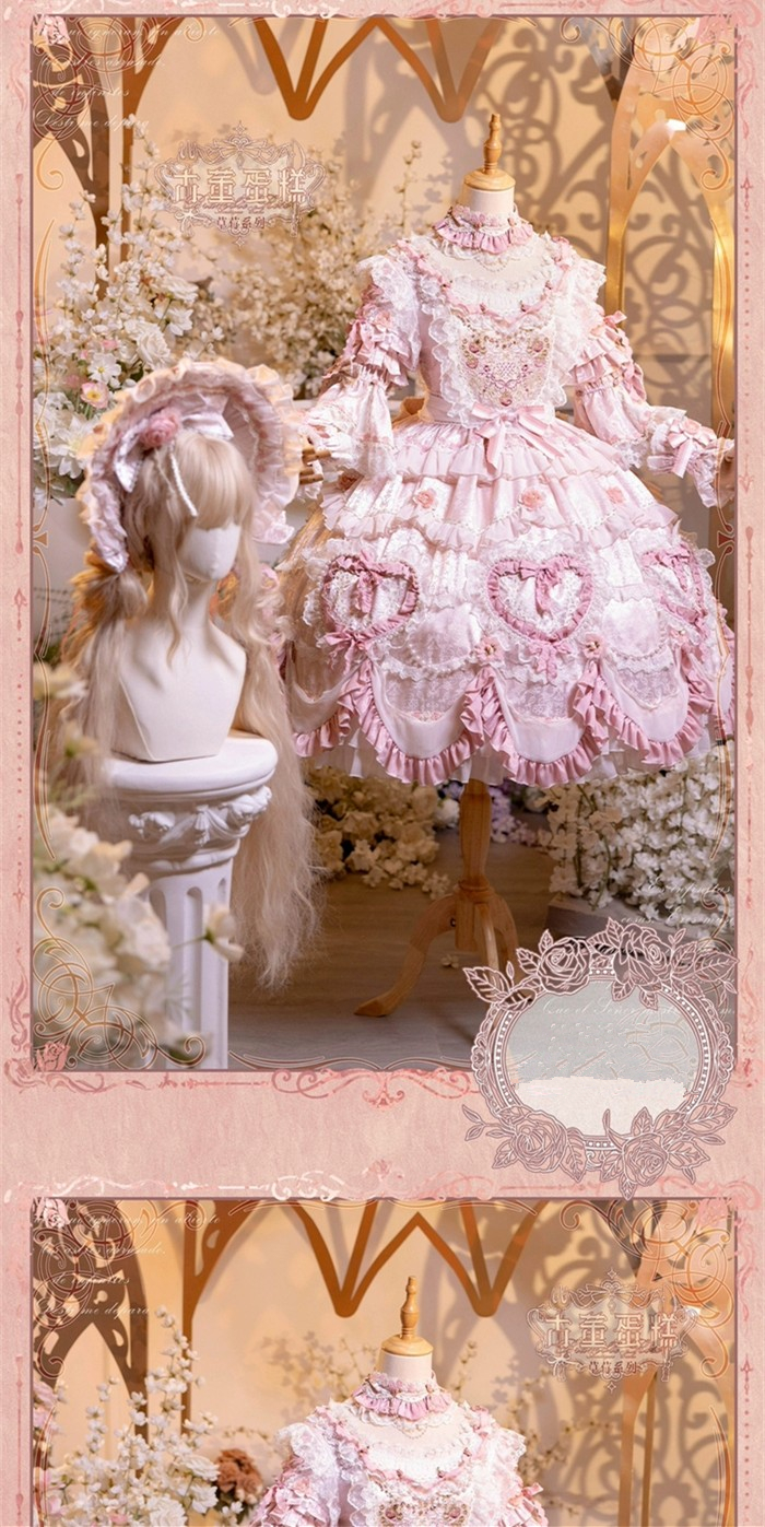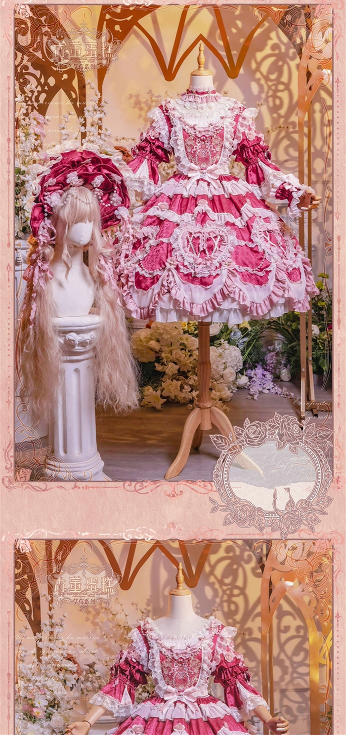 | Product Name | Bramble Rose -Antique Cake- Retro Vintage Classic Tea Party Princess Wedding Rococo Lolita OP Dress and Accessories (Pink and Wine Version) |