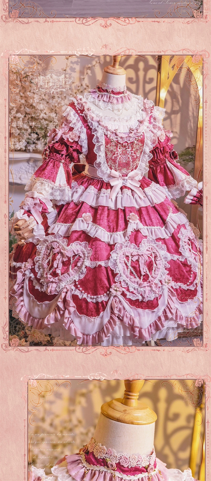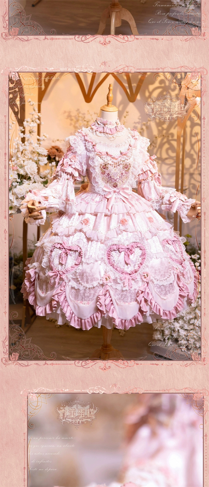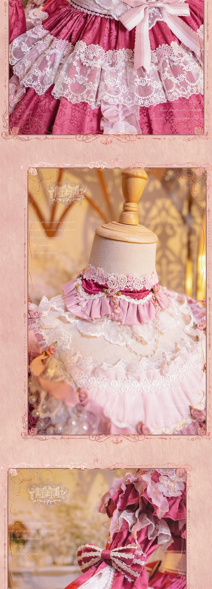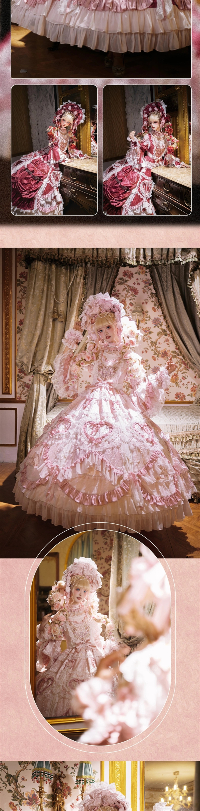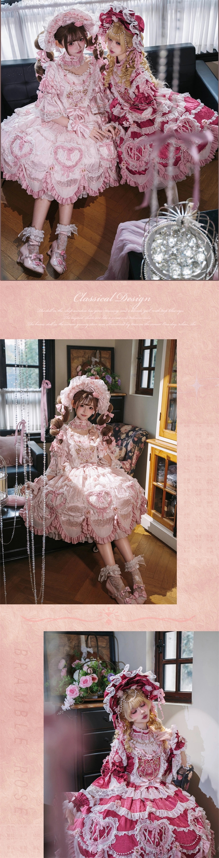 | Product Name | Bramble Rose -Antique Cake- Retro Vintage Classic Tea Party Princess Wedding Rococo Lolita OP Dress and Accessories (Pink and Wine Version) |