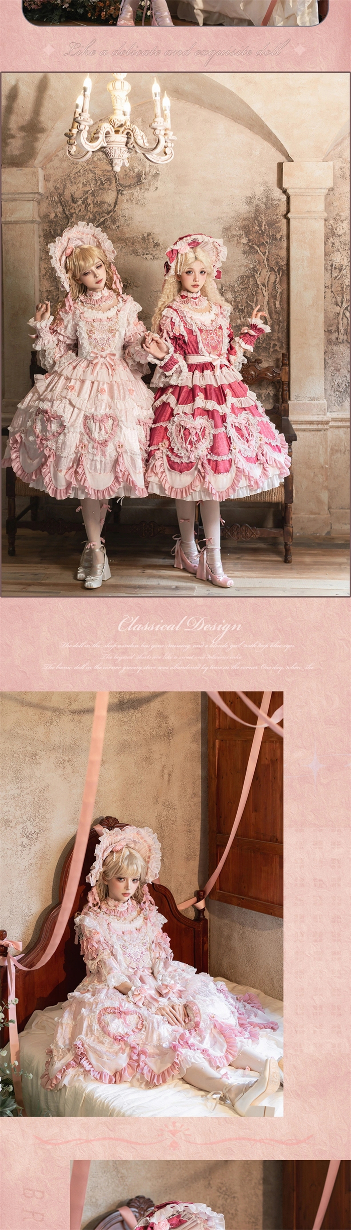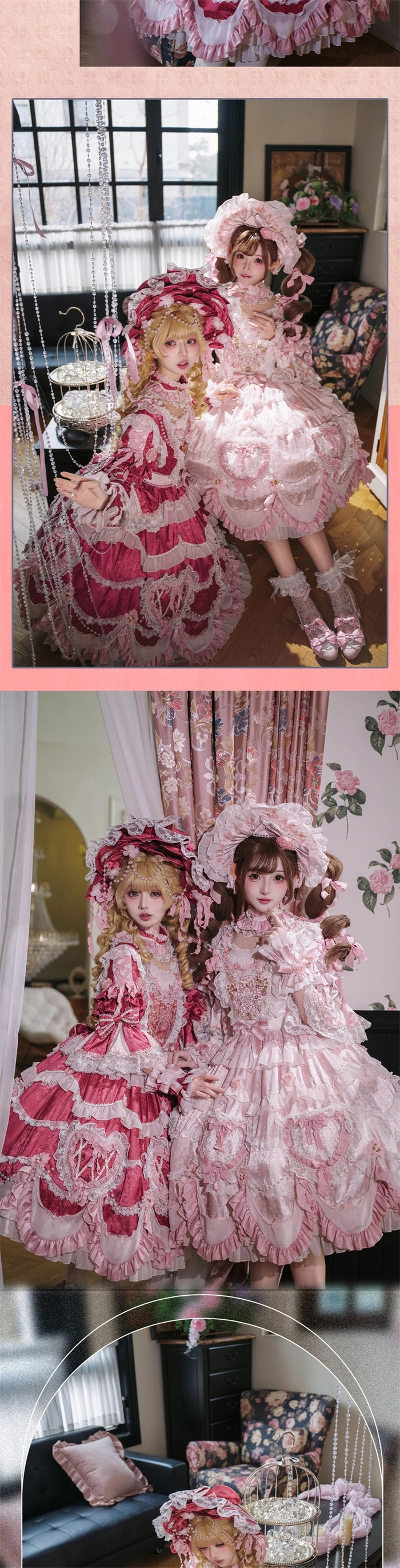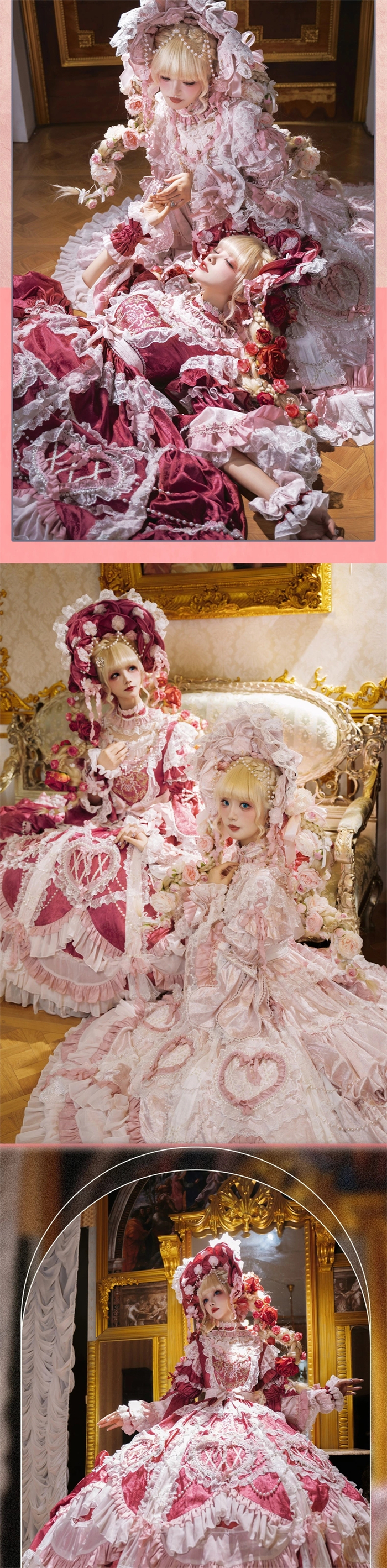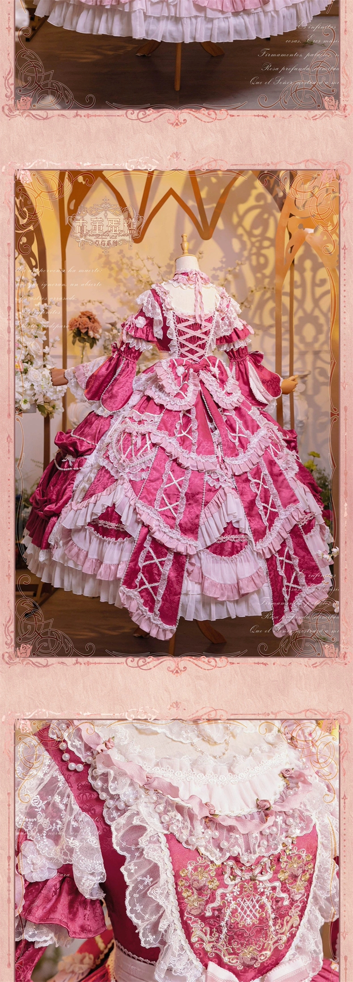 | Product Name | Bramble Rose -Antique Cake- Retro Vintage Classic Tea Party Princess Wedding Rococo Lolita OP Dress and Accessories (Pink and Wine Version) |