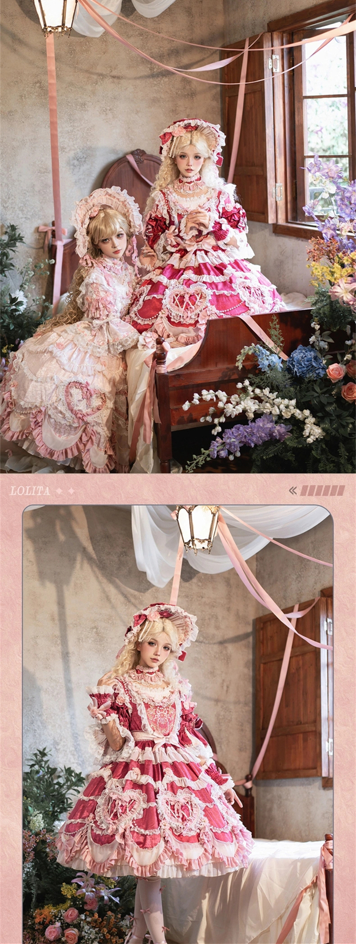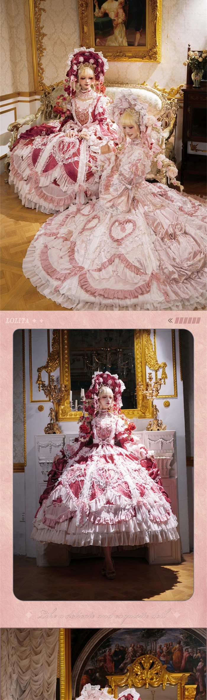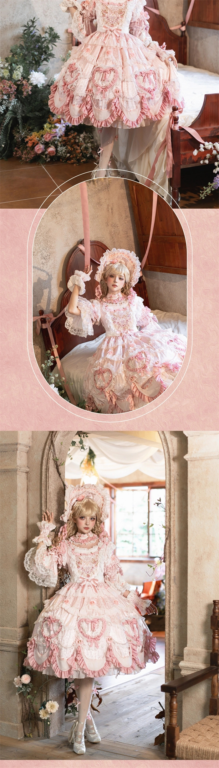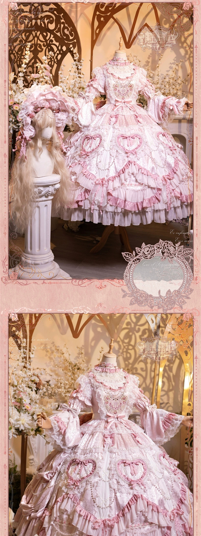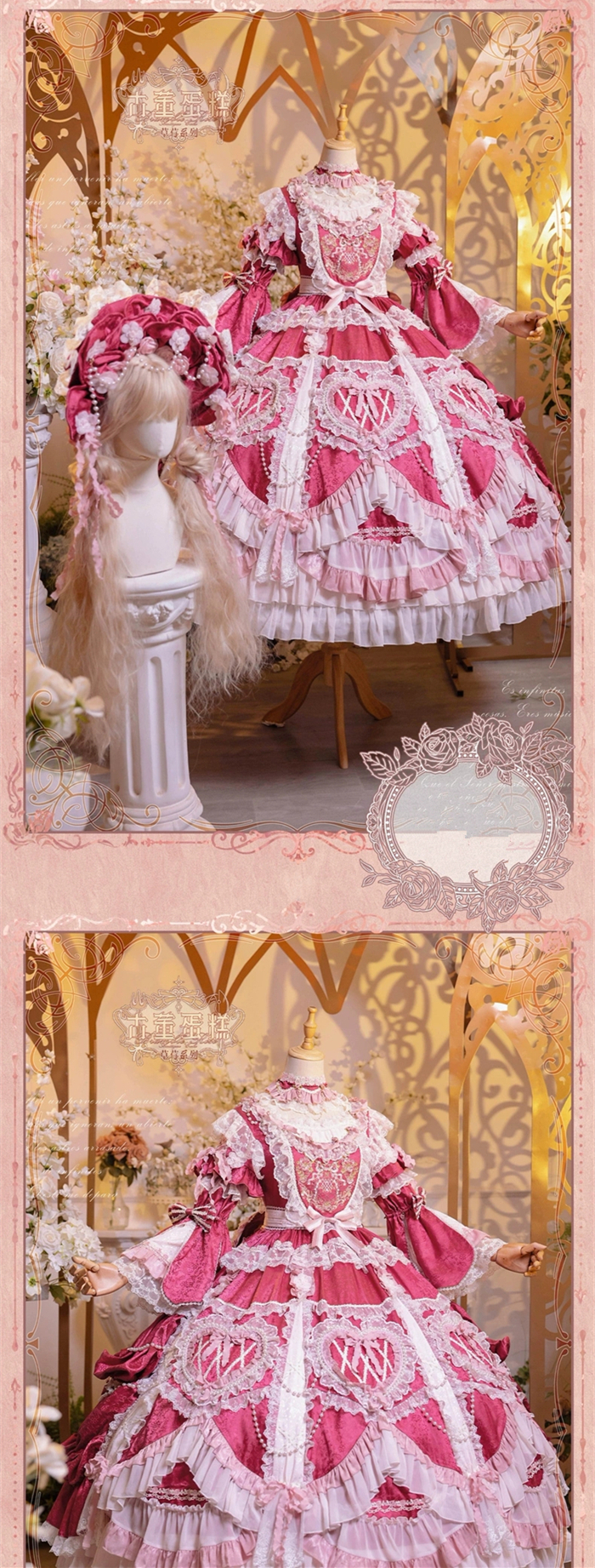 | Product Name | Bramble Rose -Antique Cake- Retro Vintage Classic Tea Party Princess Wedding Rococo Lolita OP Dress and Accessories (Pink and Wine Version) |