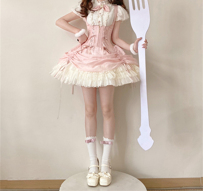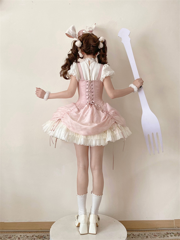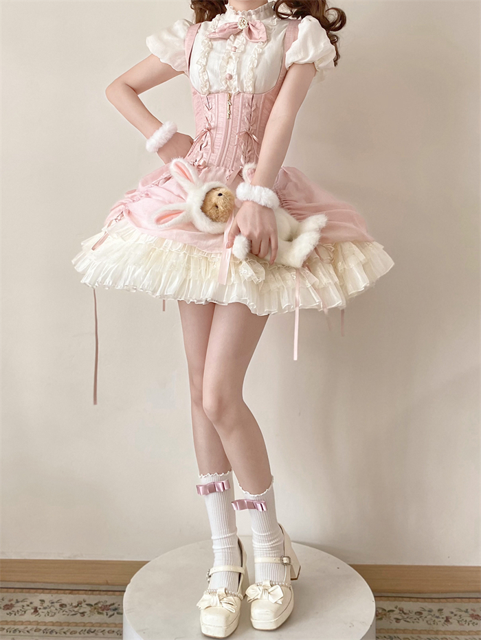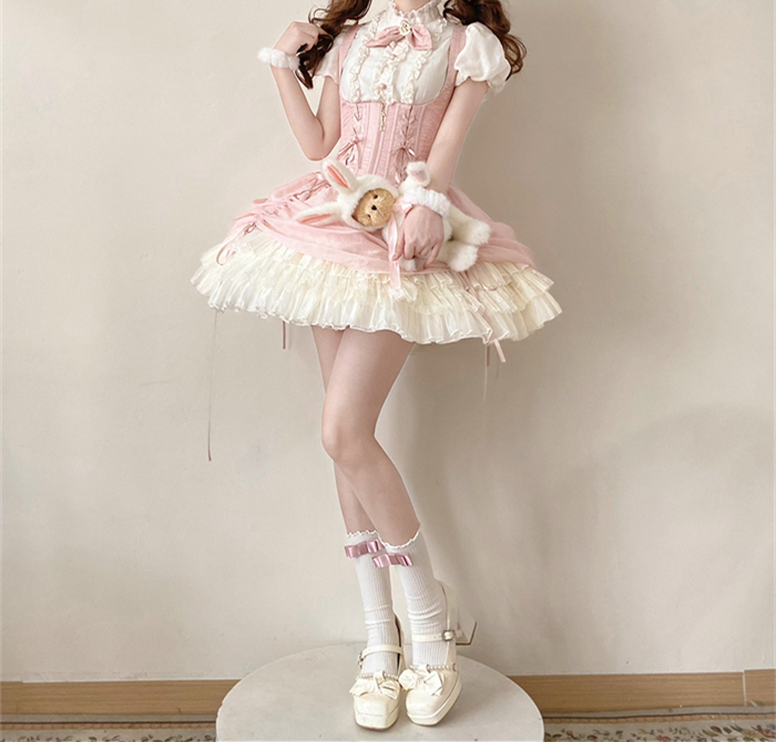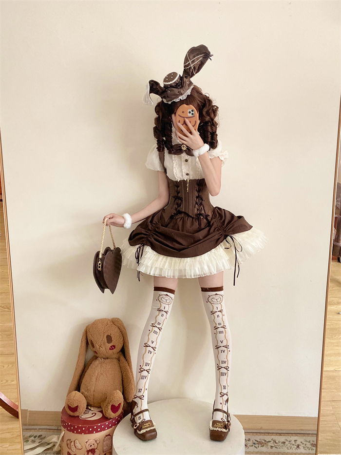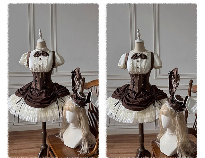 | Product Name | Caramel Antique - Bree Rabbit - Cute Sweet Classic Lolita Blouse and Corset Suspender Dress Set |