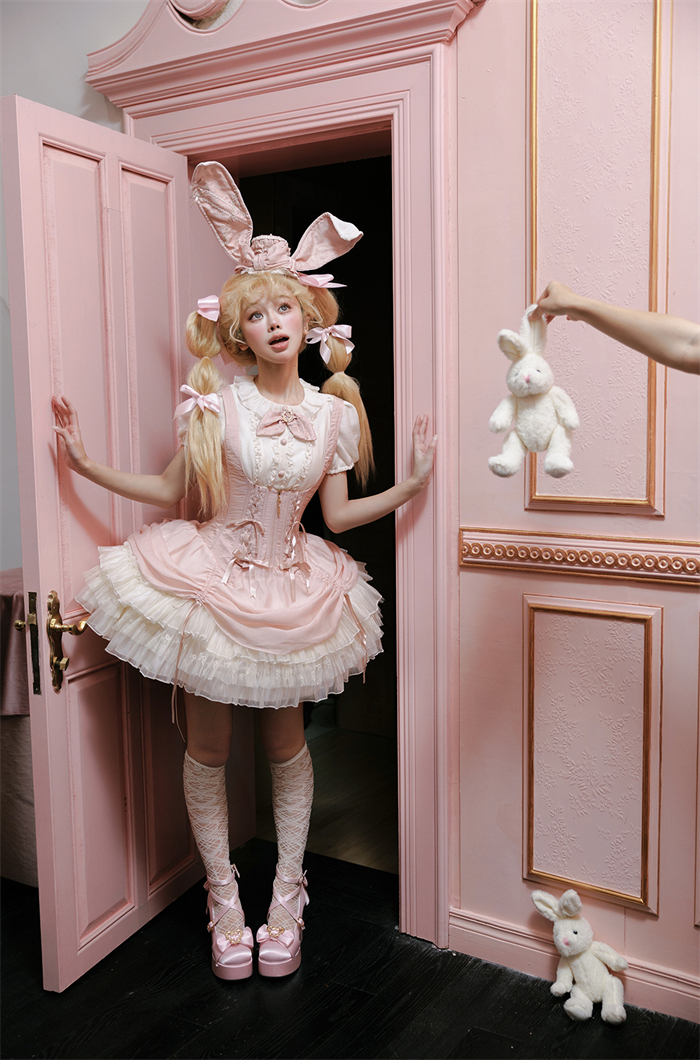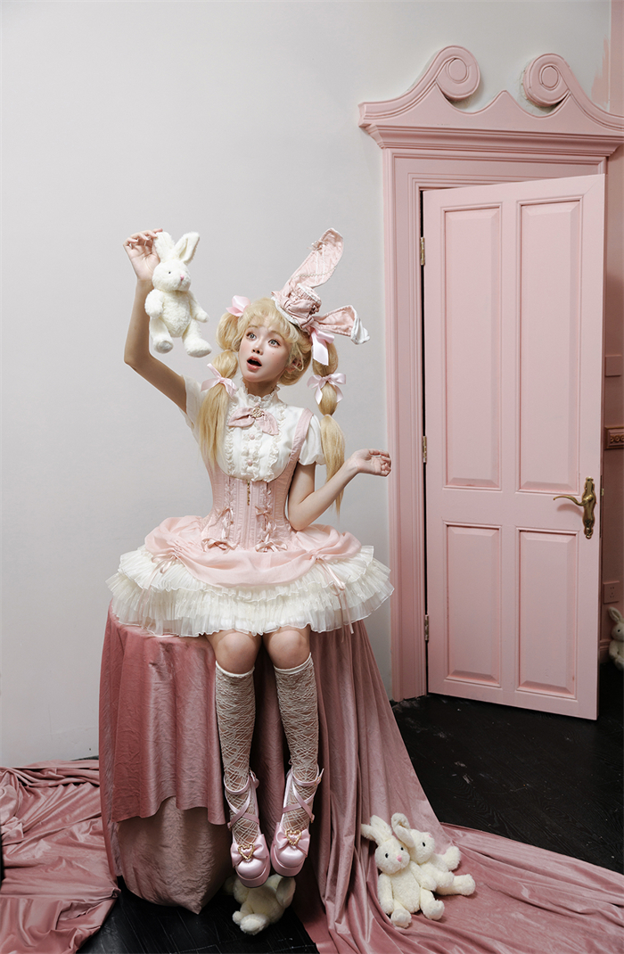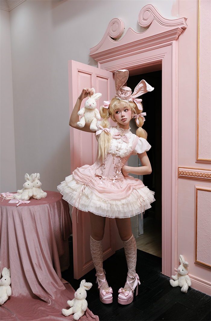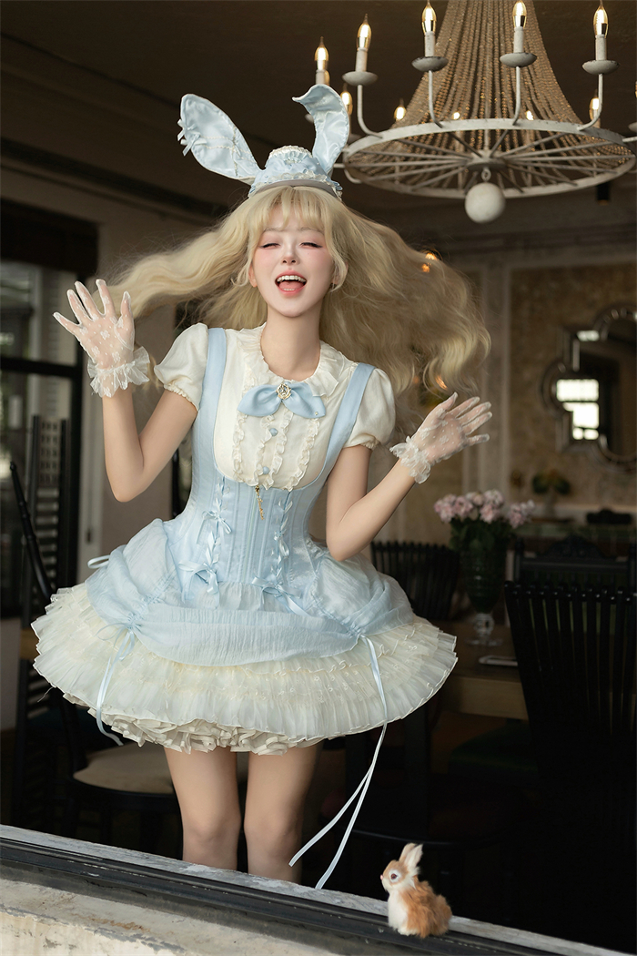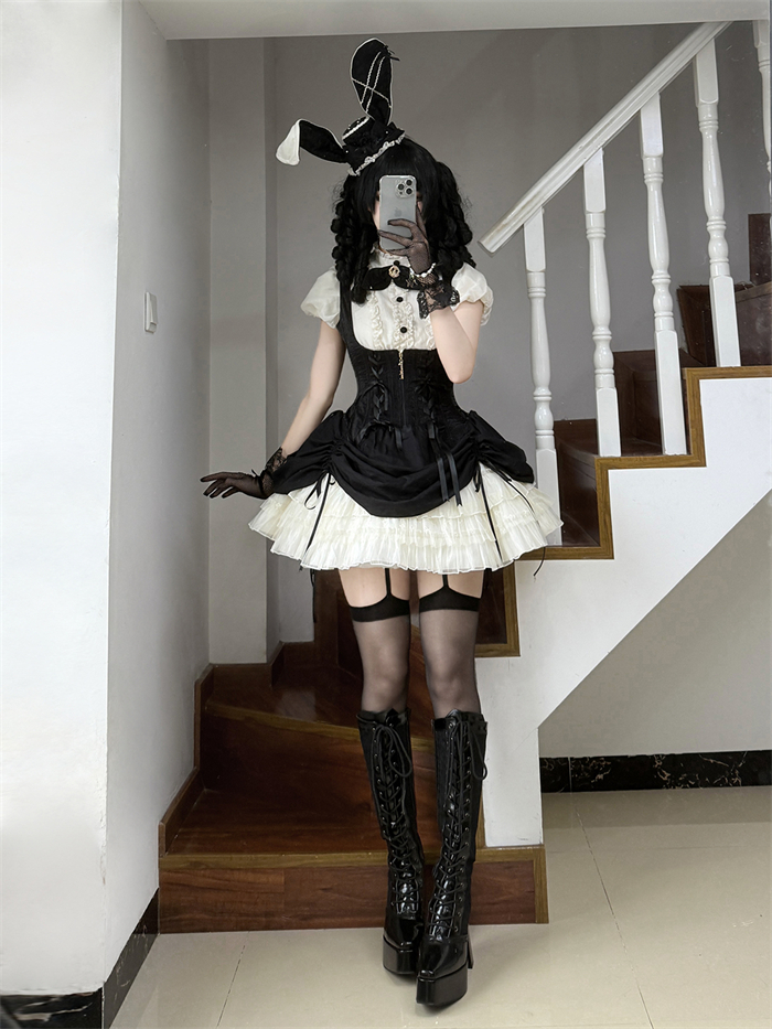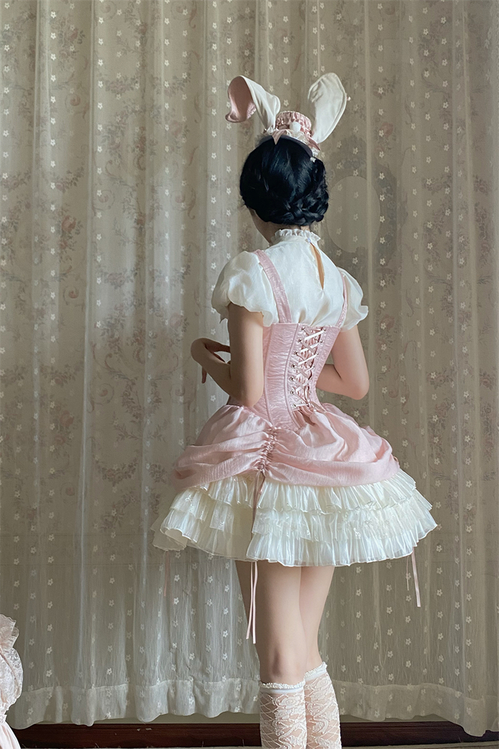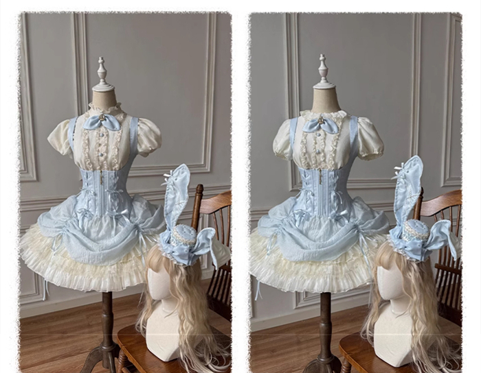Full Set=Blouse(Stand collar/Round collar)+Corset Suspender Dress+Rabbit Bow Tie+Rabbit Ear Hat
