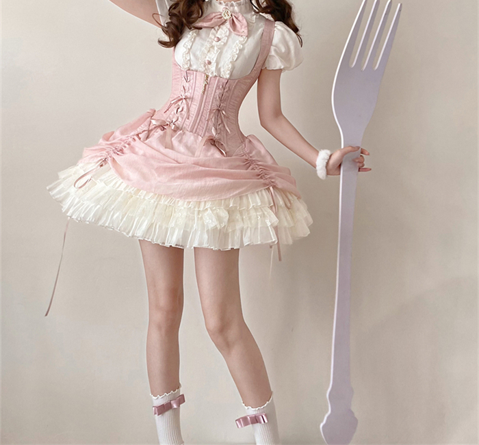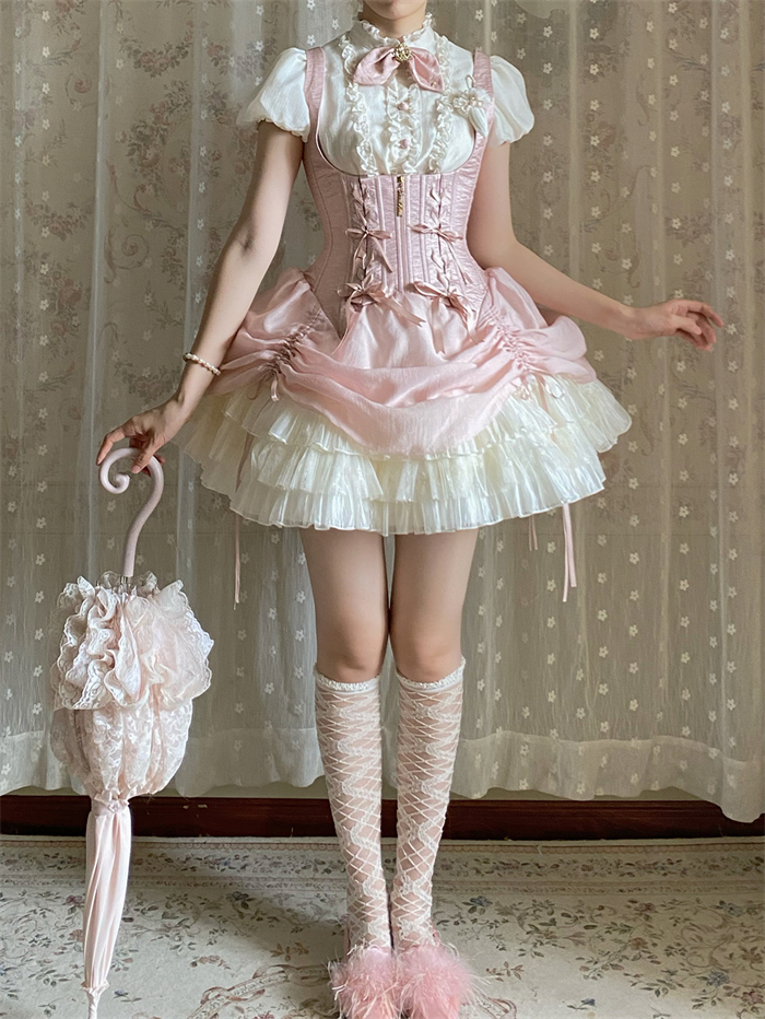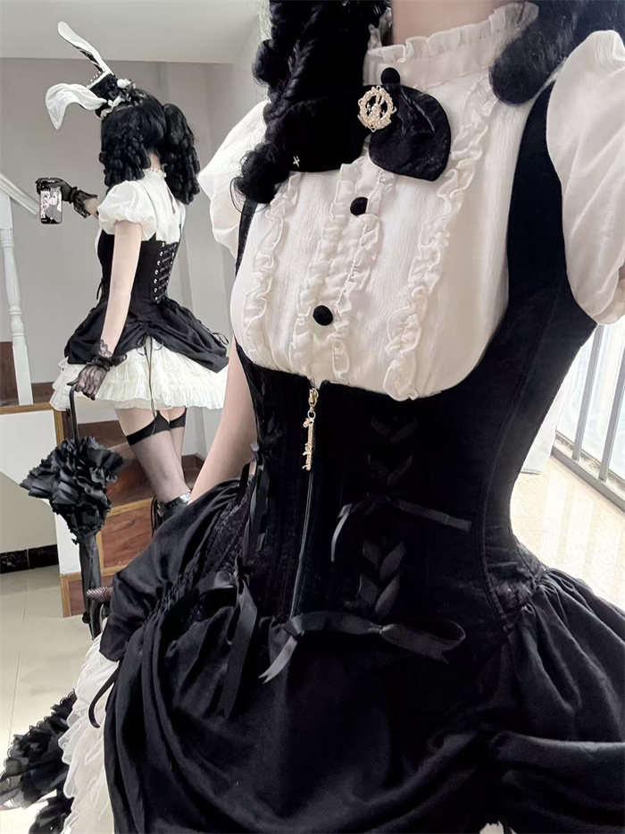 Set I=Blouse(Stand collar/Round collar)+Corset Suspender Dress