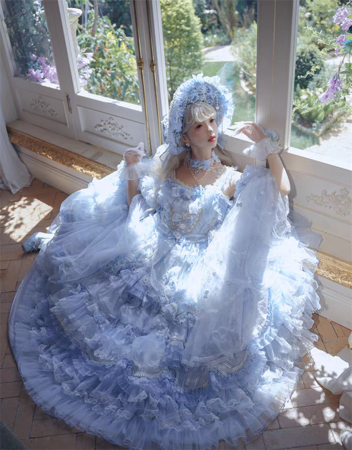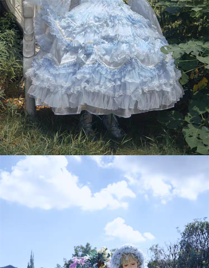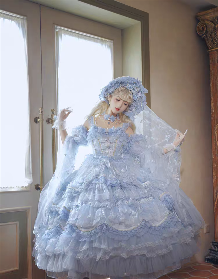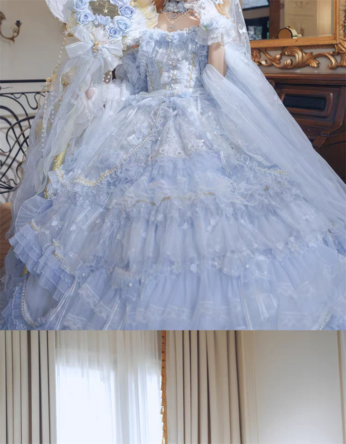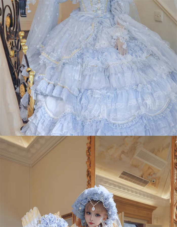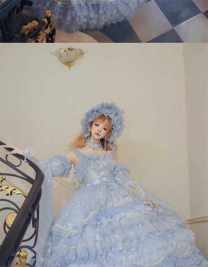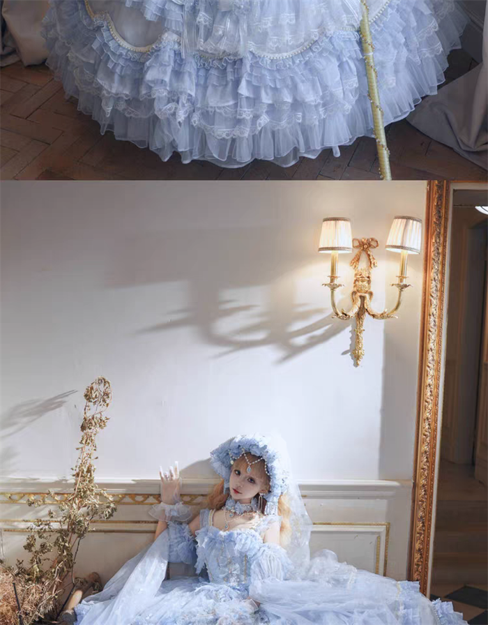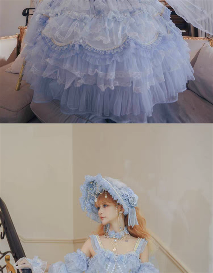| Product Name | Cat Fairy - A Princess On The Lam - Gorgeous Tea Party Princess Wedding Rococo Sky Blue Lolita JSK with Arm Sleeves |