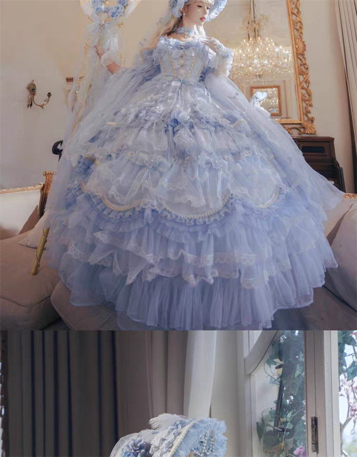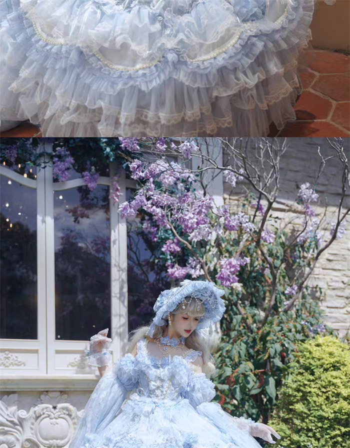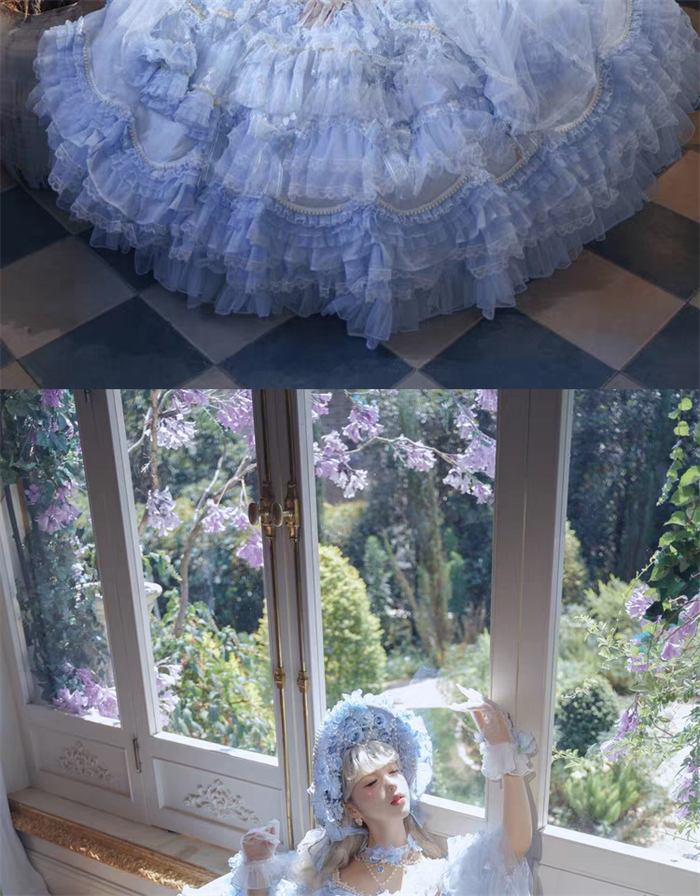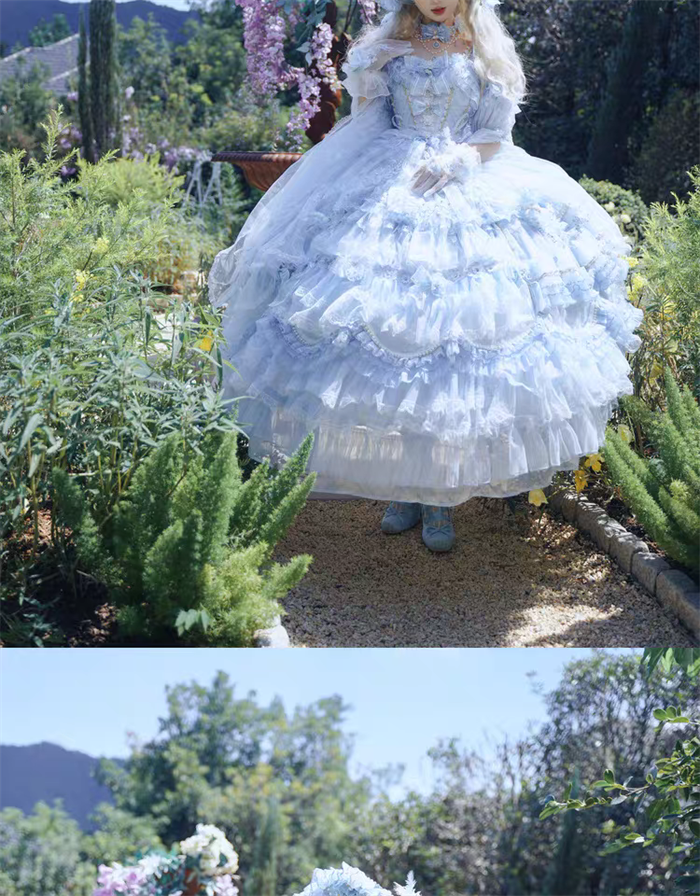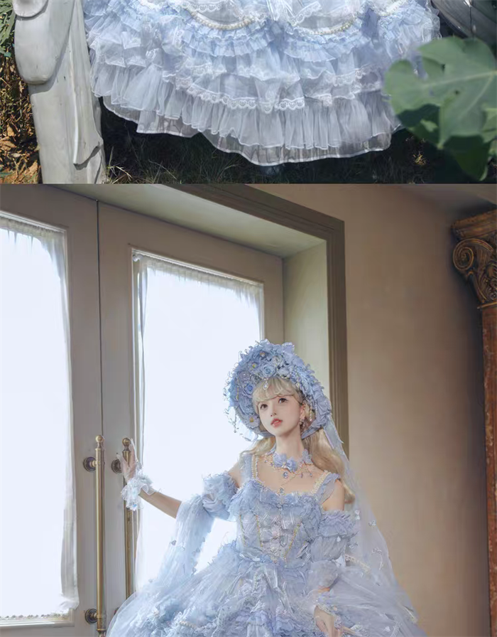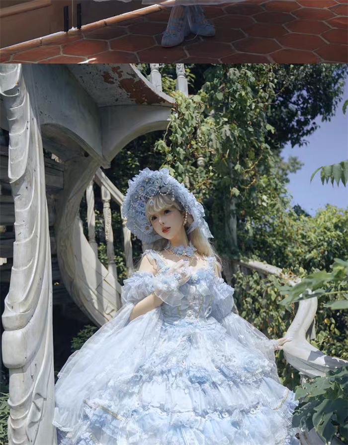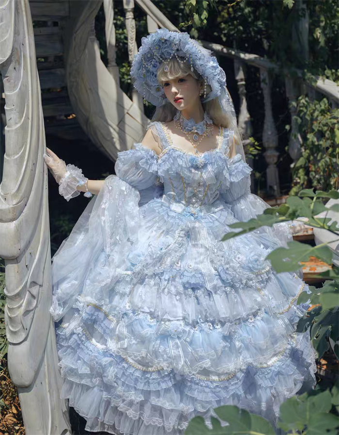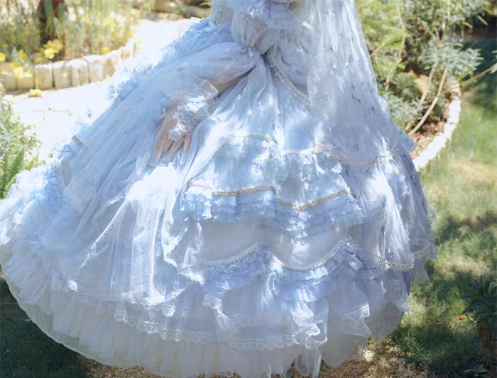 | Product Name | Cat Fairy - A Princess On The Lam - Gorgeous Tea Party Princess Wedding Rococo Sky Blue Lolita JSK with Arm Sleeves |