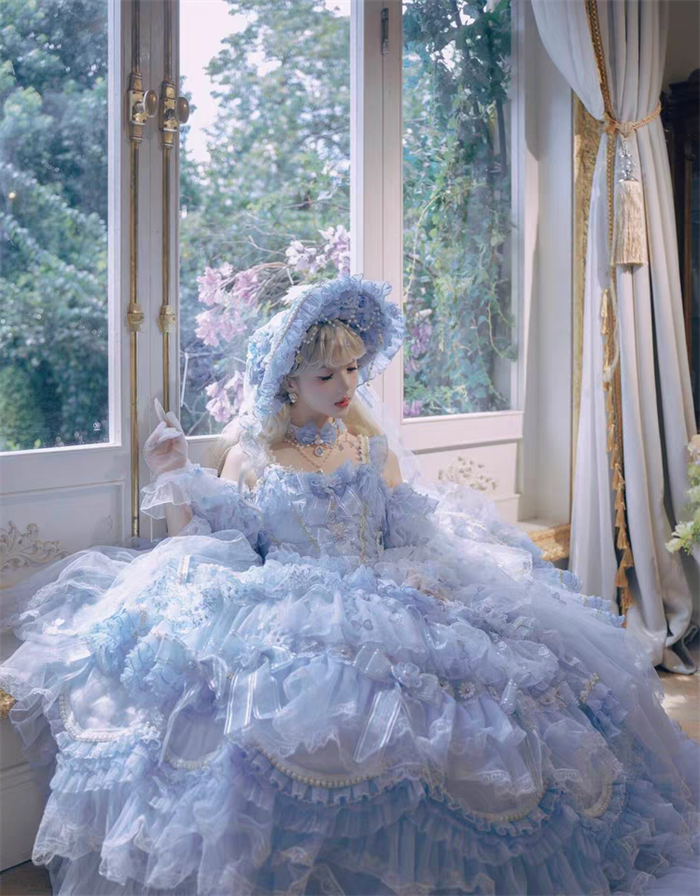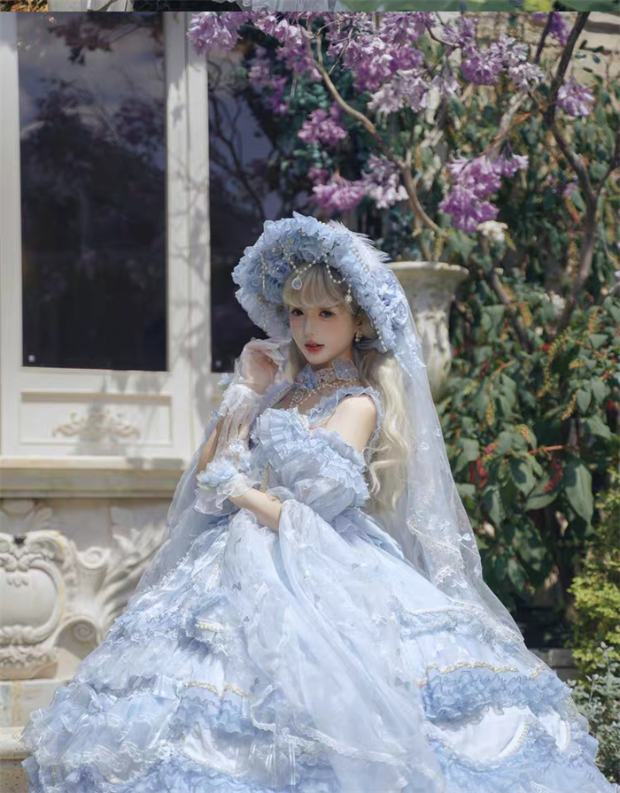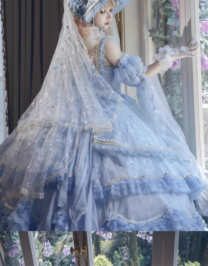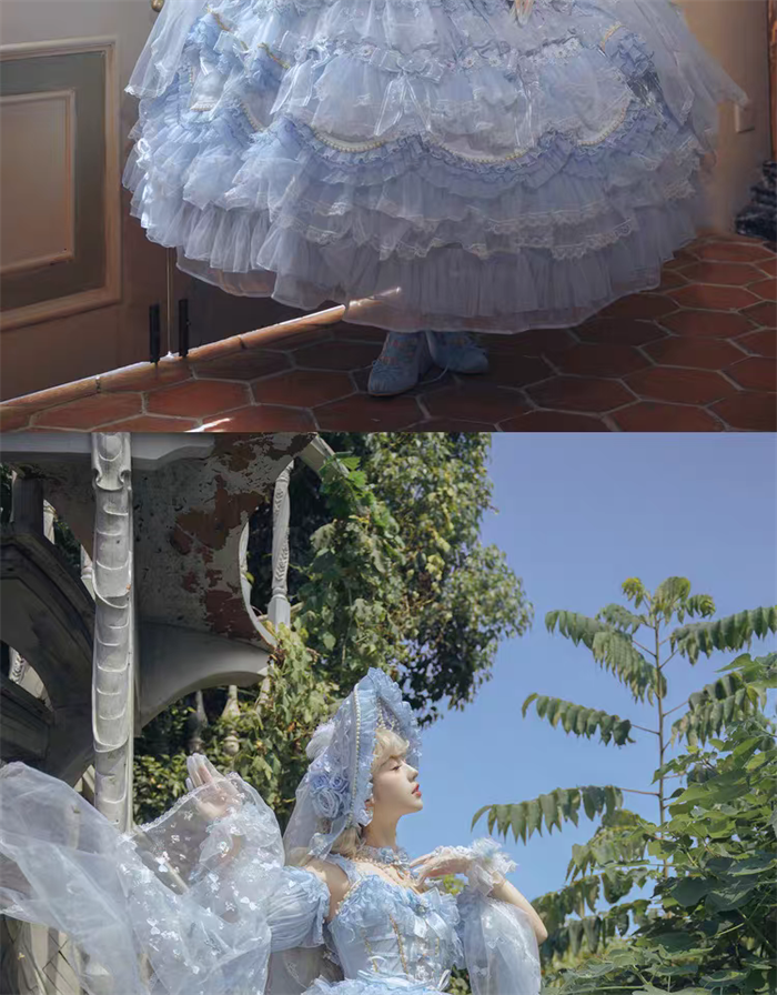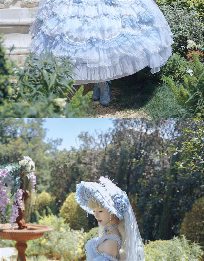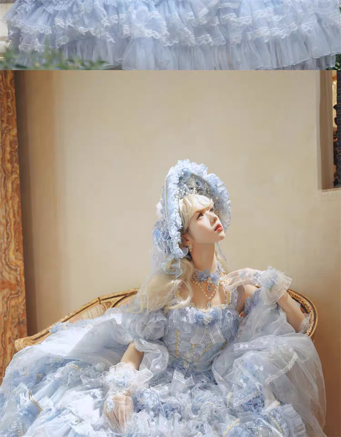 The matched Accessories can be found here >> Cat Fairy - A Princess On The Lam - Gorgeous Tea Party Princess Wedding Rococo Sky Blue Lolita Accessories