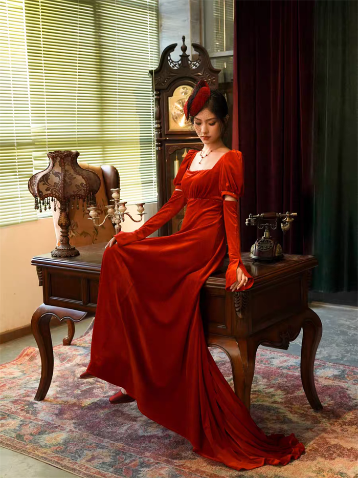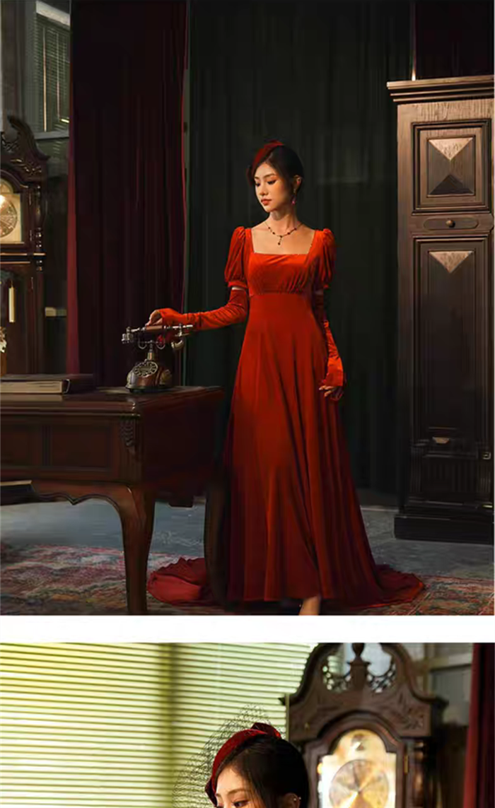 | Product Name | Cat Highness - Lost in Burgundy - Prom Homecoming Birthday Party Tea Party Princess Wedding Velvet Empire Retro Classic Lolita OP Dress |