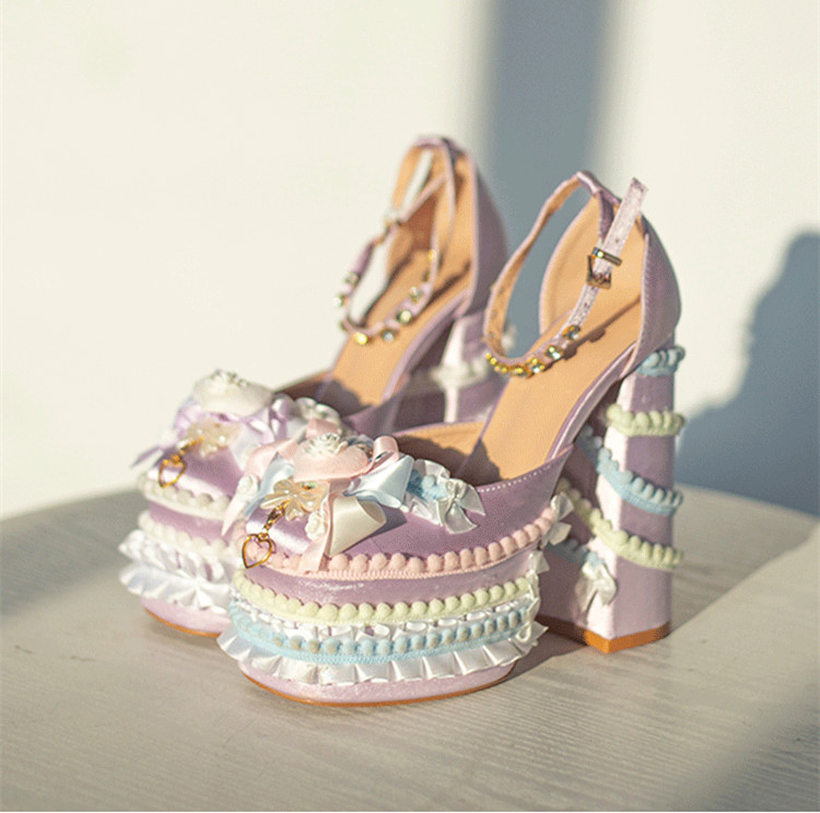| Product Name | Cream Cake High Platform Silk PU Square Toes Y2K Lolita Heel Shoes |