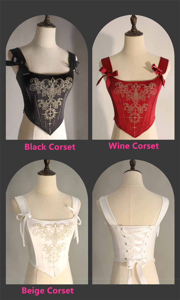 Below are the Corset, Skirt and Petticoat you will get when you purchase