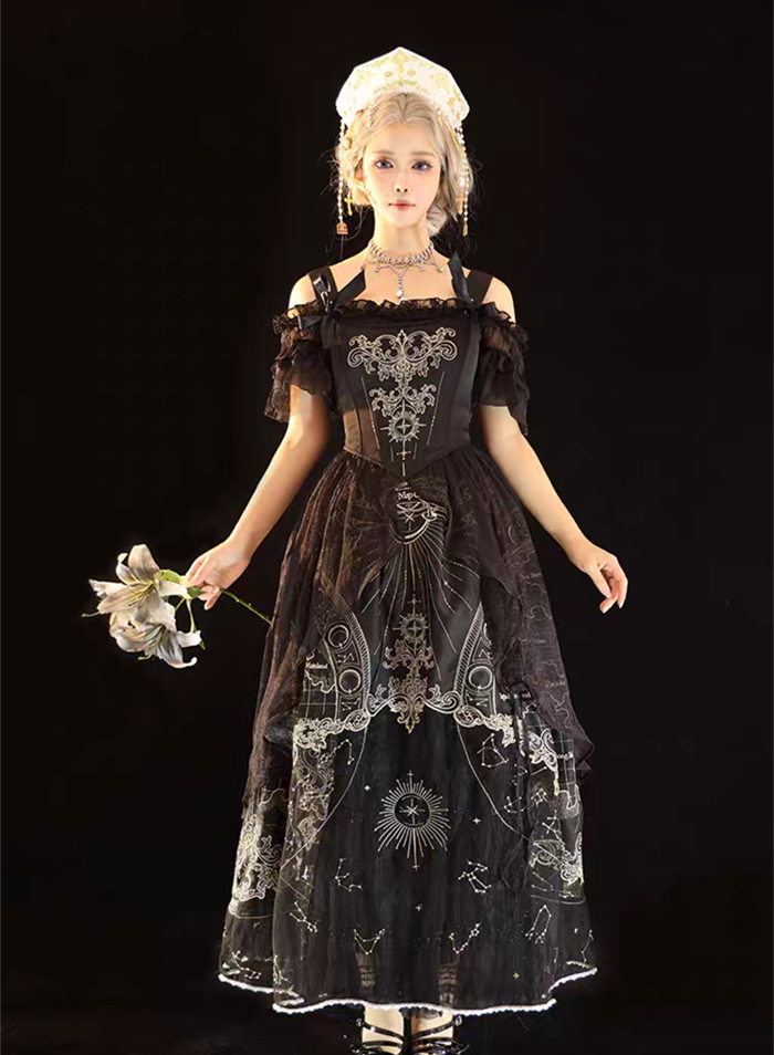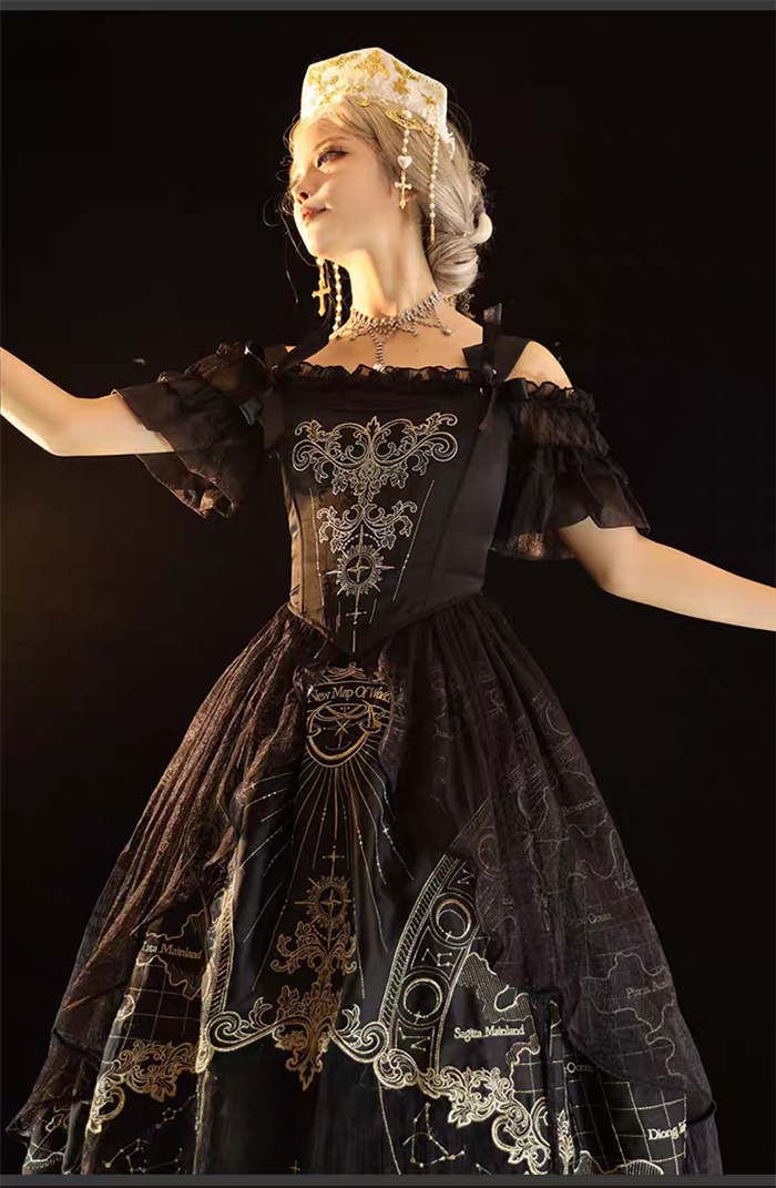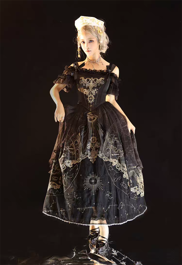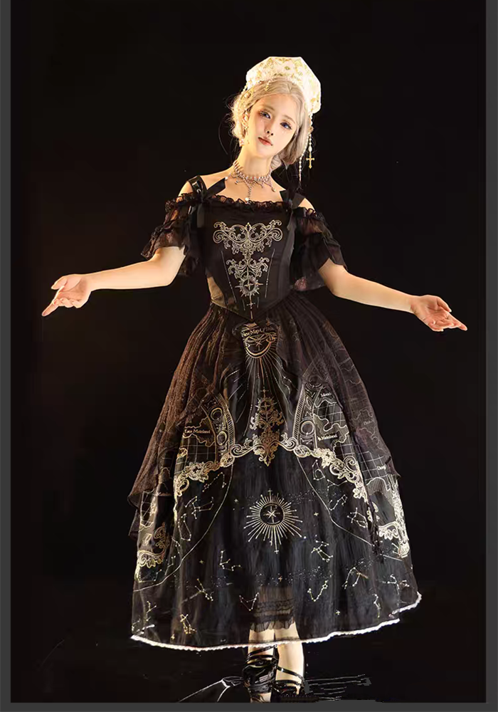 | Product Name | Cyan Lolita -Star Map- Embroidery Vintage Classic Lolita Corset, Skirt and Petticoat |