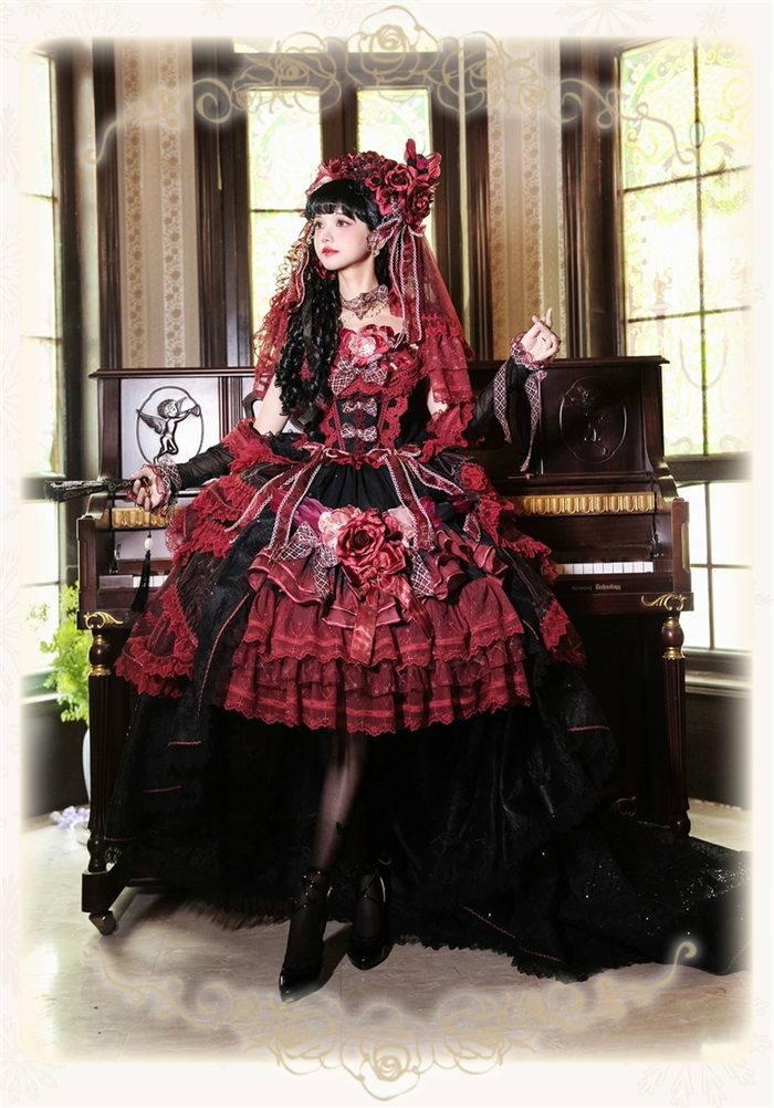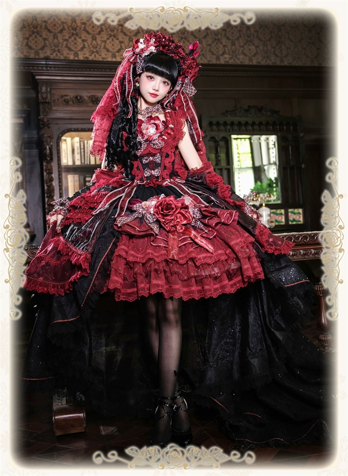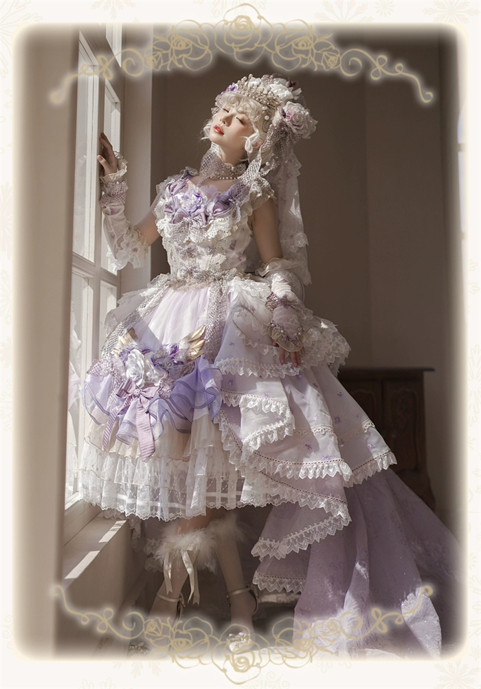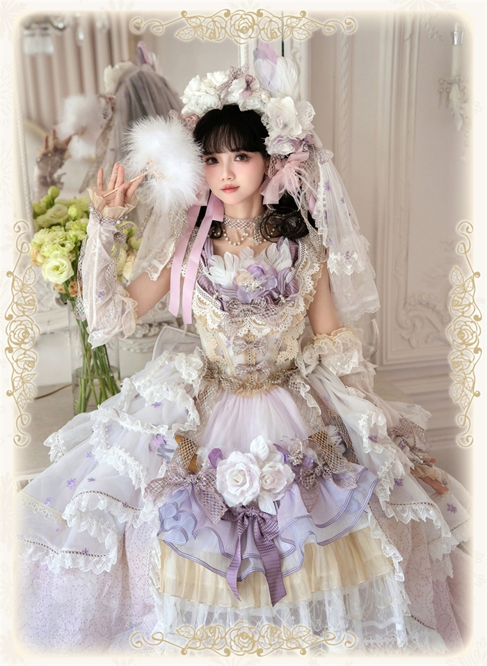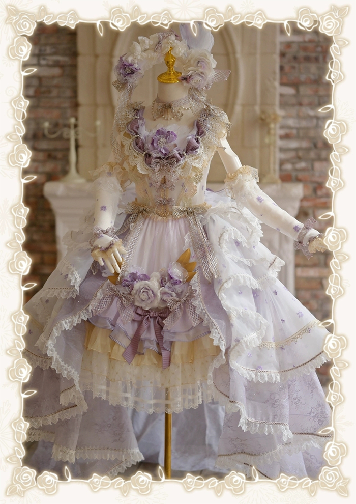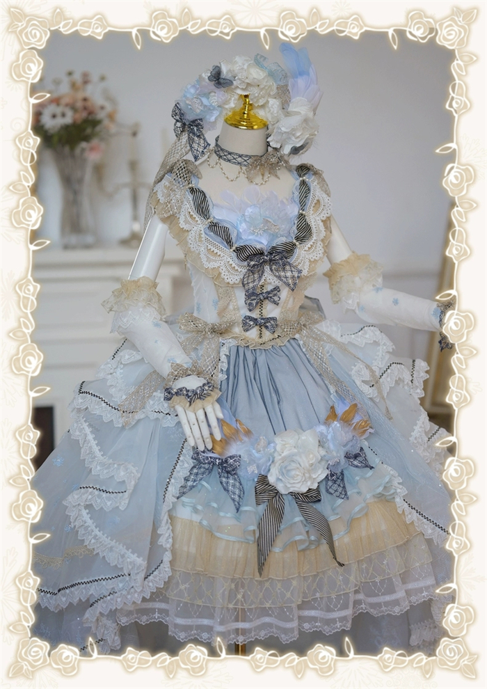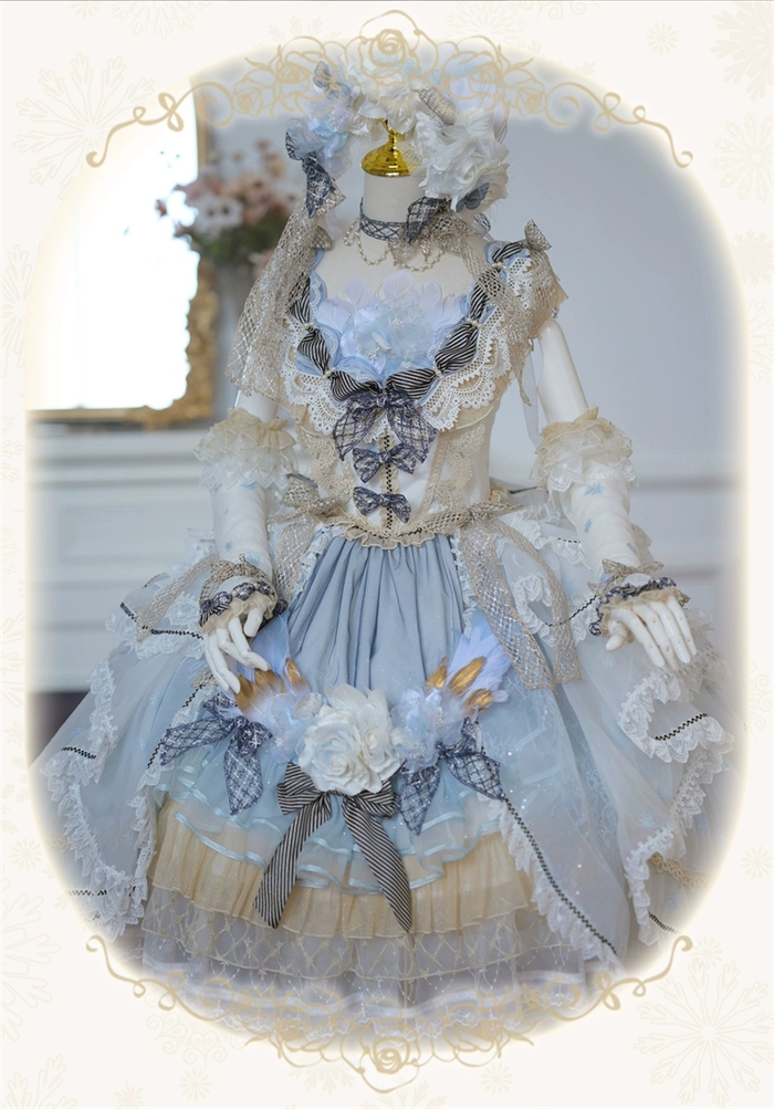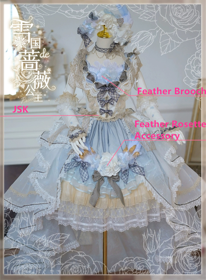 Note: The price is for the JSK with Feather Brooch, Feather Rosette Accessory, Tailing and A Big Back Bow.