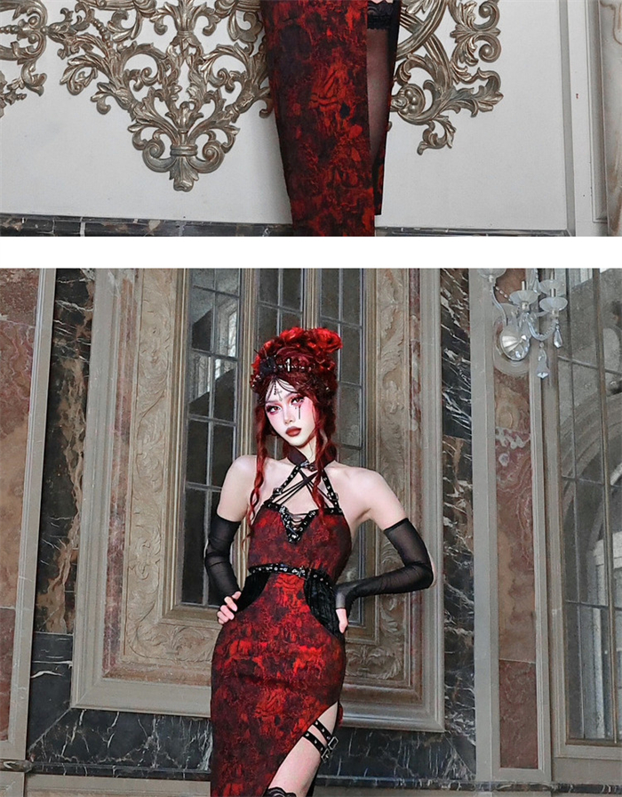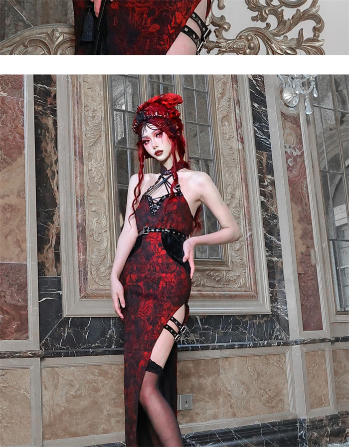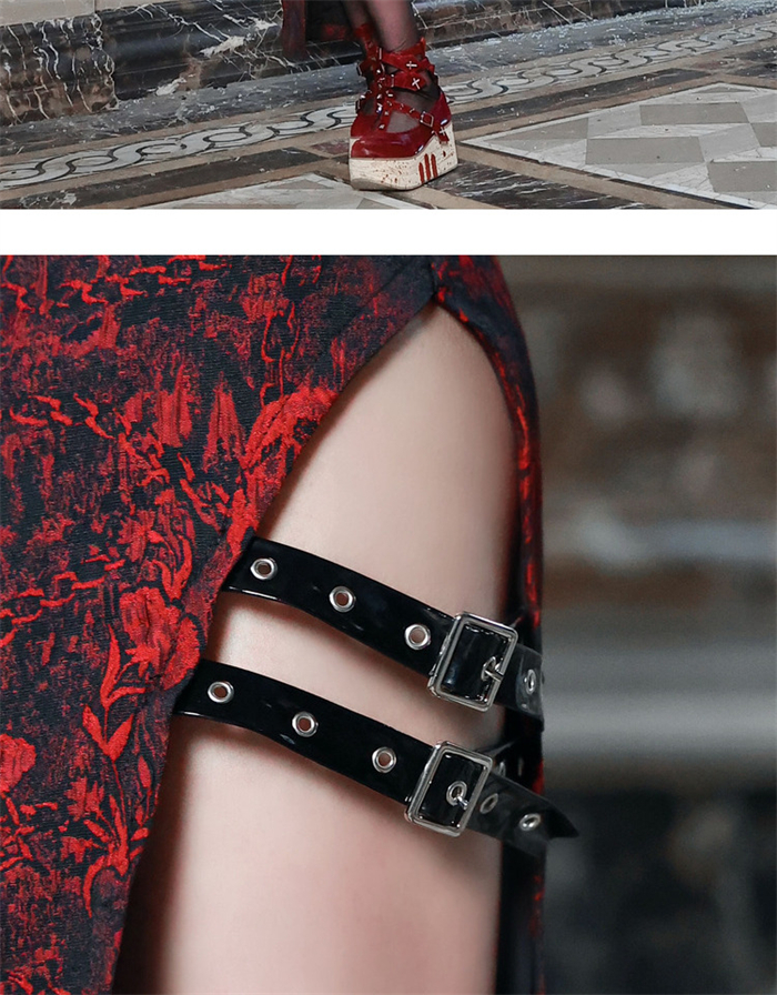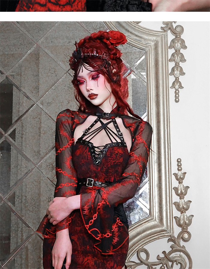 | Product Name | Feast in Hades- Alt Street Punk Gothic Halloween PU Improved Cheongsam Dress and Bolero |