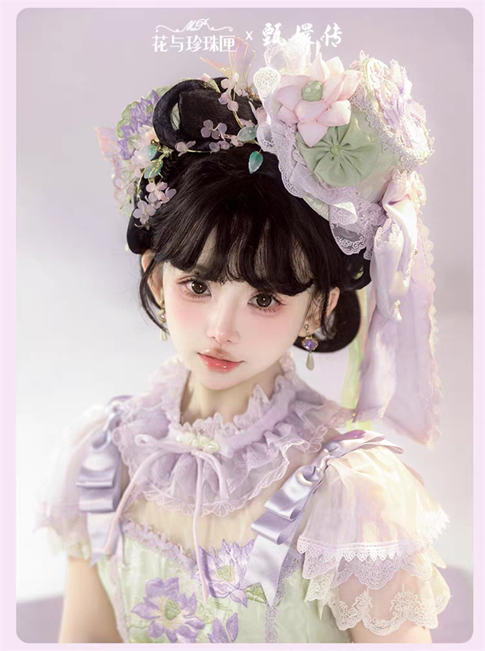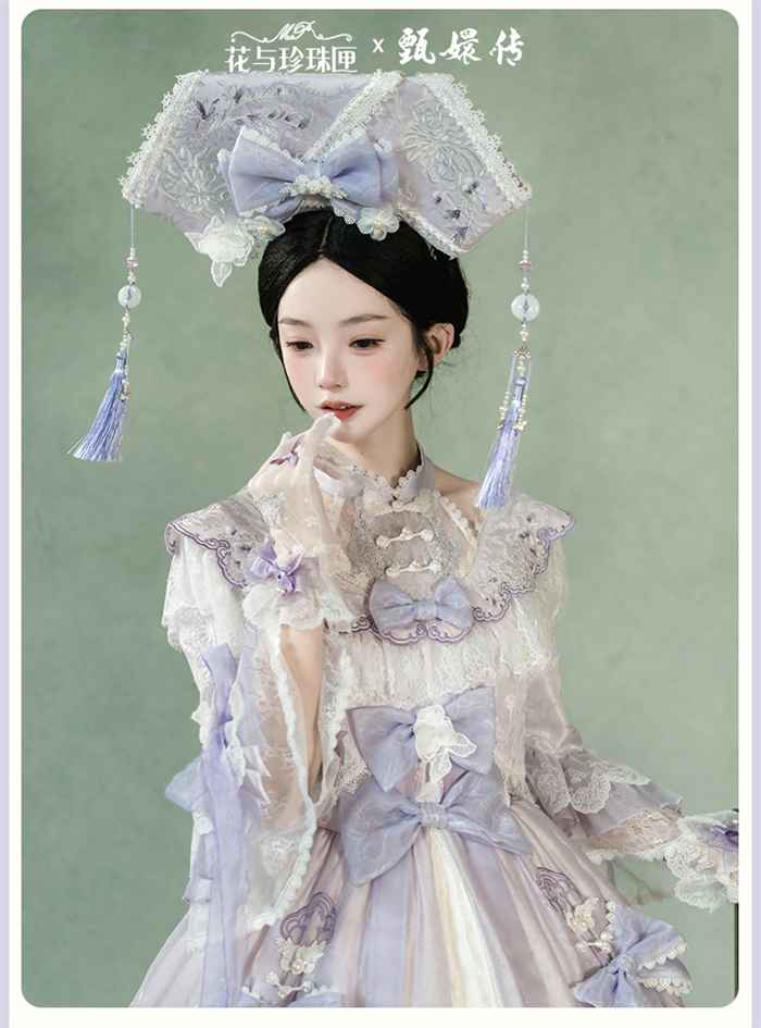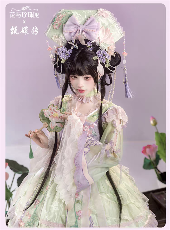 The matched Accessories can be found here >> Flowers and Pearl Box - The Legend of Zhen Huan - Gorgeous Embroidery Princess Rococo Classic Qi Lolita Accessories
