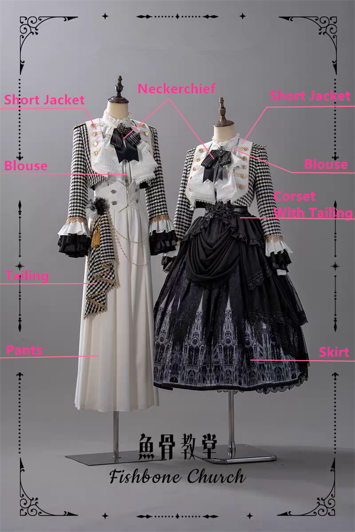 Set II=Short Jacket+Blouse+Neckerchief+Skirt+Corset With Tailing