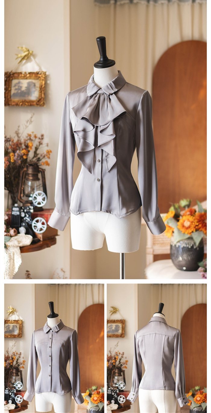 | Product Name | Forest Wardrobe -Forest Morning Dew- Elegant Classic Vintage Casual Lolita Long Sleeves Satin Blouse with Necktie |