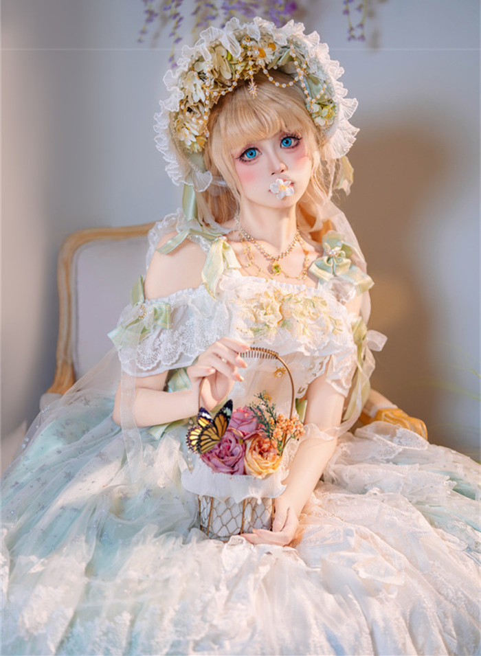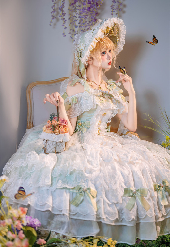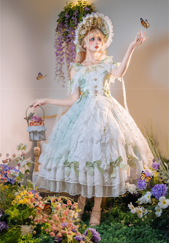 | Product Name | Glass Shadow - Princess Rococo Tea Party Mint Chiffon Wedding Lolita JSK with Arm Sleeves |