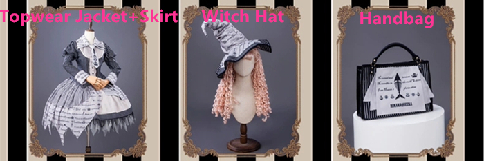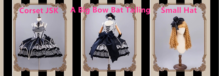 Below are the Topwear Jacket and Skirt Set, Corset JSK and Accessories you will get when you purchase