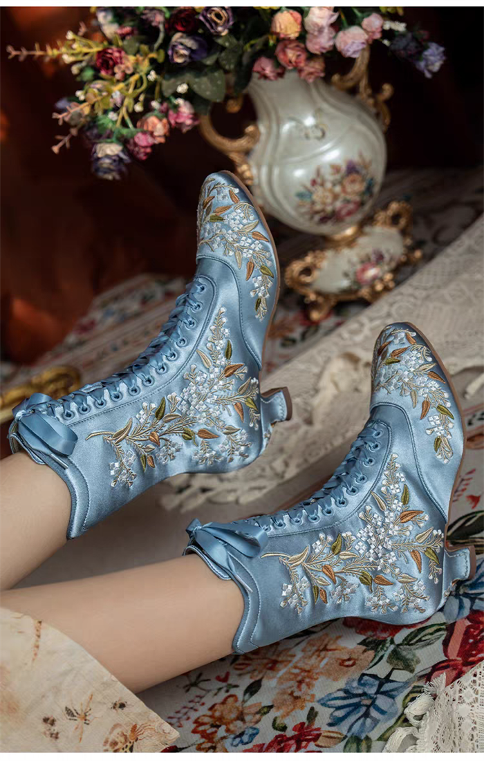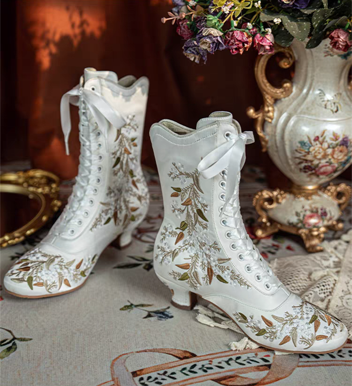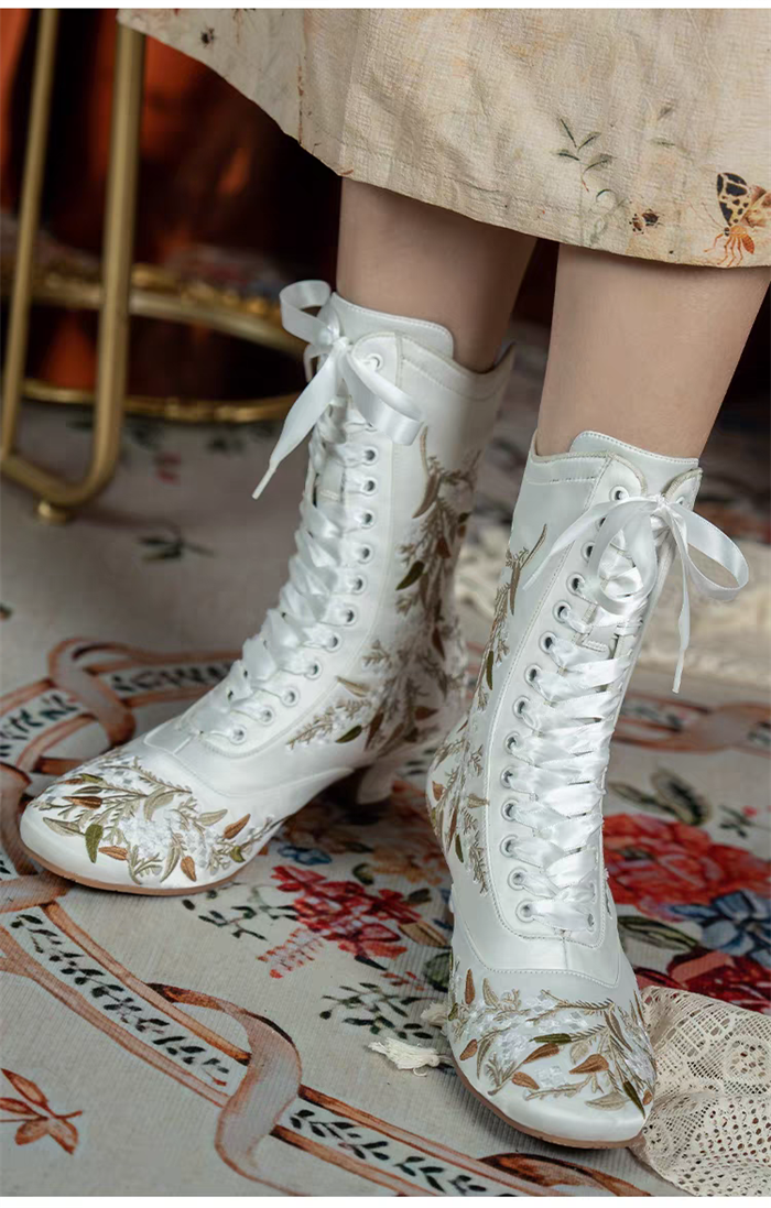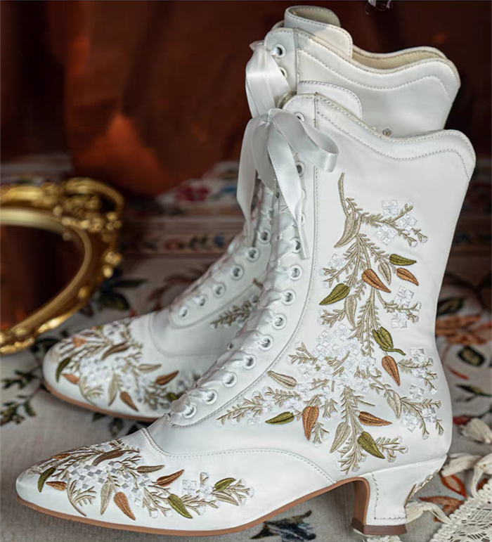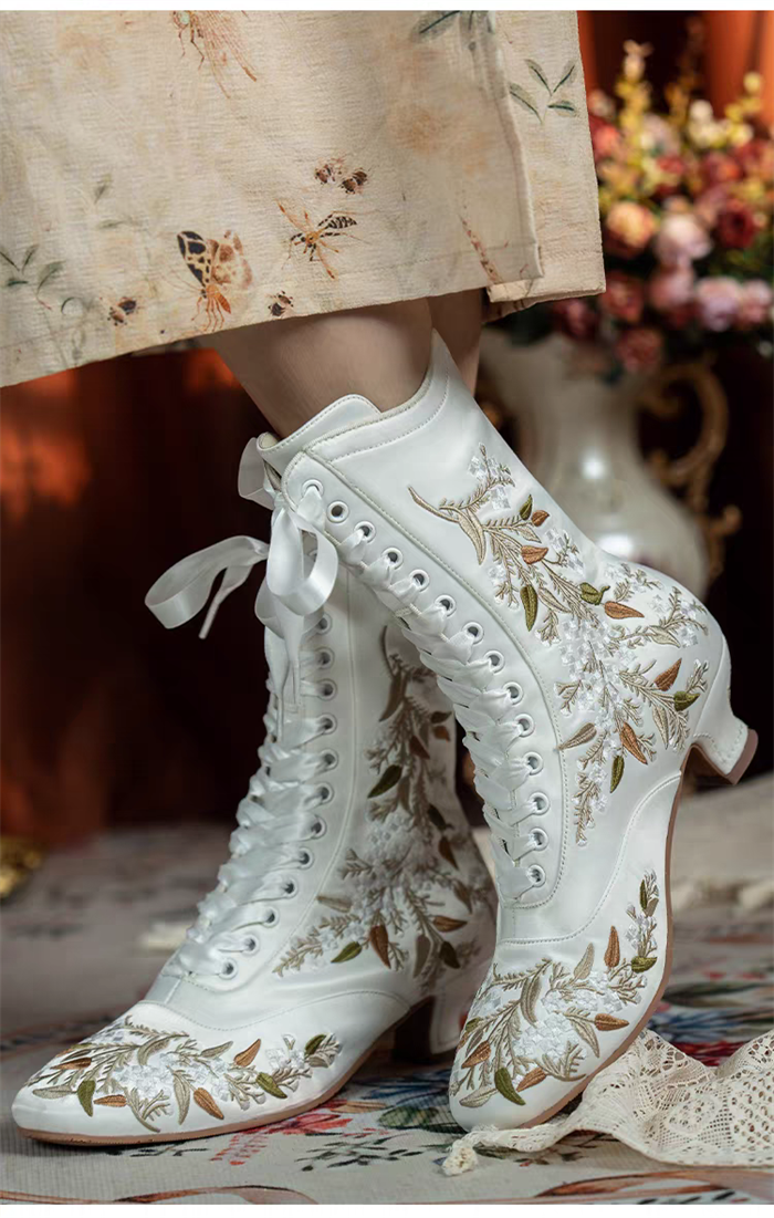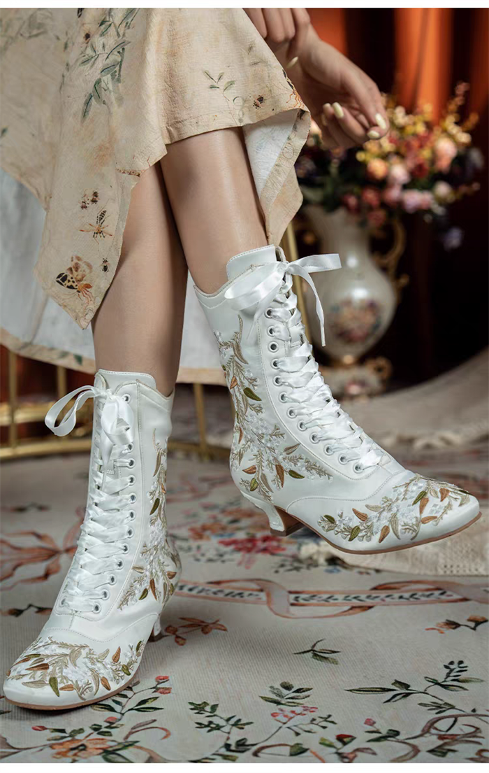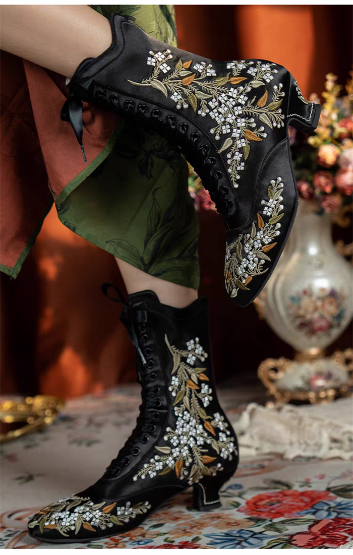 | Product Name | JUST ABOUT COMFORT - Retro Vintage Classic Embroidery Bow Pointed Toe Wine Glass Heels Chunky Leather Lolita Short Boots |