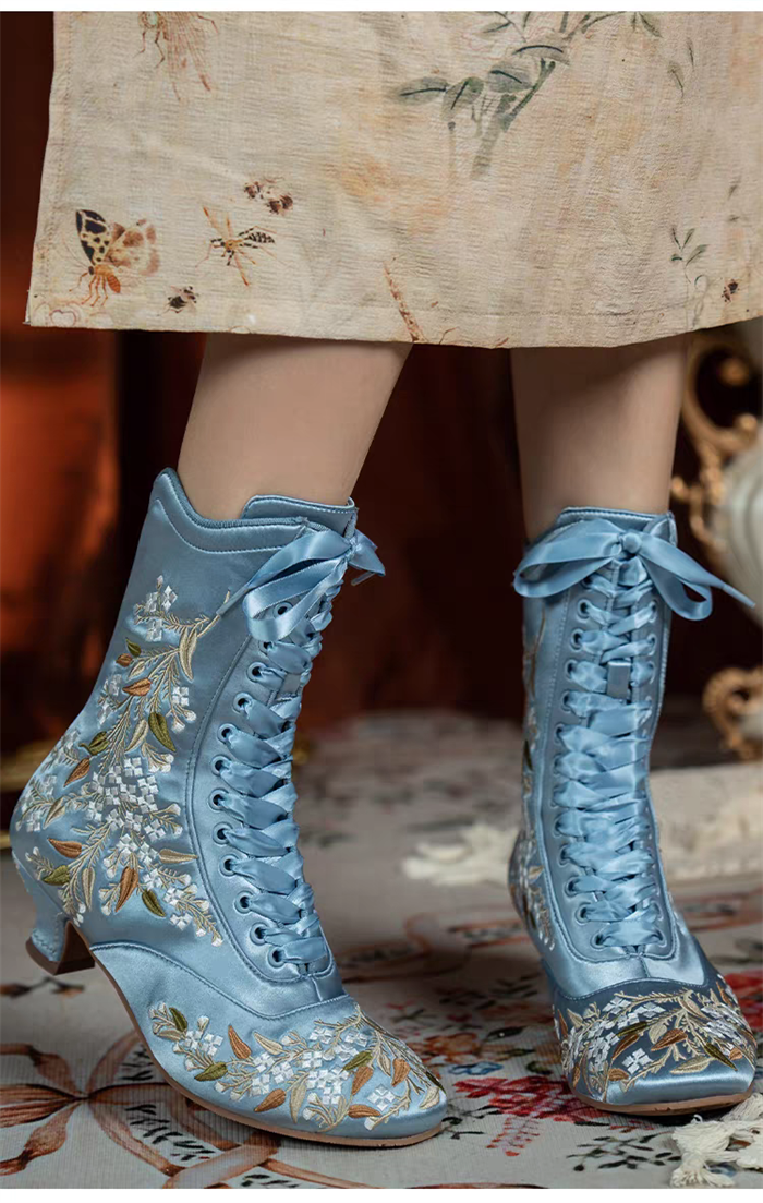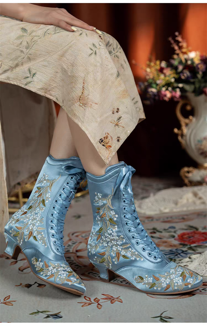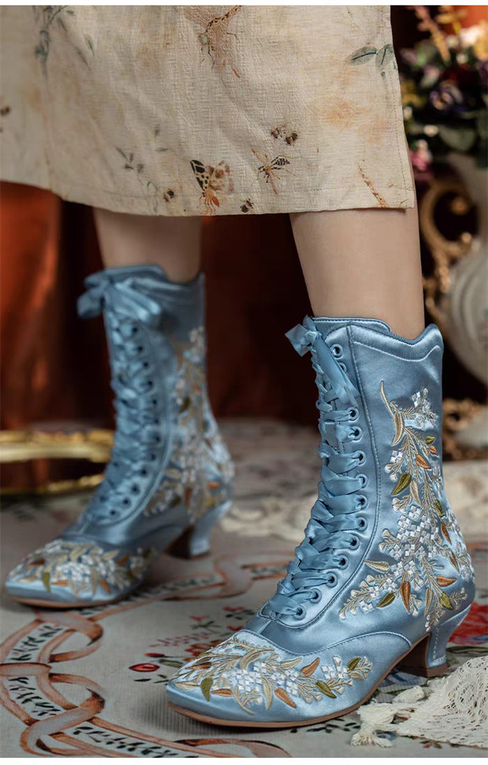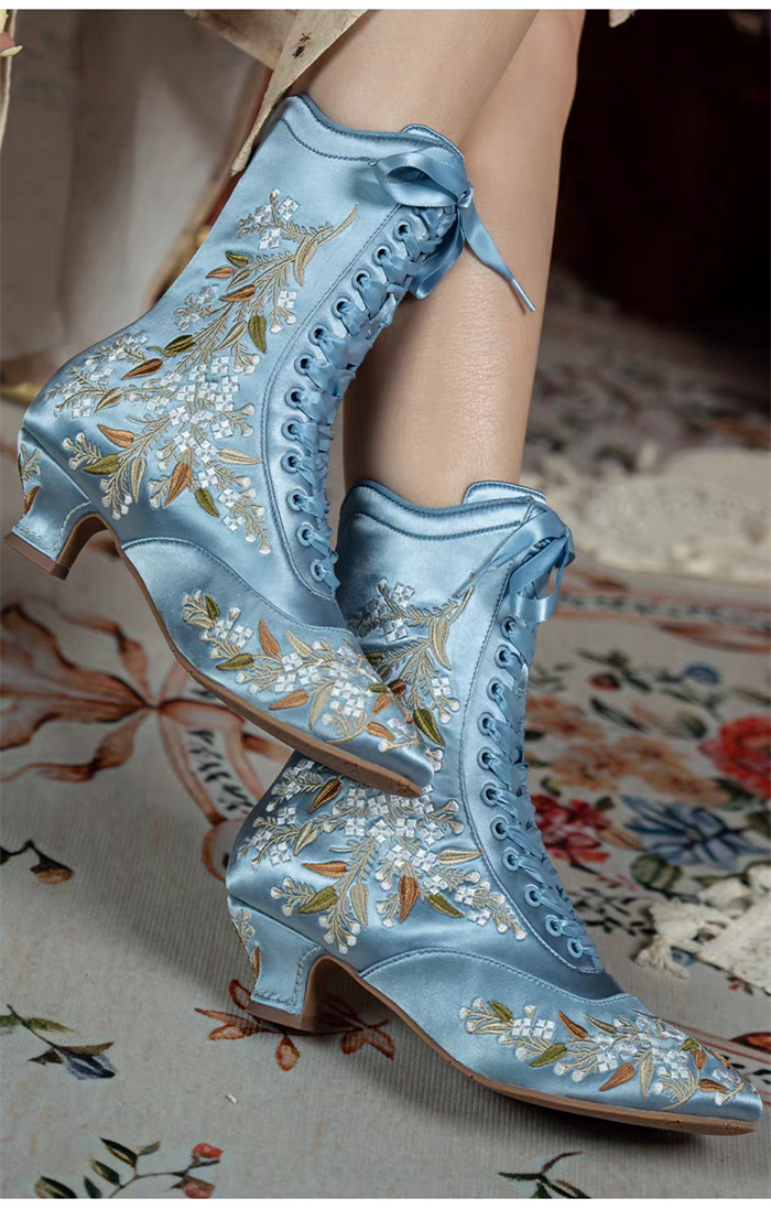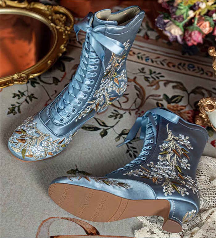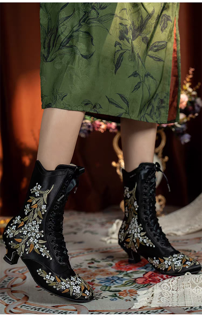 | Product Name | JUST ABOUT COMFORT - Retro Vintage Classic Embroidery Bow Pointed Toe Wine Glass Heels Chunky Leather Lolita Short Boots |