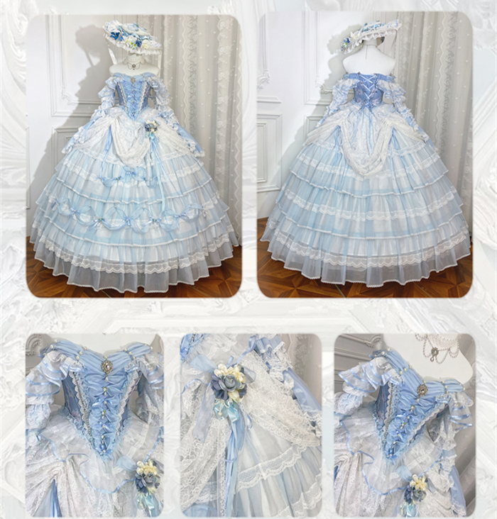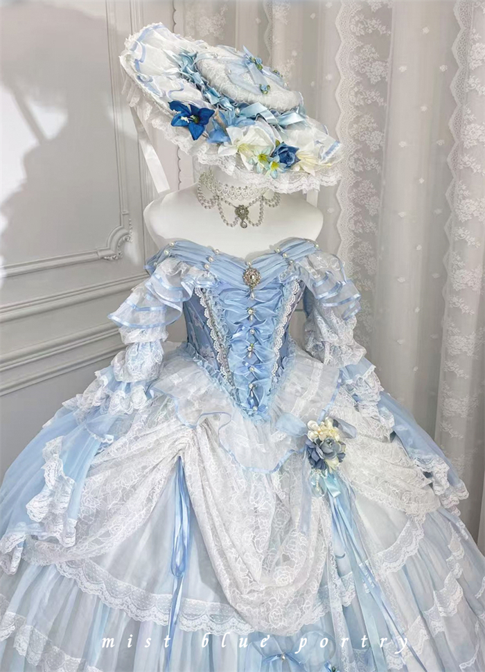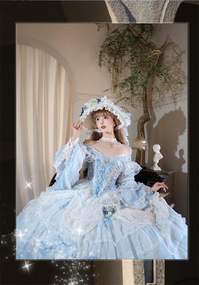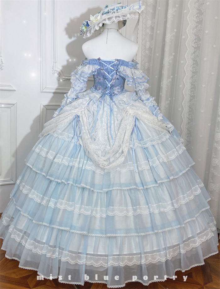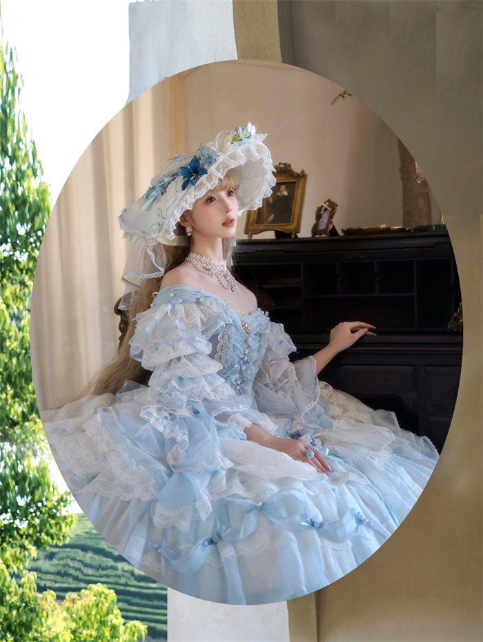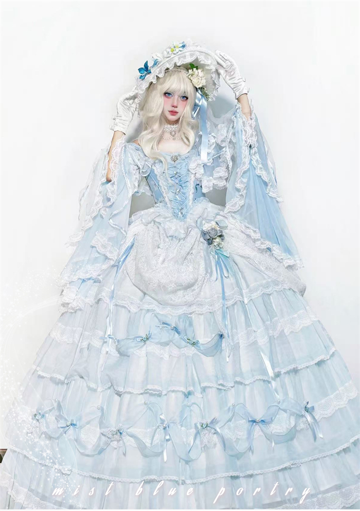 | Product Name | LukeMi - Mist Blue Portry - Elegent Tea Party Princess Rococo Lolita JSK and Accessories |