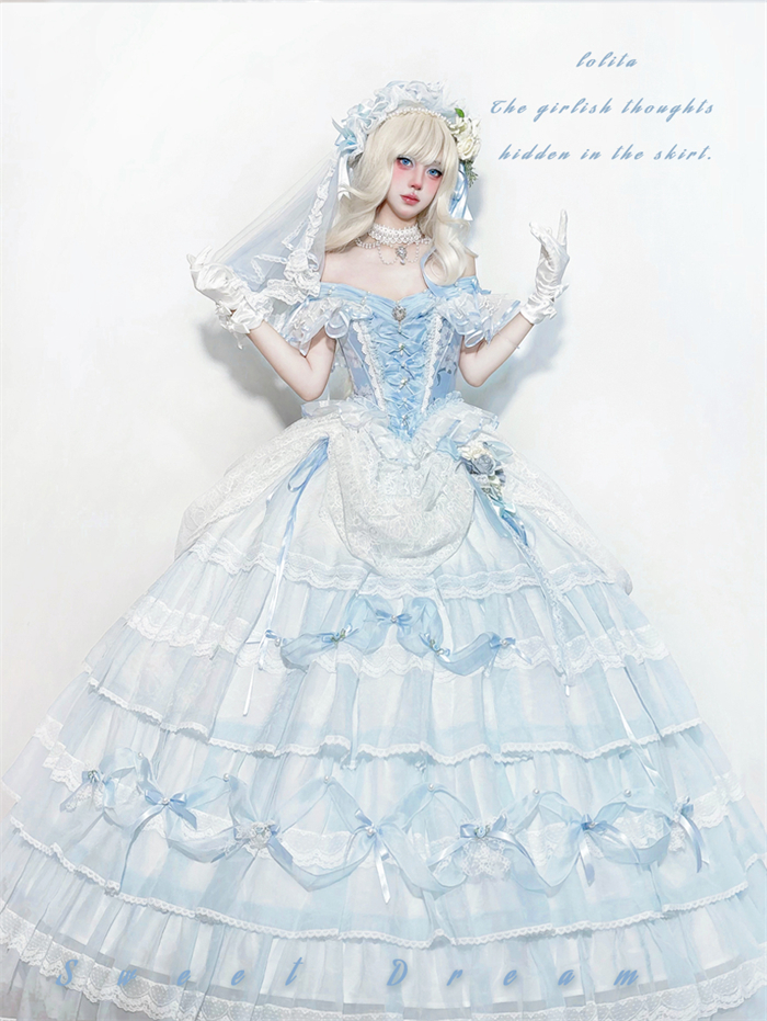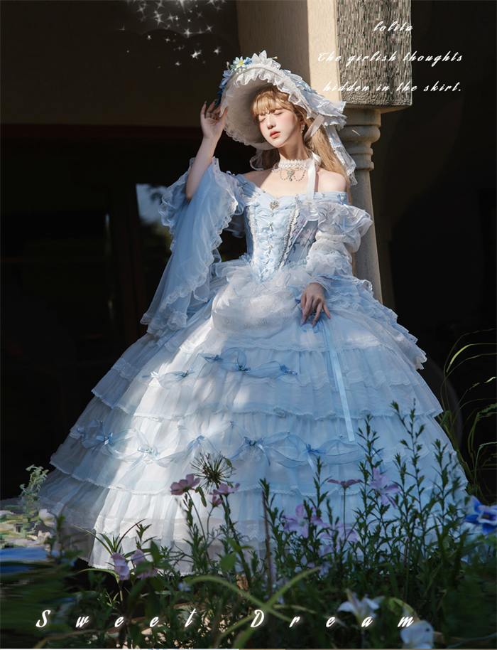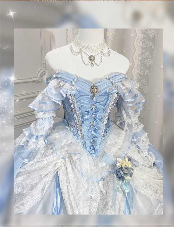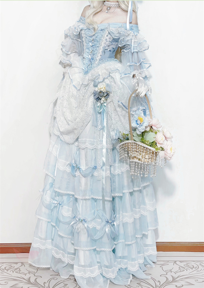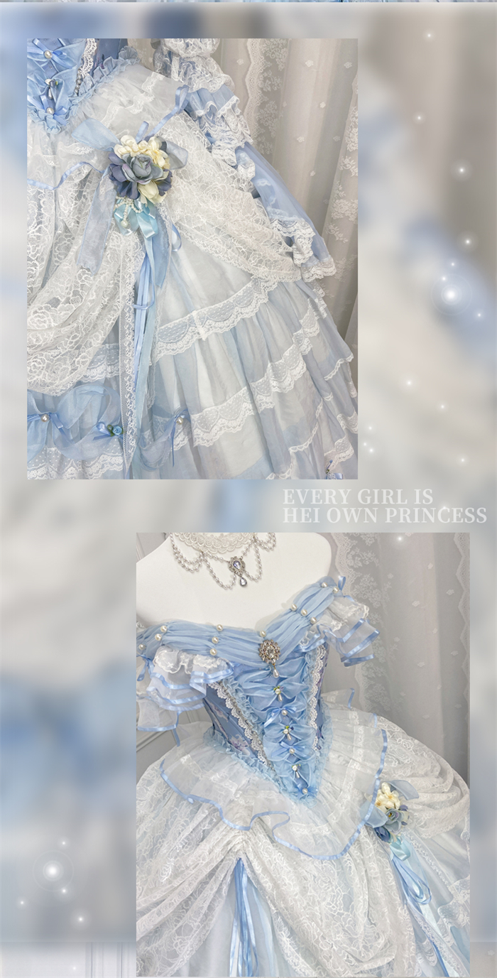 | Product Name | LukeMi - Mist Blue Portry - Elegent Tea Party Princess Rococo Lolita JSK and Accessories |