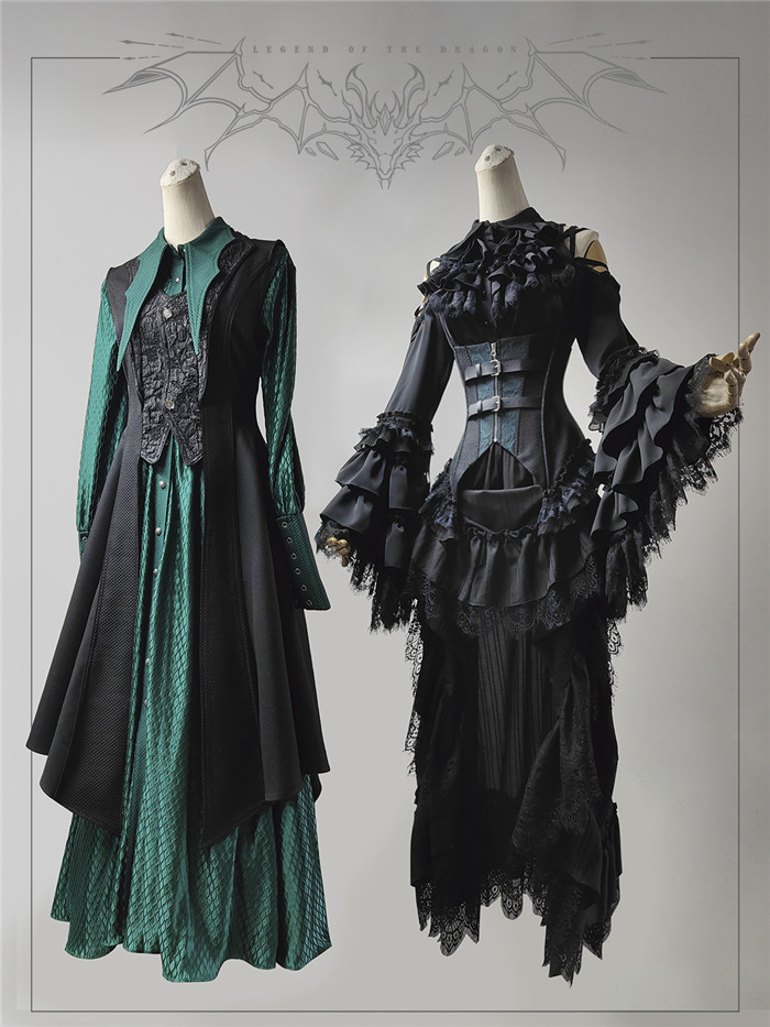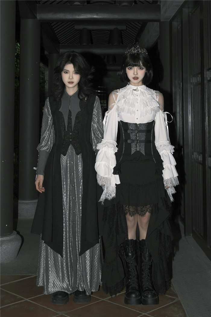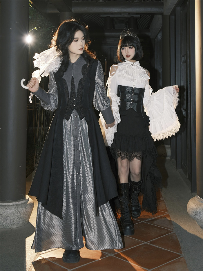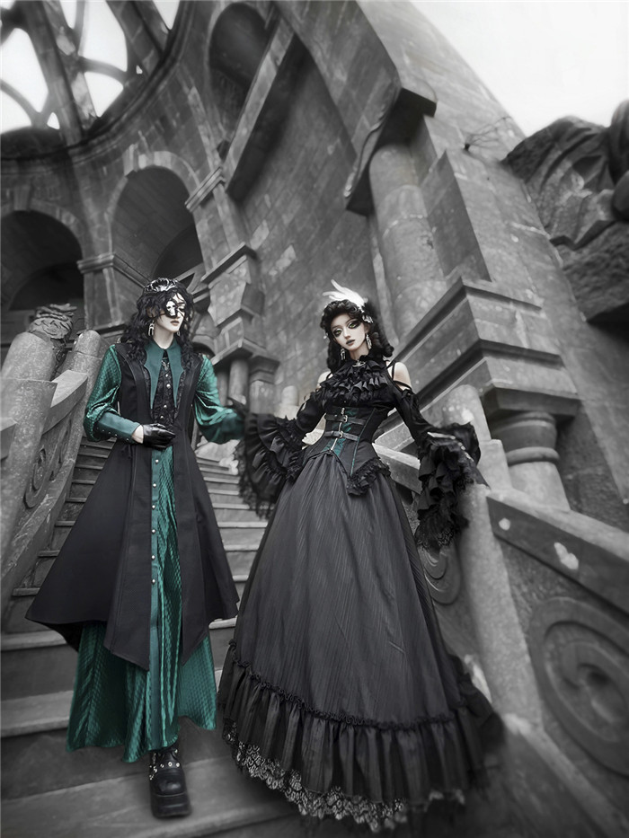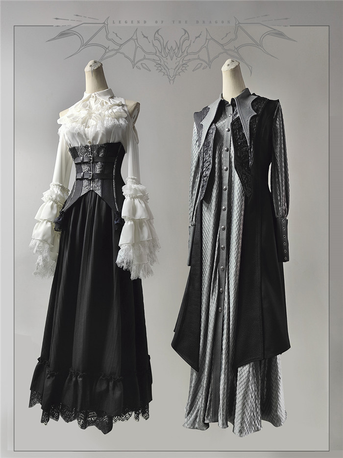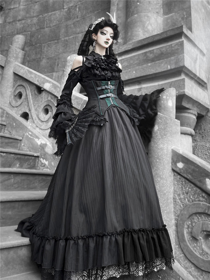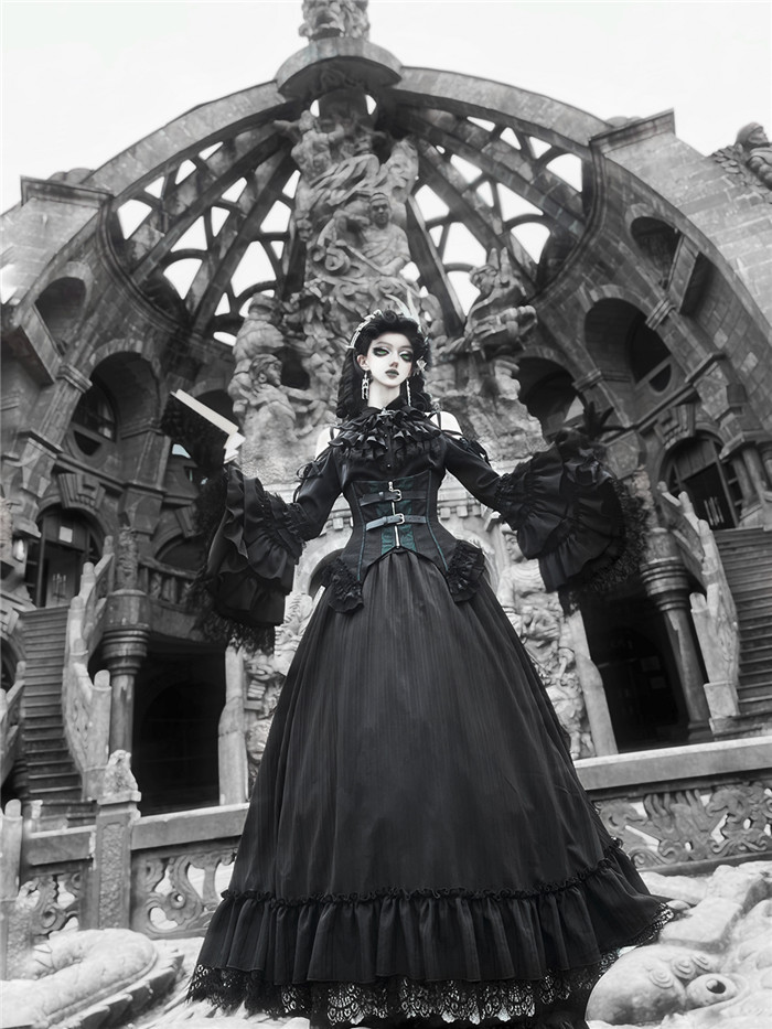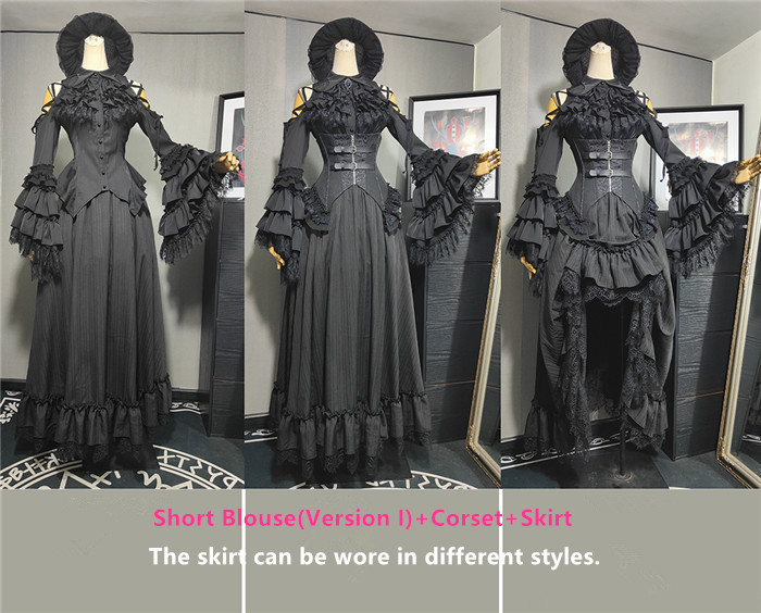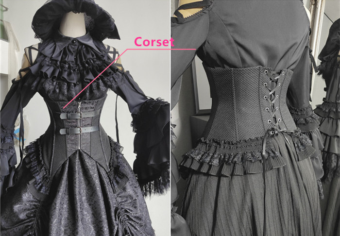 Below Details and Colors of the Gothic Lolita Blouse, Skirt, Corest and Ouji Lolita Set