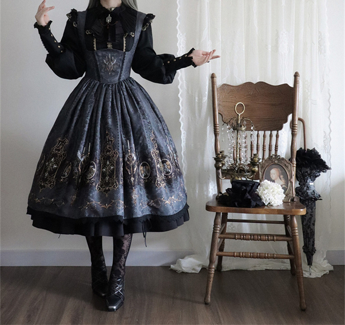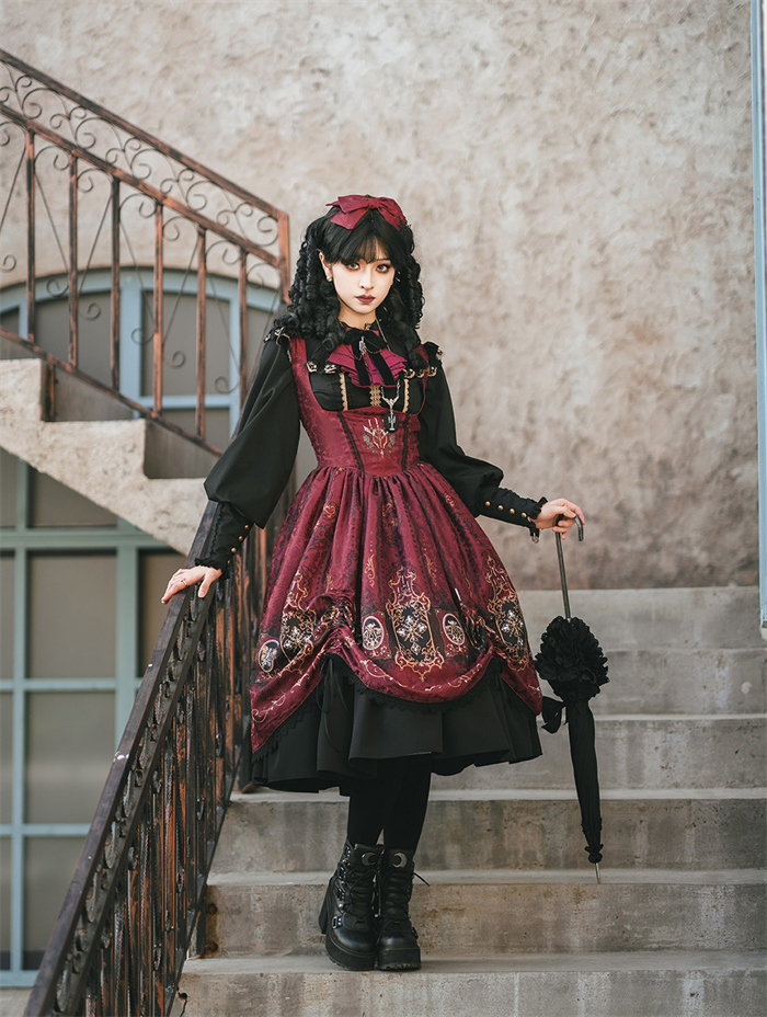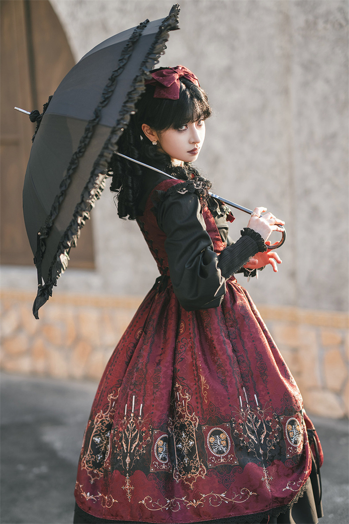 The matched Blouse Version I can be found here >> Miss Cube -Blood Night Lampbearer- Retro Vintage Gothic Classic Lolita Blouse (Version I)