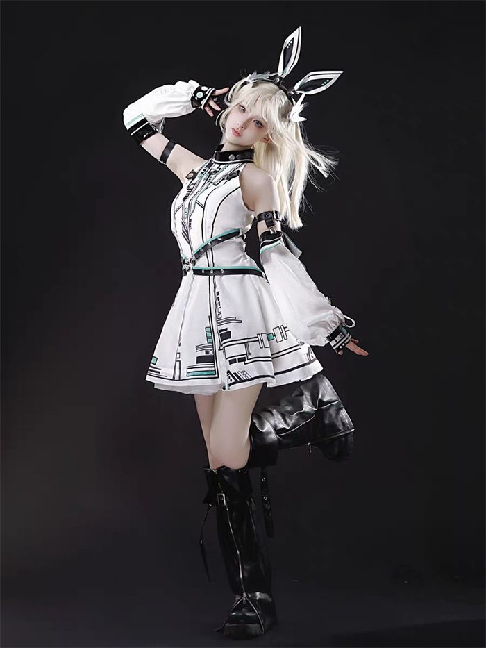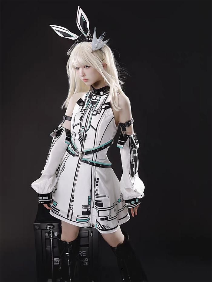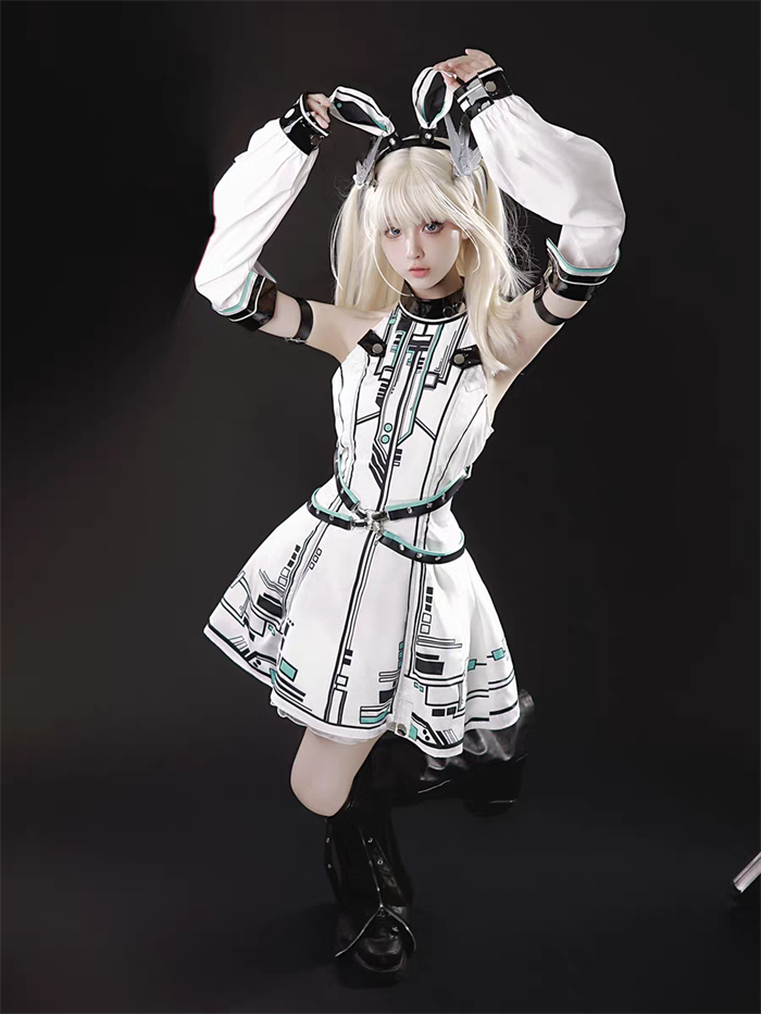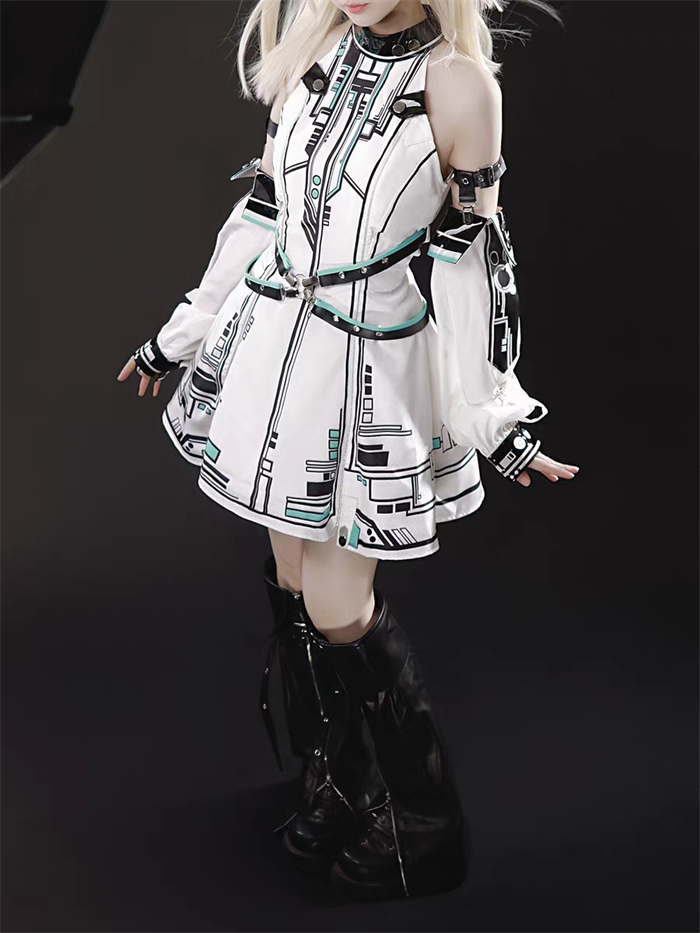 | Product Name | Neverland of the Girl - Mechanical Warrior Princess - Cyber Punk Y3K Punk Lolita JSK, Arm Sleeves and Headwear Set |