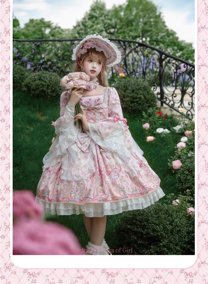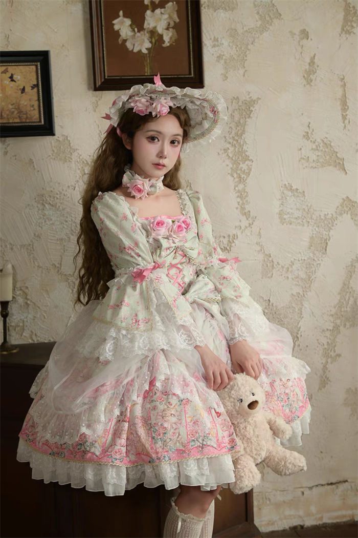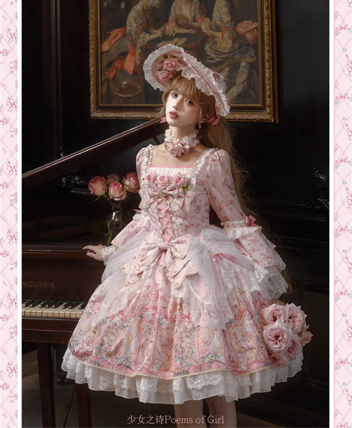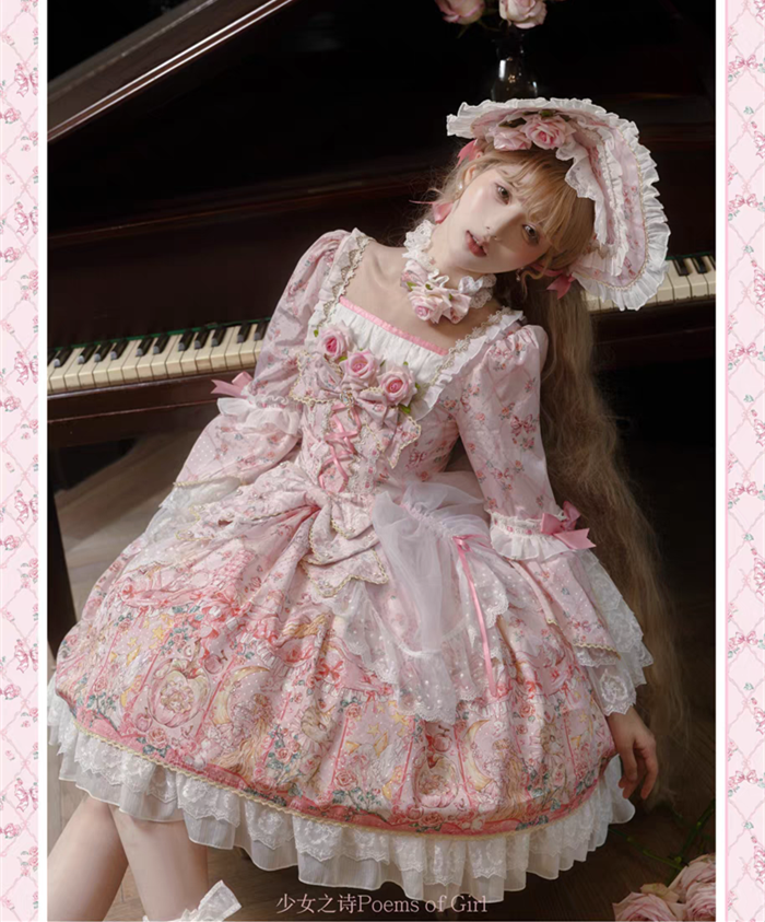 | Product Name | Poems of Girl - The Romanticism of Roses - Long Sleeves Tea Party Princess Classic Rococo Lolita OP Dress and Accessories |