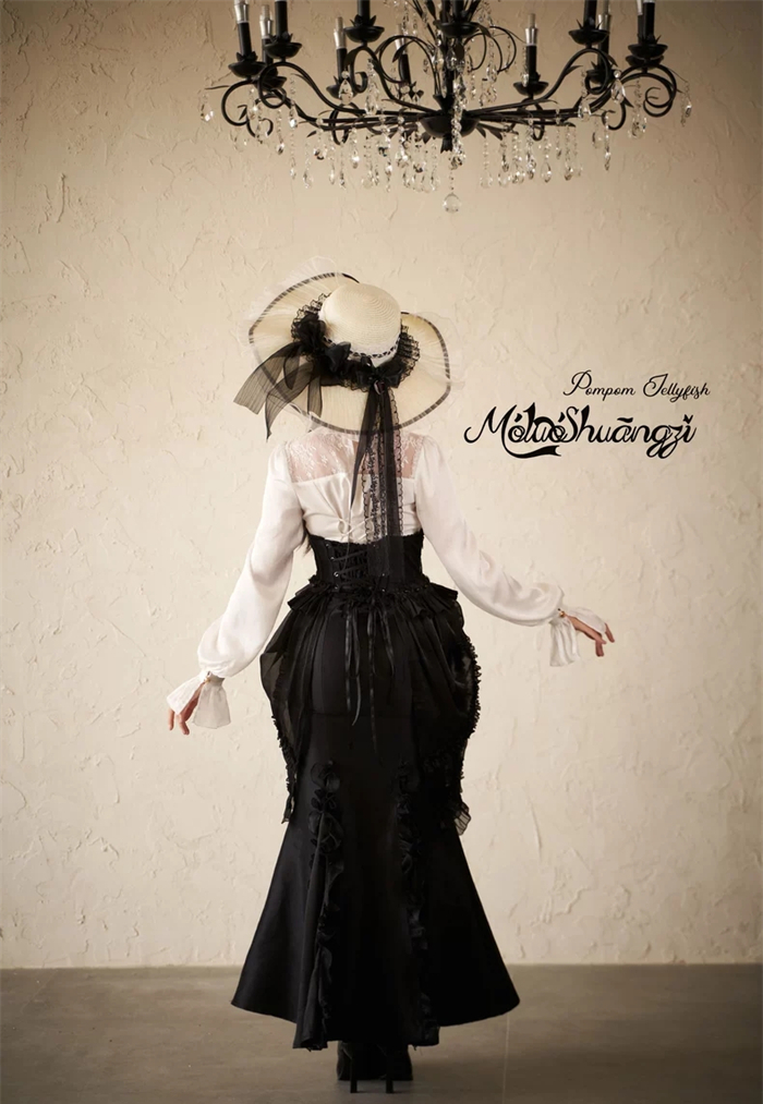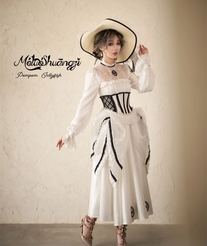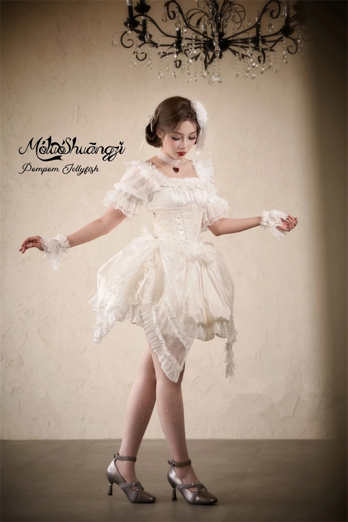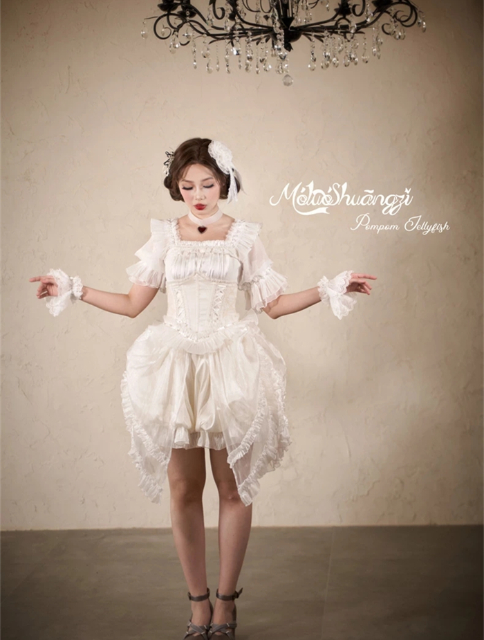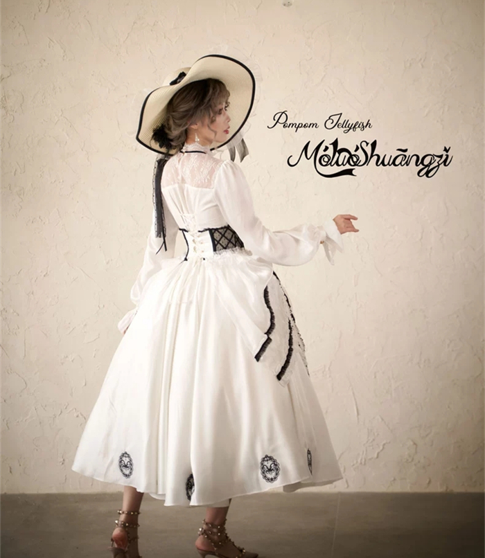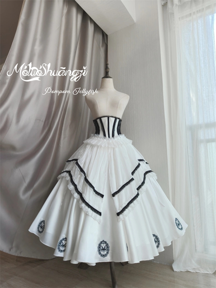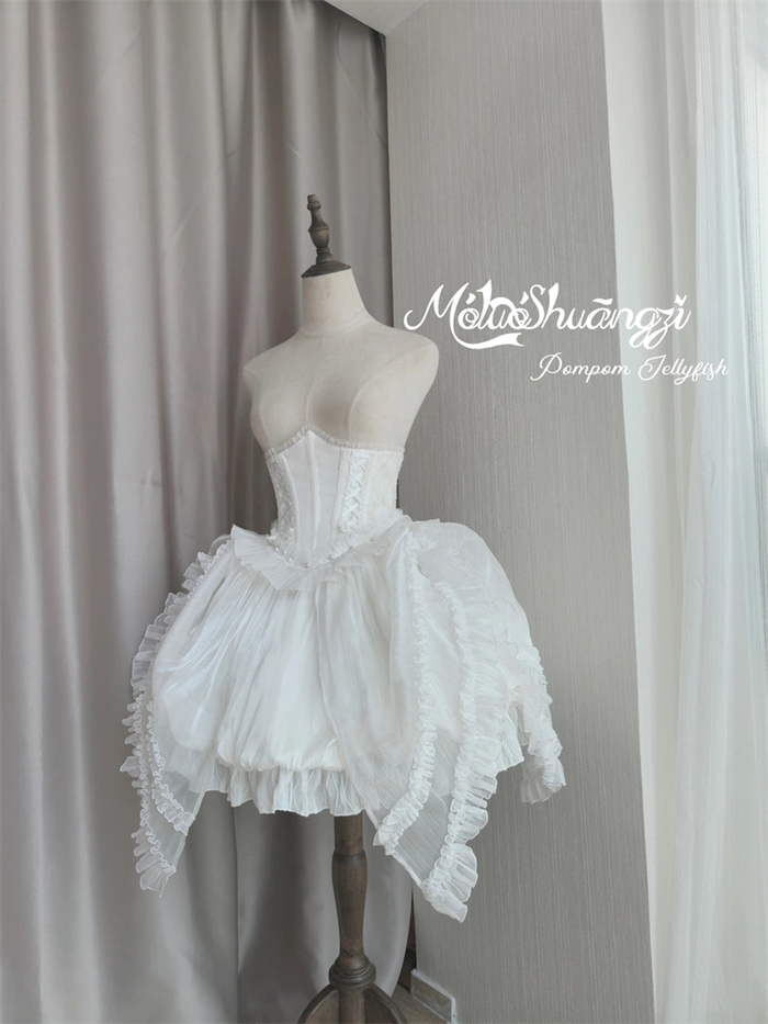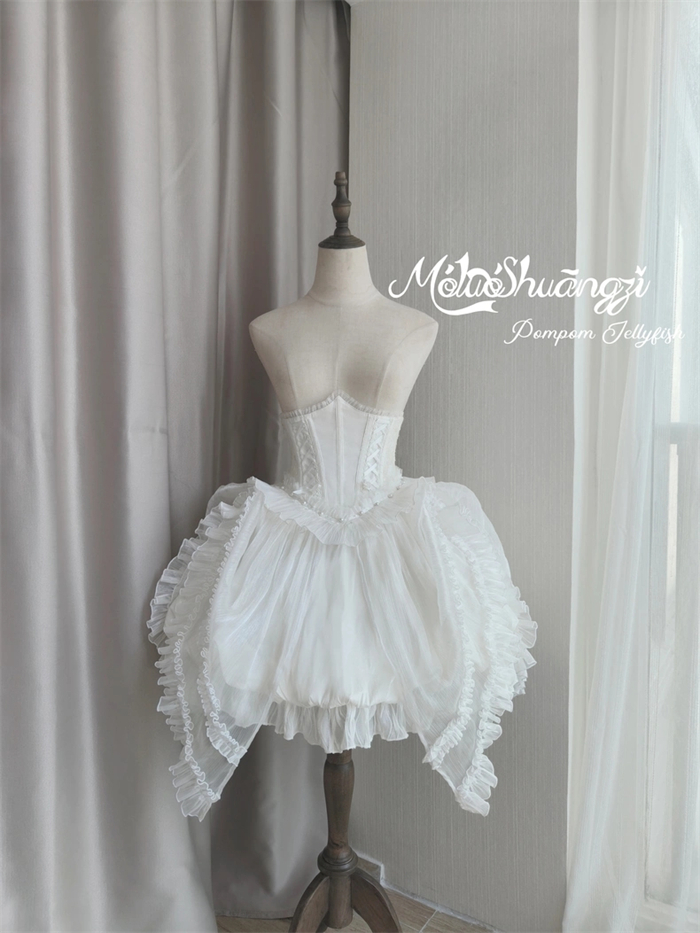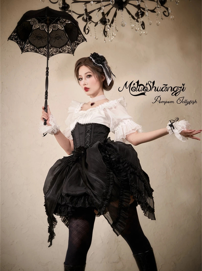 The matched Overskirt and Corset with Overskirt can be found here >> Pompom Jellyfish - Vintage Elegant Classic Lolita Overskirt and Corset with Overskirt