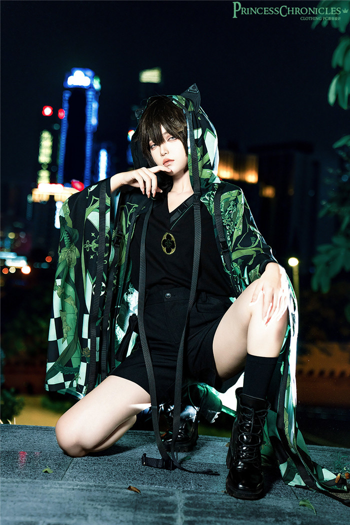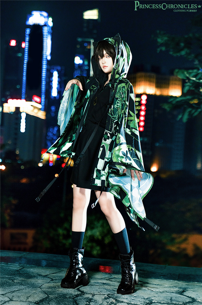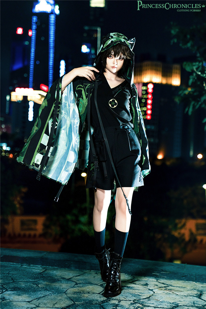 | Product Name | Princess Chronicles -Dark Night Order 2.0- Ouji Boystyle Cyberpunk T Shirt, Shorts and Hoodied Cape Jacket Set |