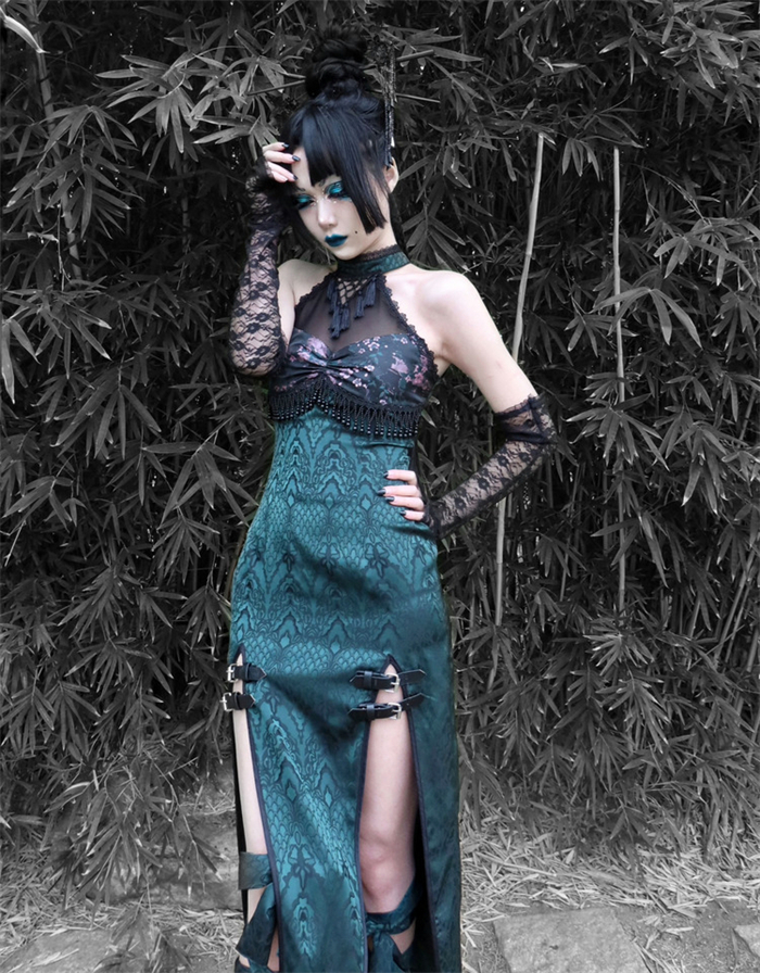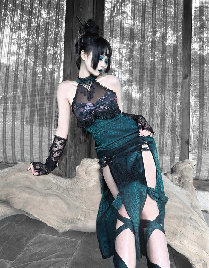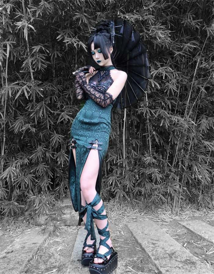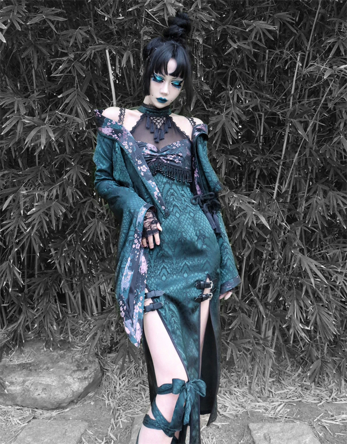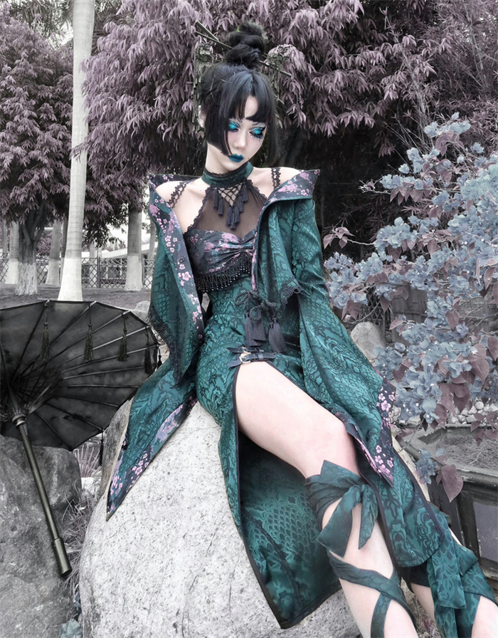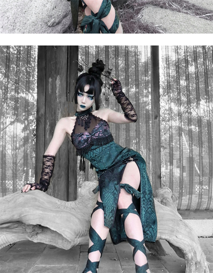 | Product Name | Sex and The Snake- Alt Street Punk Halloween Sexy Cheongsam Split Dress and Bolero |