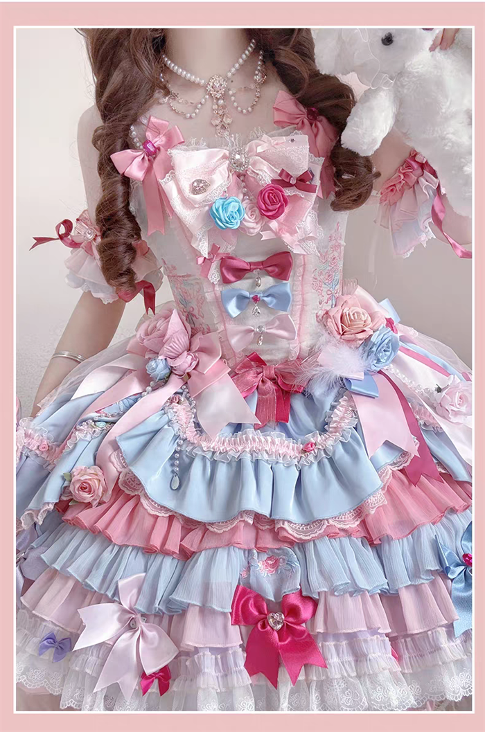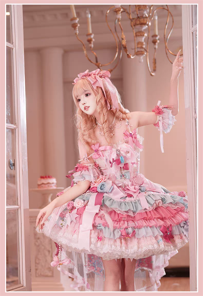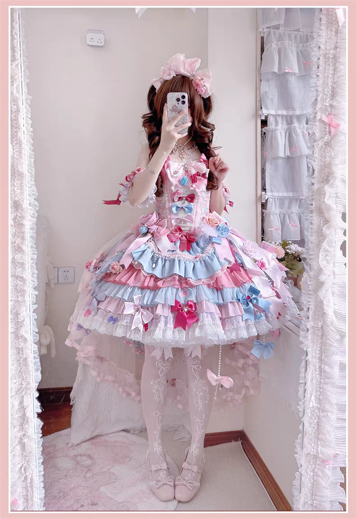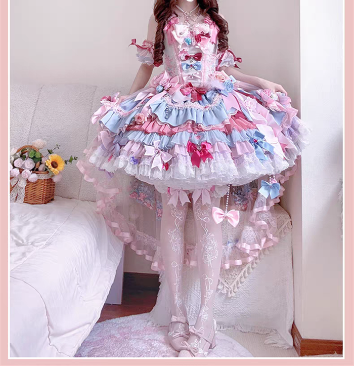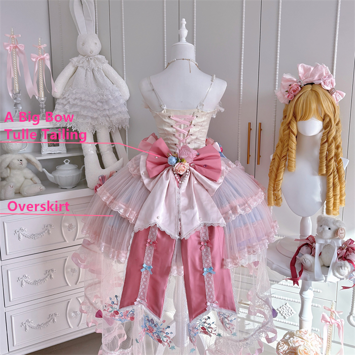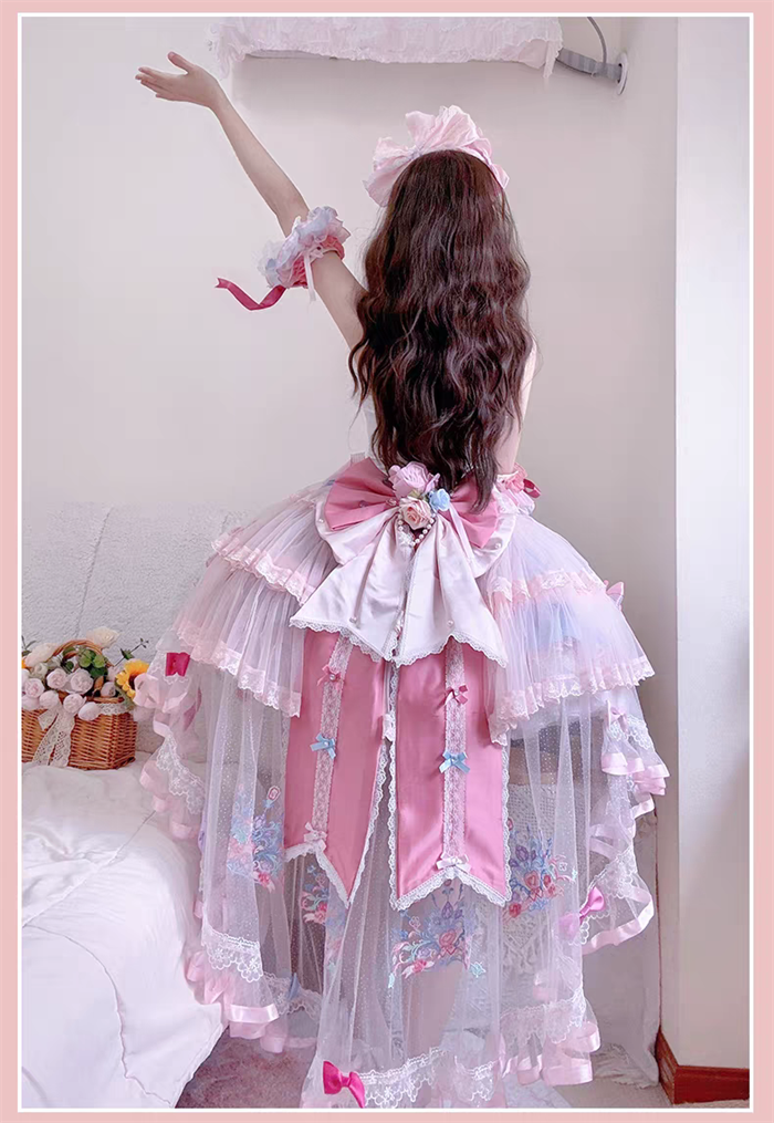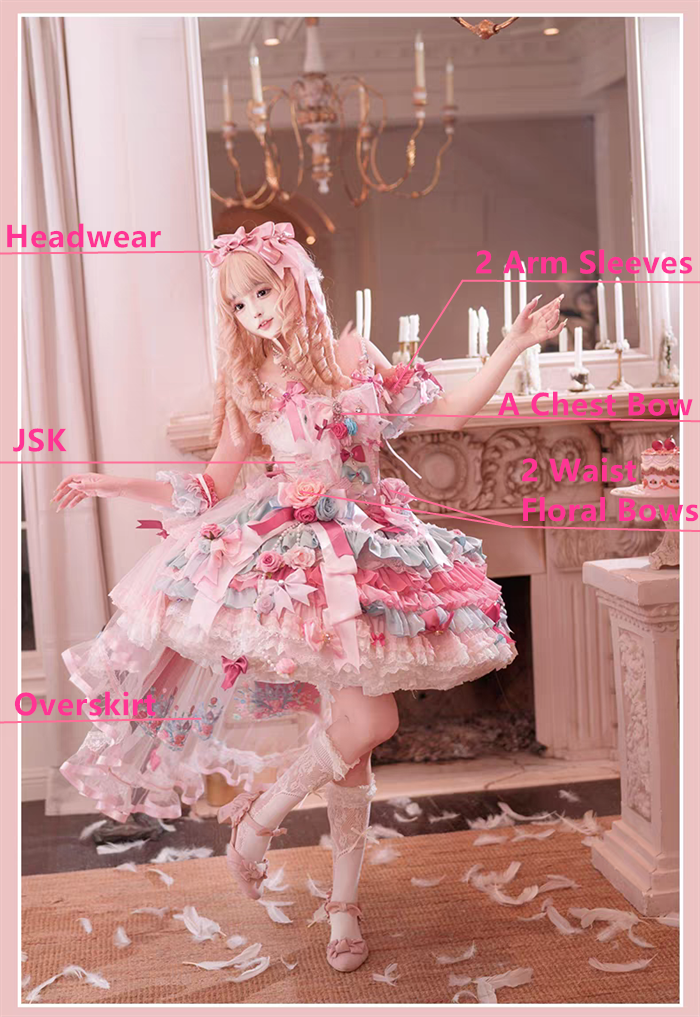 JSK Set=JSK+2 Arm Sleeves+A Chest Bow+2 Waist Floral Bows+A Big Bow Tulle Tailing
