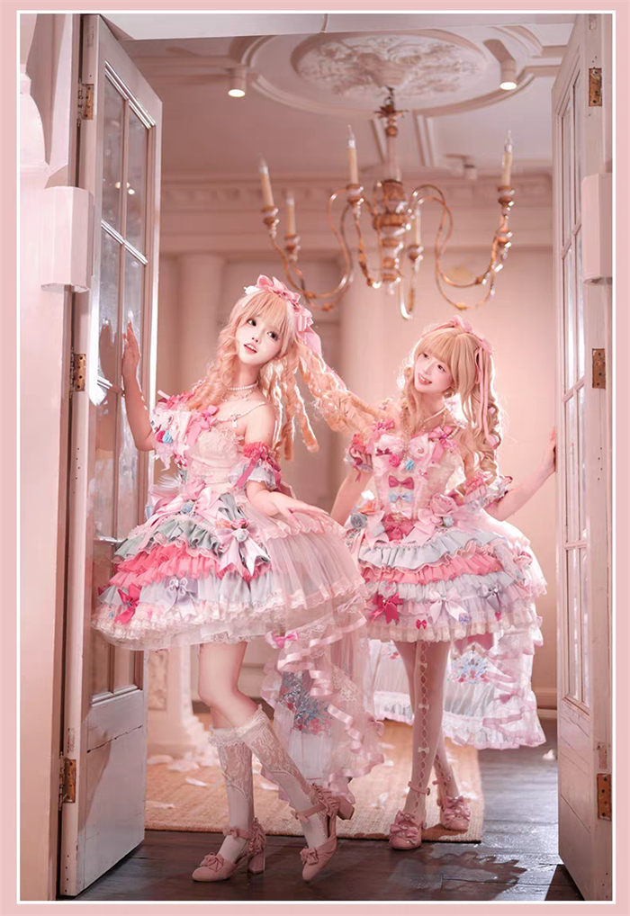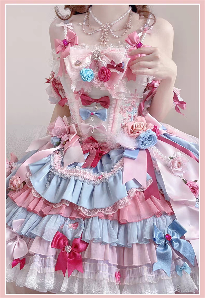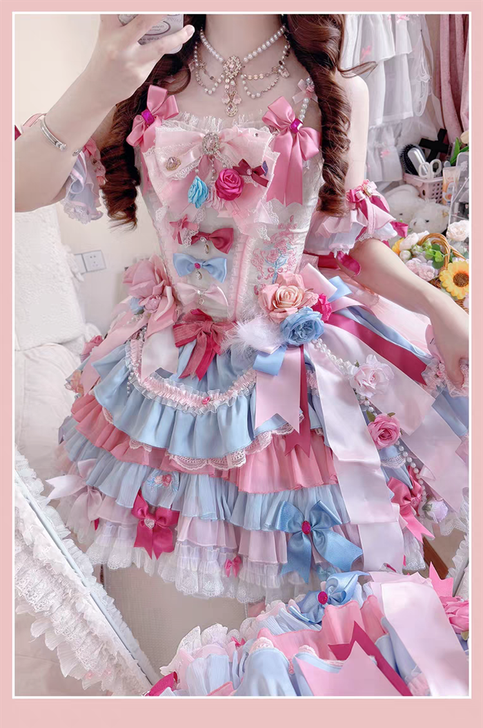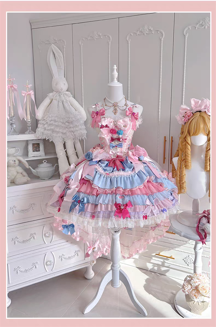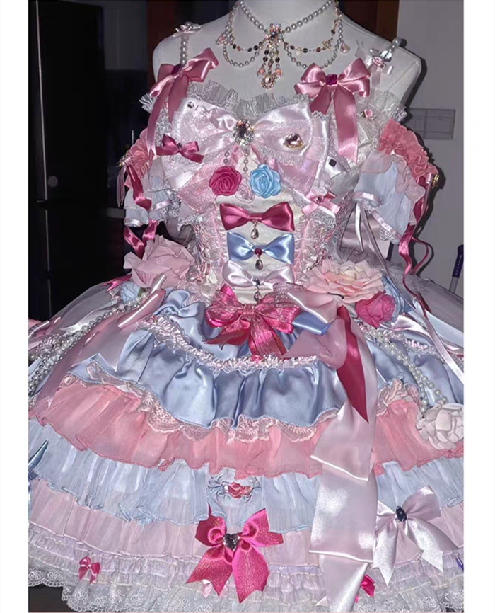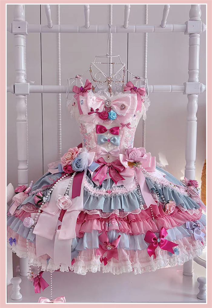 JSK Set=JSK+2 Arm Sleeves+A Chest Bow+2 Waist Floral Bows+A Big Bow Tulle Tailing
