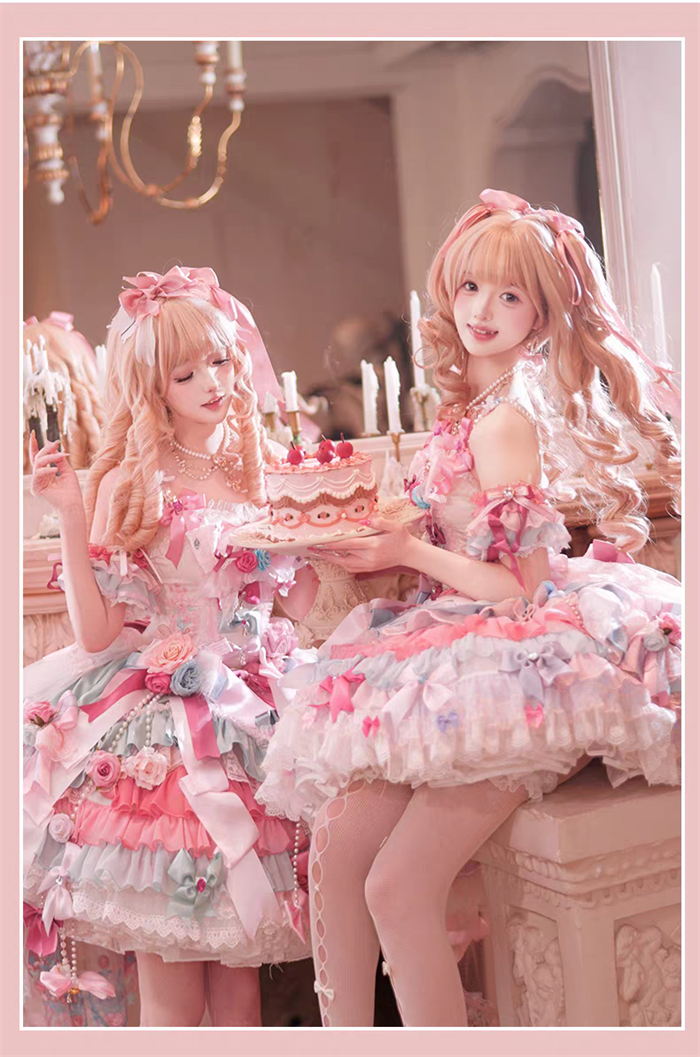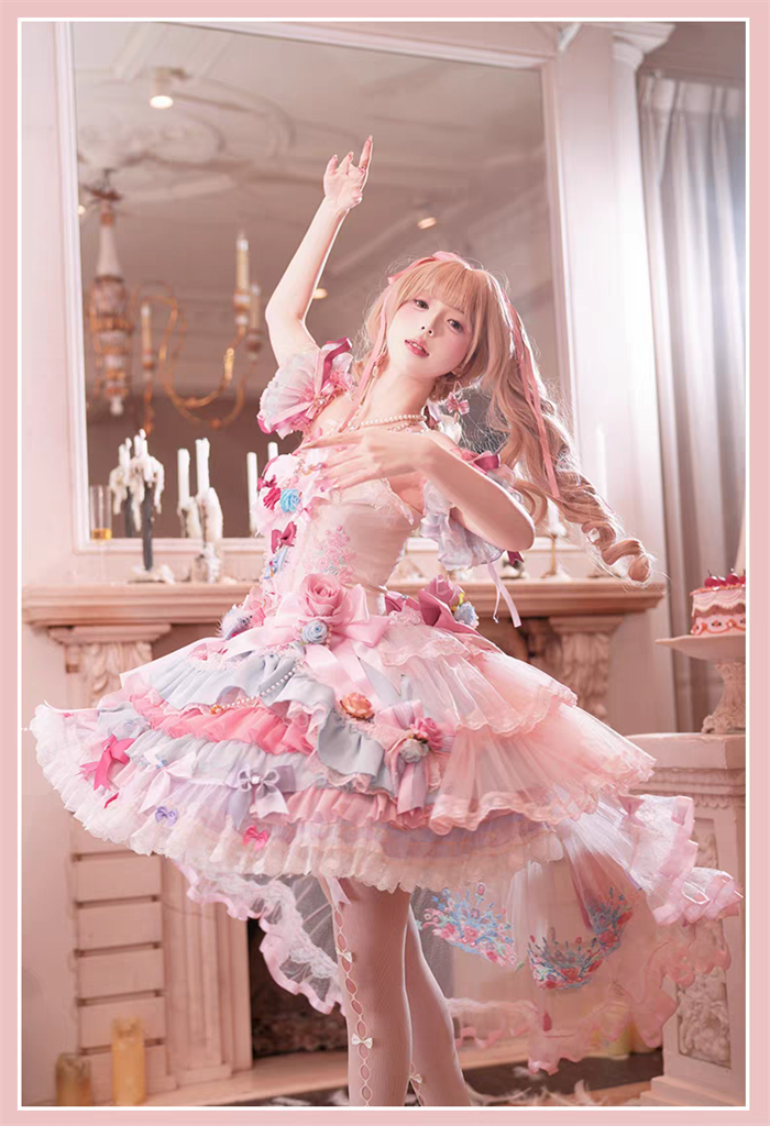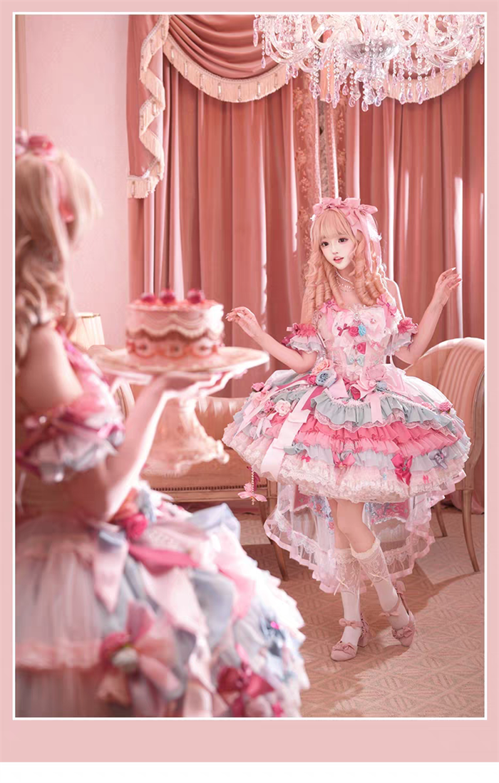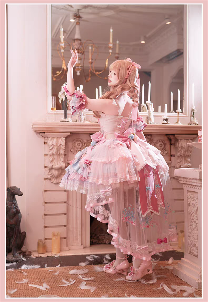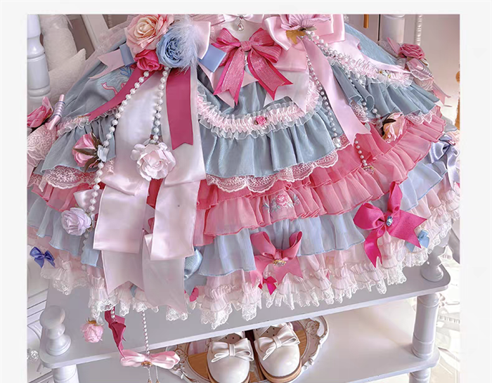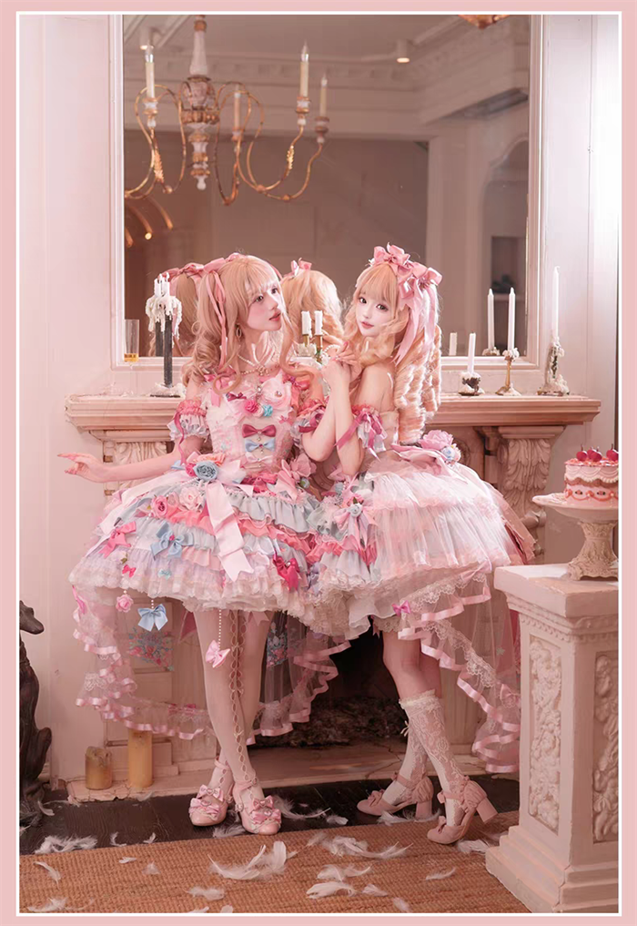 JSK Set=JSK+2 Arm Sleeves+A Chest Bow+2 Waist Floral Bows+A Big Bow Tulle Tailing
