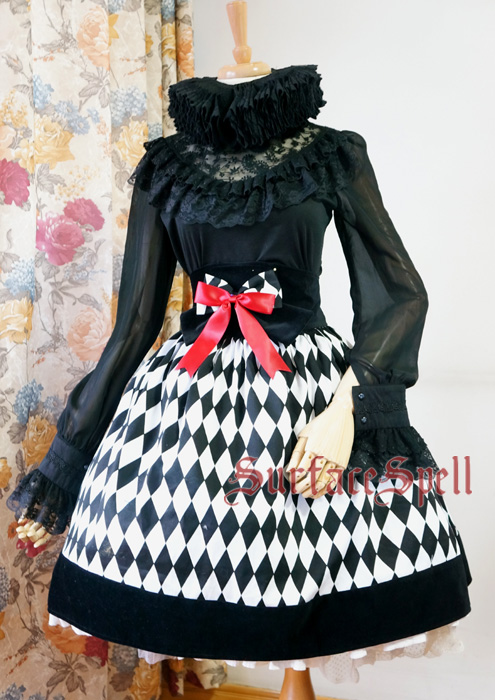 | Product Name | Surface Spell -Virtual Joker- Black and White Argyle High Waist Fishbones Gothic Lolita Skirt |