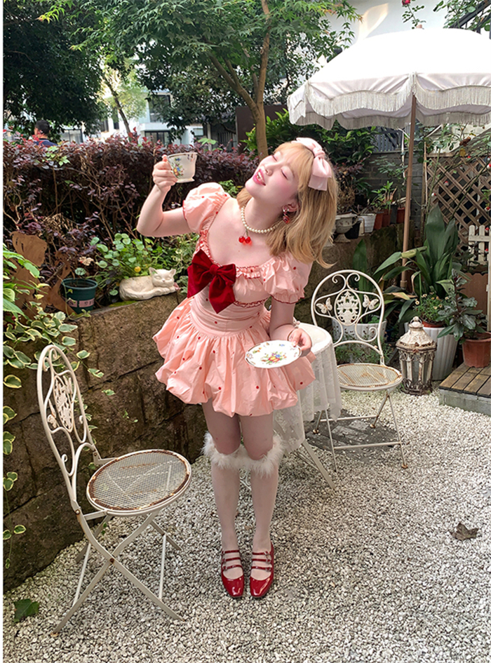 | Product Name | Sweet Kawaii Casual Lolita Pink Embroidery Short Sleeves Dress |