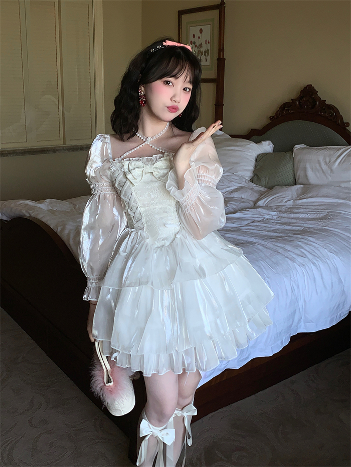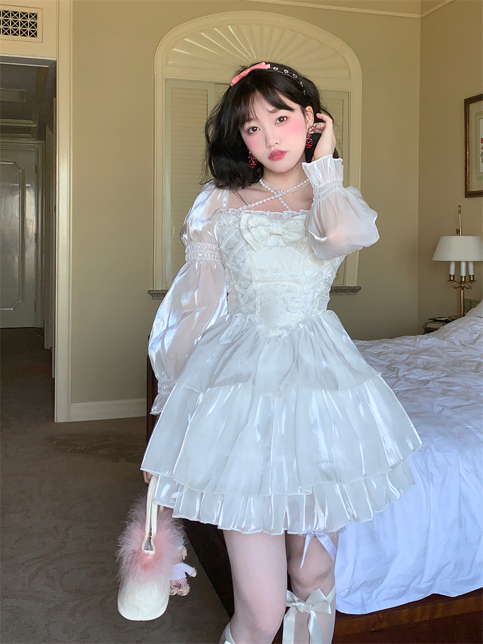 | Product Name | Sweet Kawaii Casual Lolita White Lace Long Sleeves Dress |