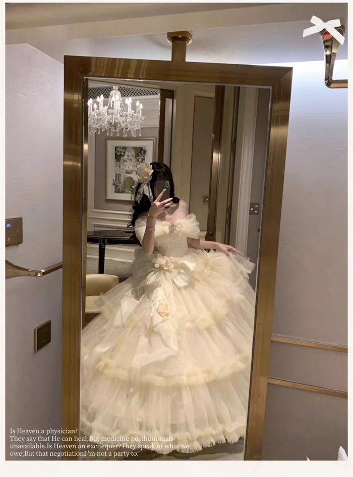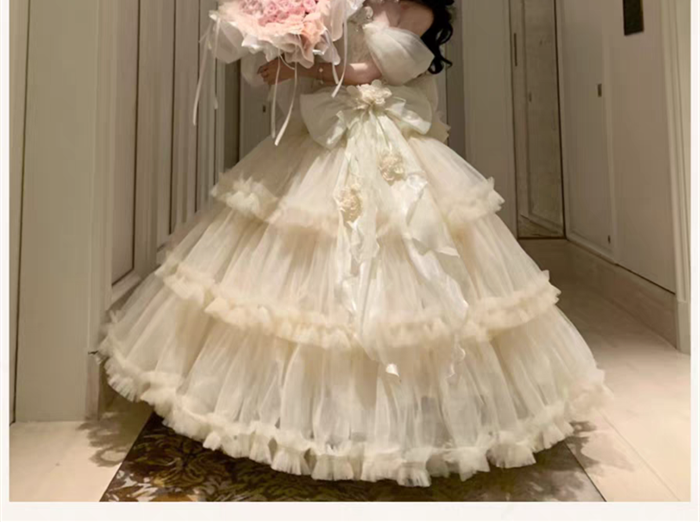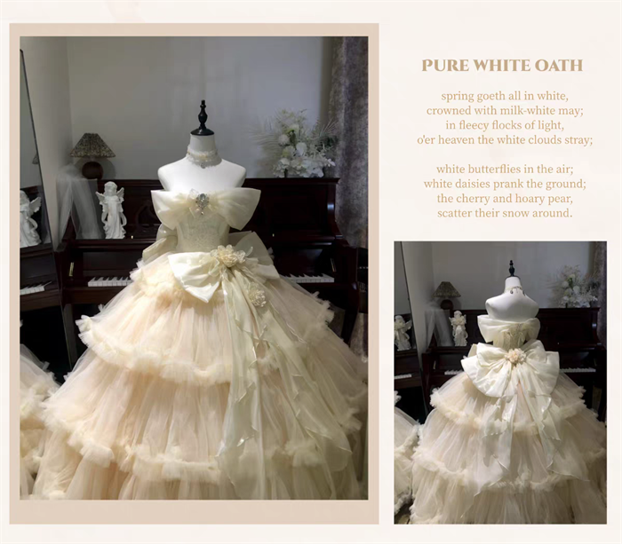 | Product Name | Sweet Peach and White Tea - Pure White Oath - Dreamy Elegant Romantic Princess Wedding Rococo Lolita JSK and Accessories |