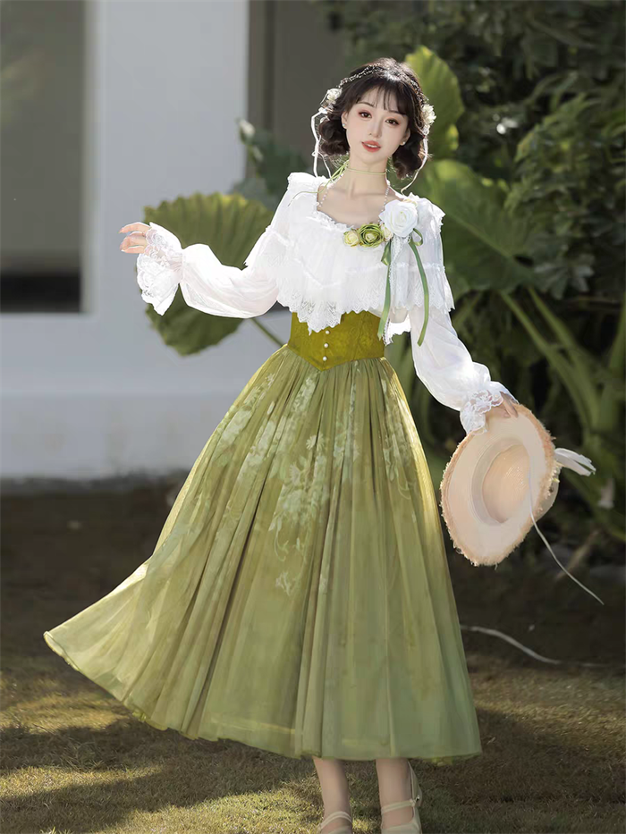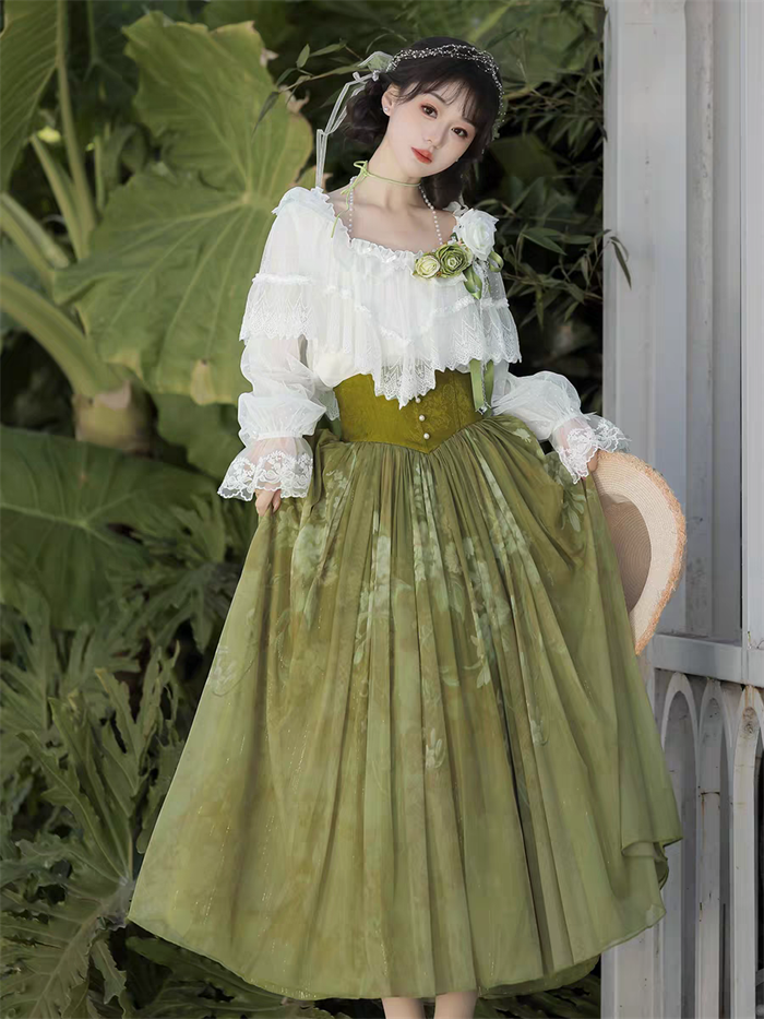 | Product Name | Sweet Promise - Sweet Palace Style Neo Chinese Style Casual Daily Classic Lolita Blouse and Corset Skirt Set |