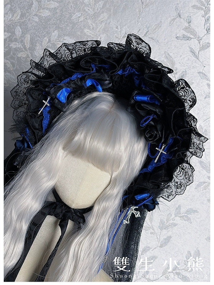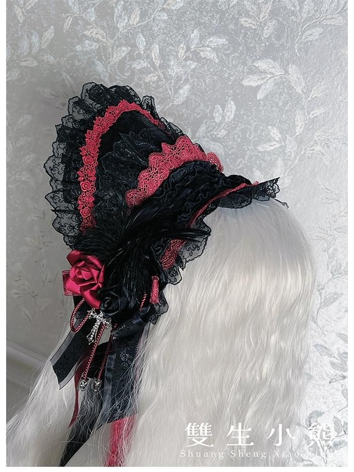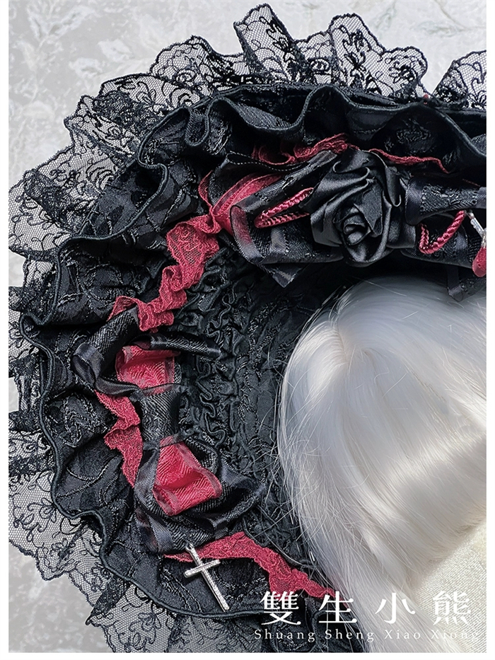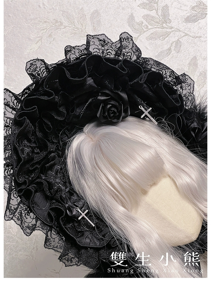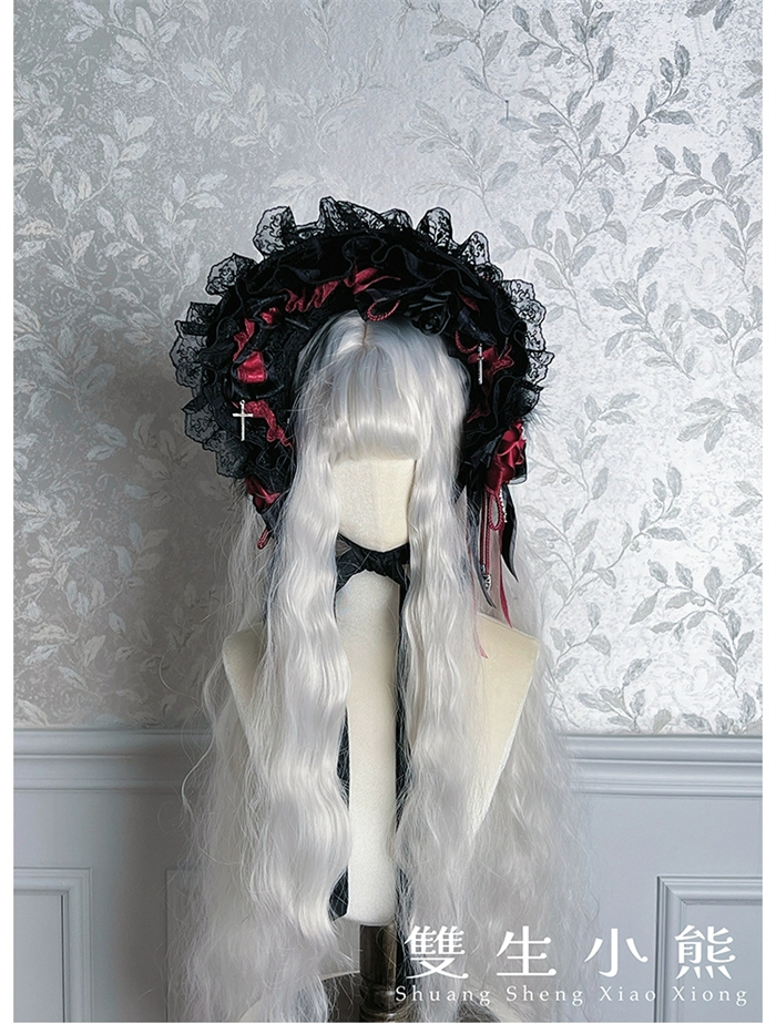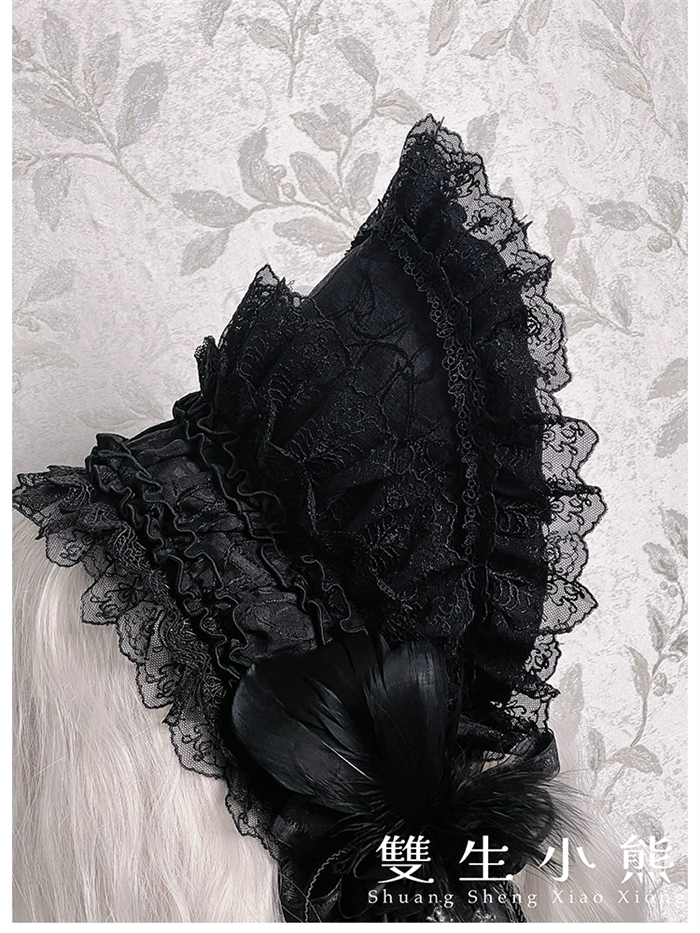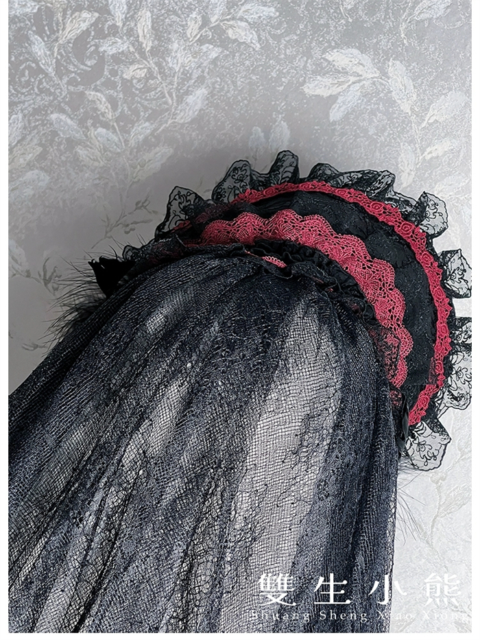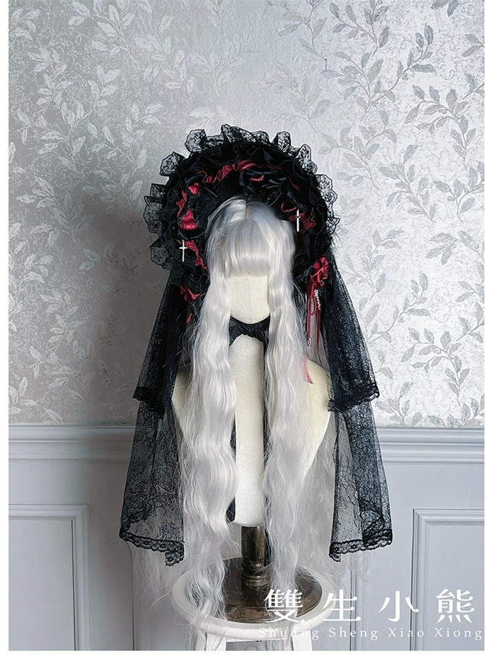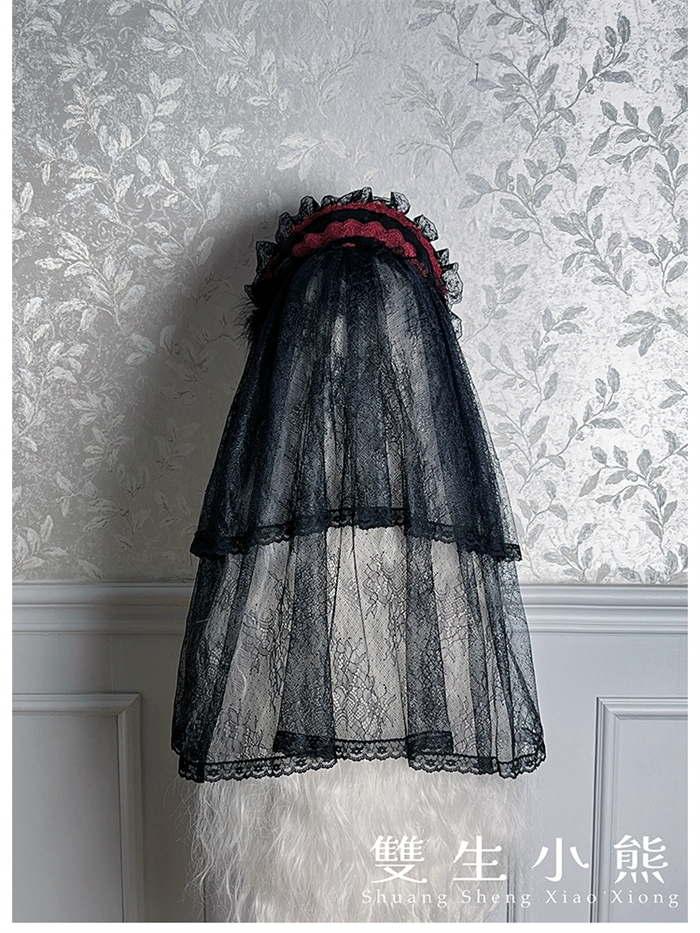 | Product Name | Twins Bear - The Misty Feast - Gothic Lolita Bonnet with Veil and Neck Tie |