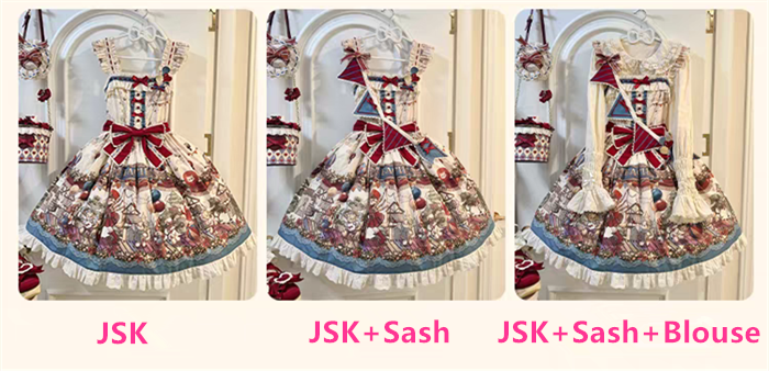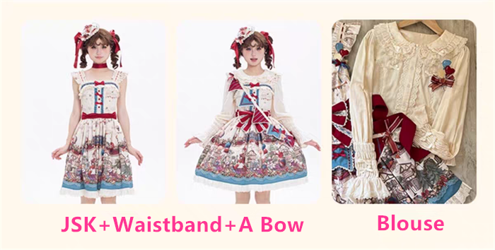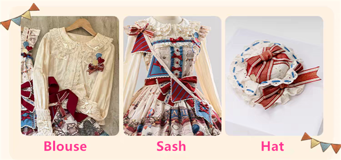 Below are the JSK, Blouse, Sash and Hat you will get when you purchase