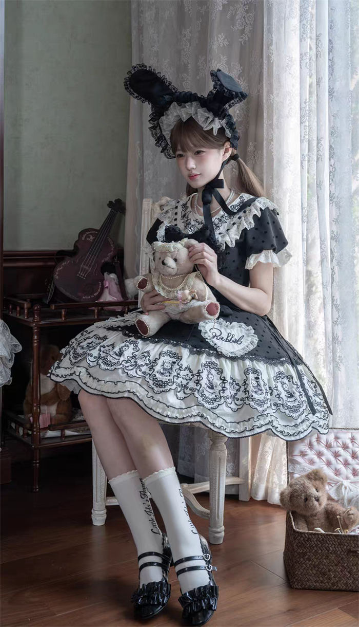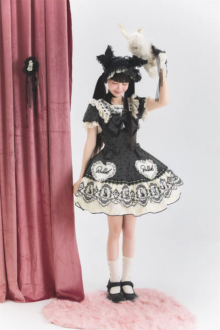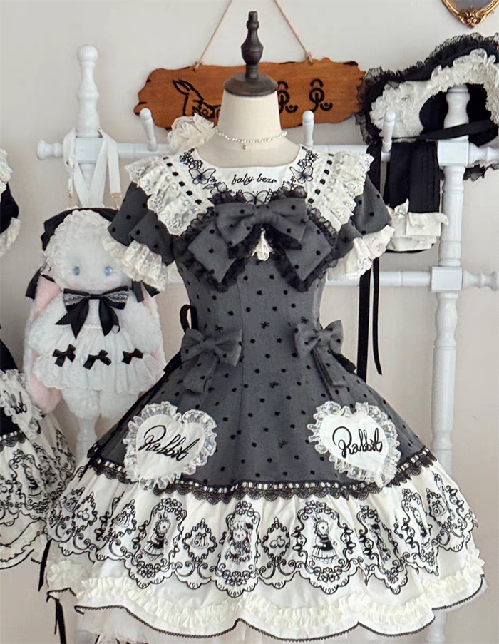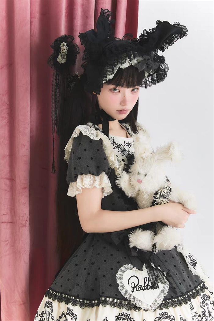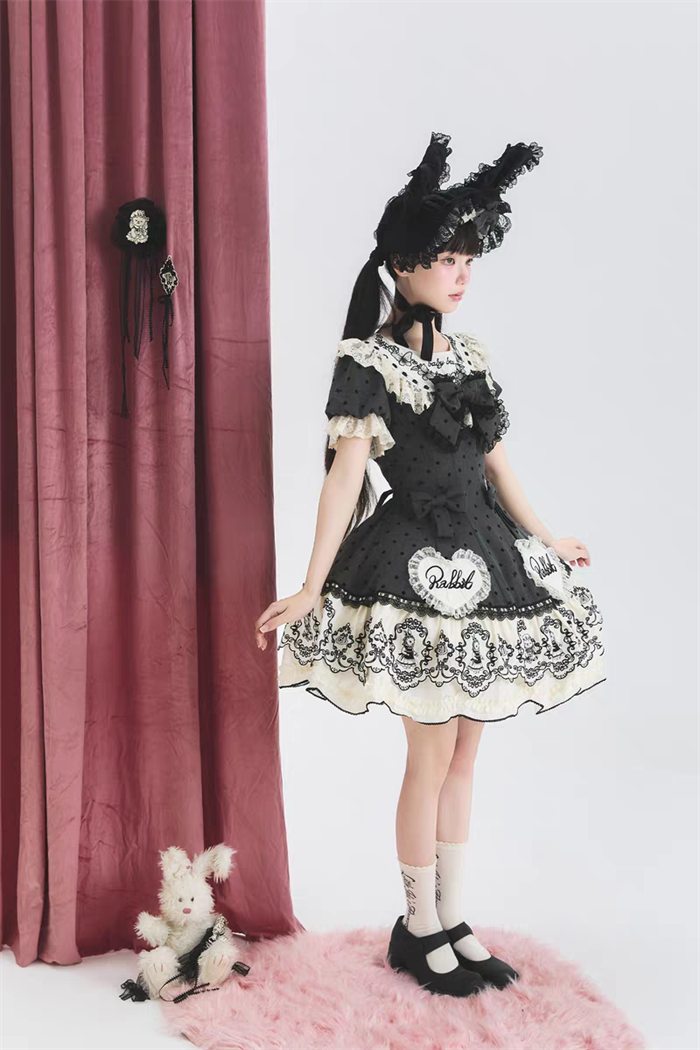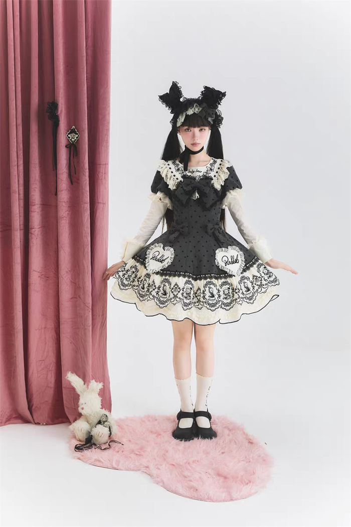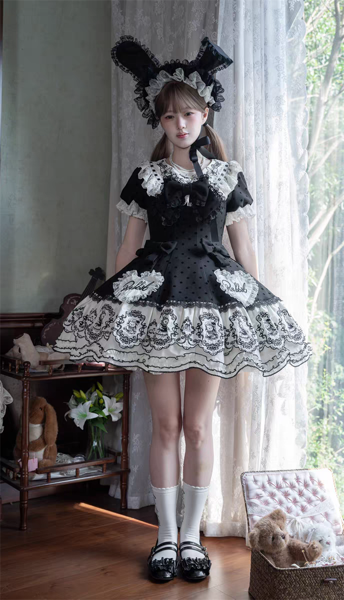 | Product Name | Van Rabbit - Seal Rabbit - Vintage Polka Dot Sweet Lolita OP Dress Set |